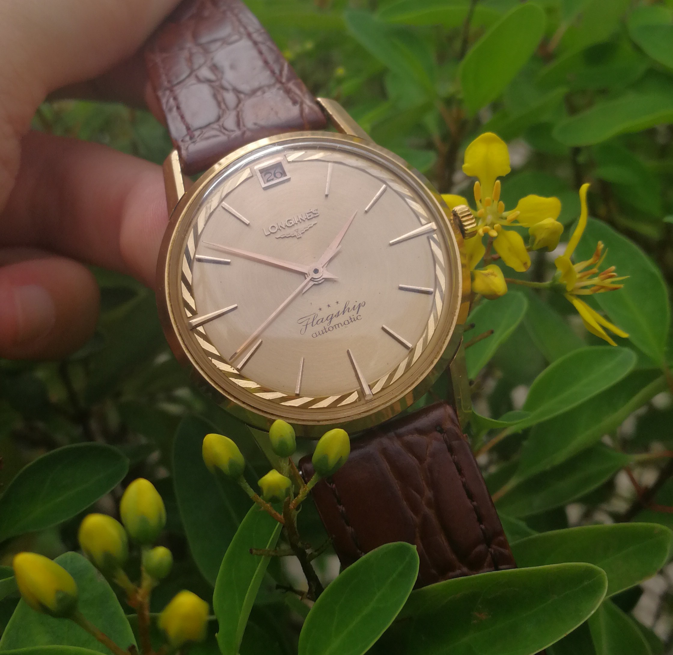 Posts 455 Likes 1,349 argonbeam 路Dec 25, 2017 noelekal A touch of solid gold with a sunburst from 1954. My second favorite Longines model here. Has the 19AS movement. Merry Christmas Forum! Longines was good at decorating their movements during that era, but not often their dials. That one is great 馃憤