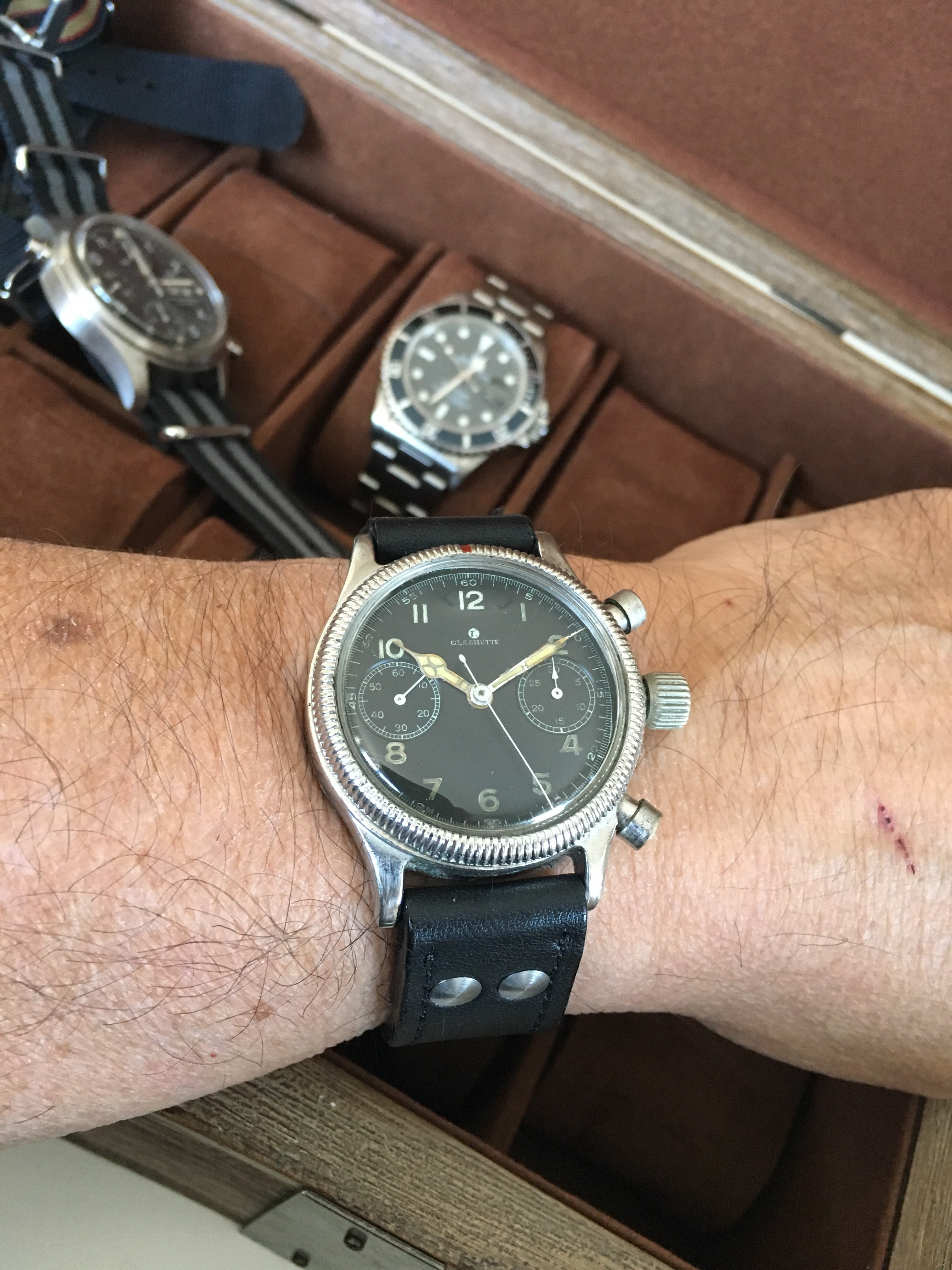 Posts 2,237 Likes 32,562 bristnj ·Dec 27, 2017 Waltham "Baby Blancpain" Bathyscaphe on brown Tropic strap today.