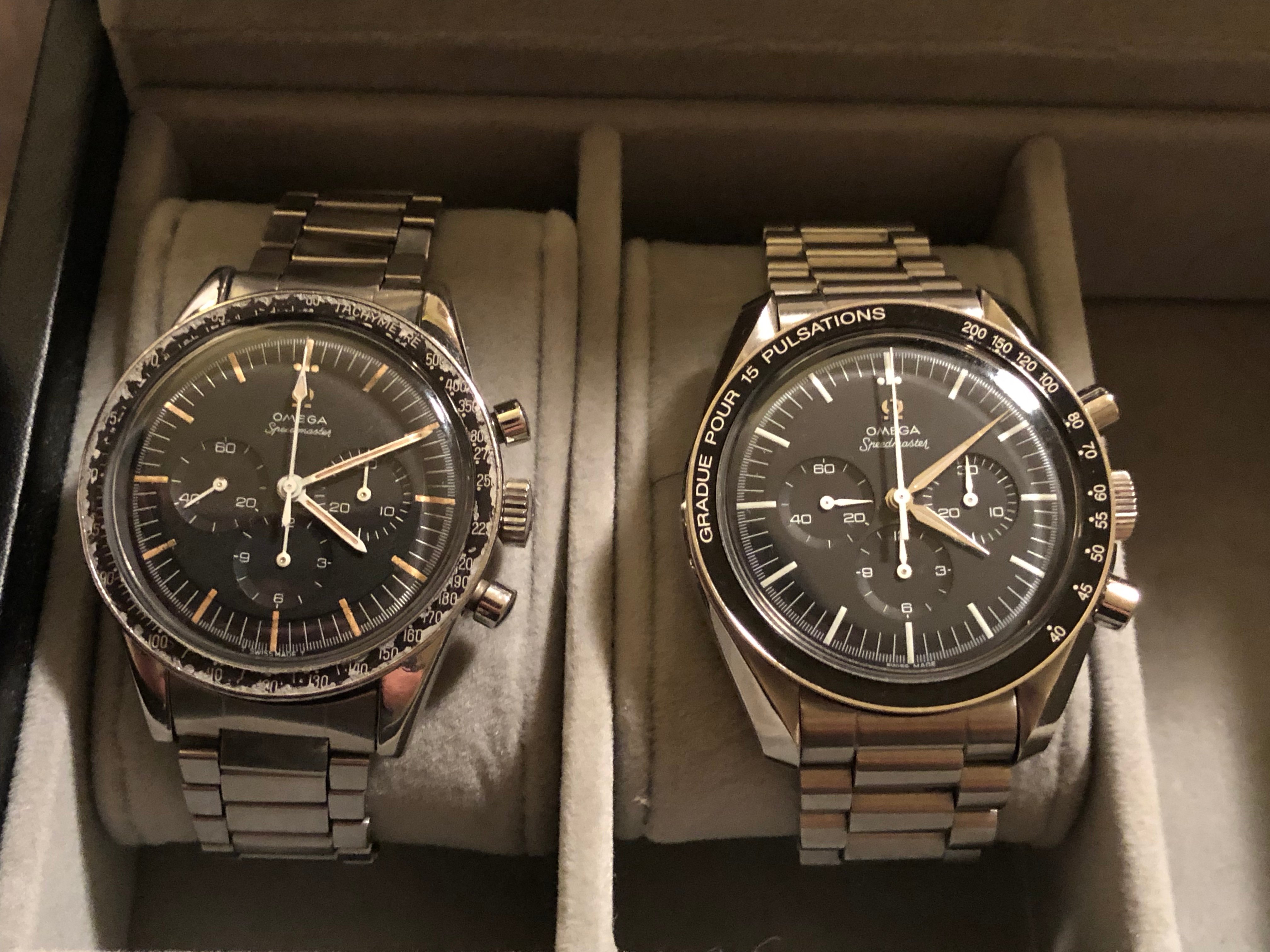 two 321s sitting in the box for a week while I was away......interesting where they chose to stop, although both have been to the same watchmaker.....will wear the one on the left to belated xmas celebration
