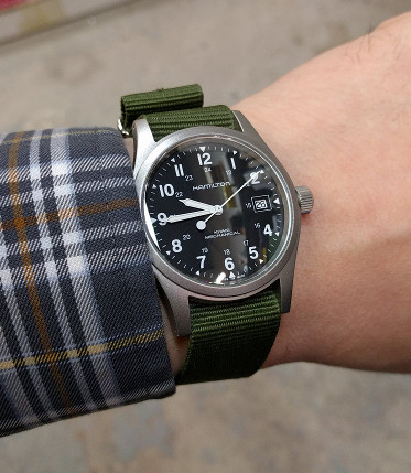 Posts 17 Likes 33 EdwardC ·Jan 26, 2018 Nothing too special, my little Khaki Mechanical. With the extra NATO strap cut off, this thing wears very small. Ordering an Olive ToxicNATO Rogue for it soon.