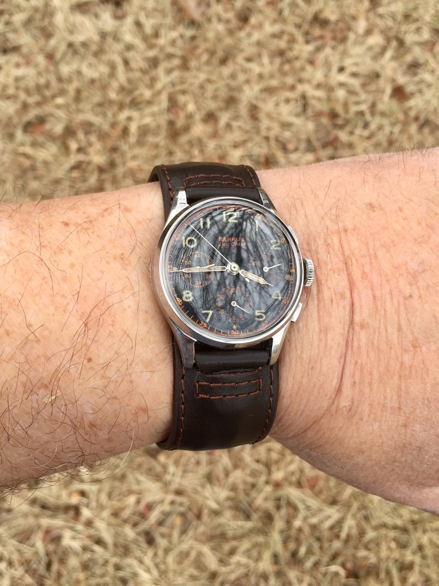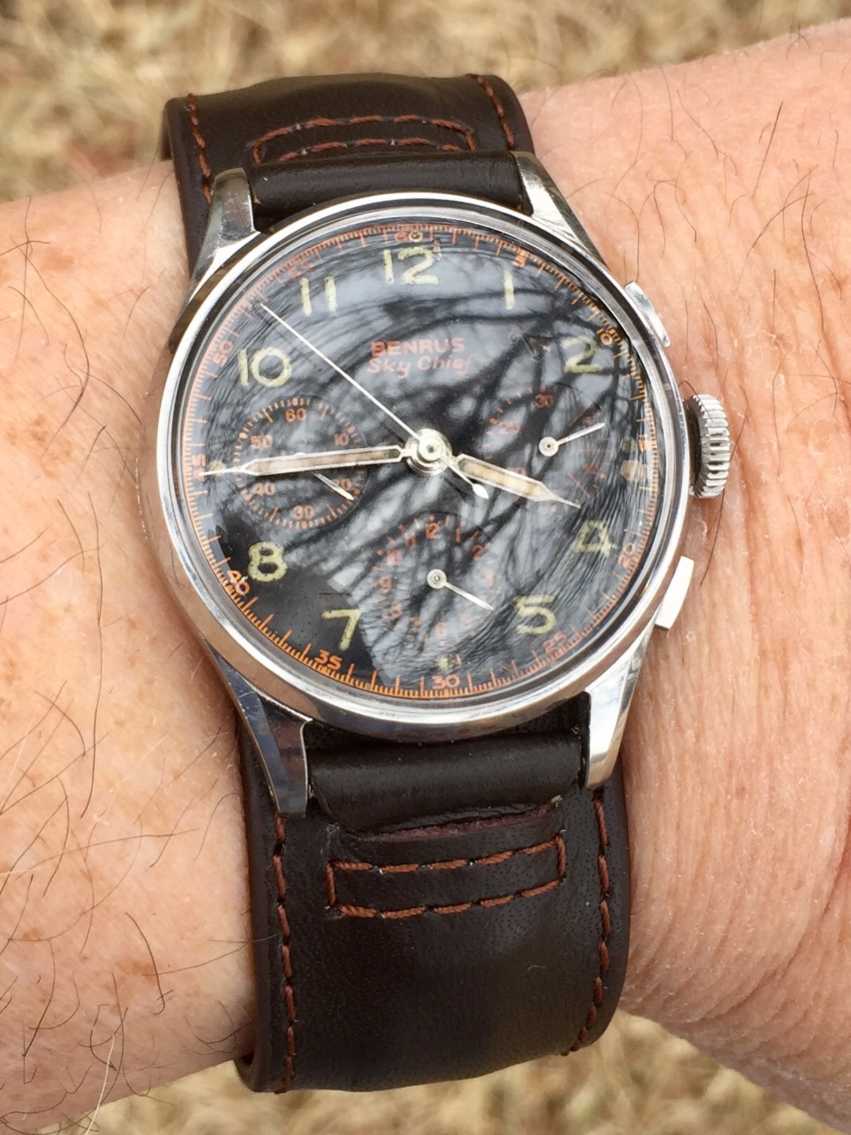 Posts 8,334 Likes 59,667 TexOmega ·Jan 26, 2018 Benrus Sky Chief Love the gilt markings on the dial and bevels being intact on the lugs. Val 72.