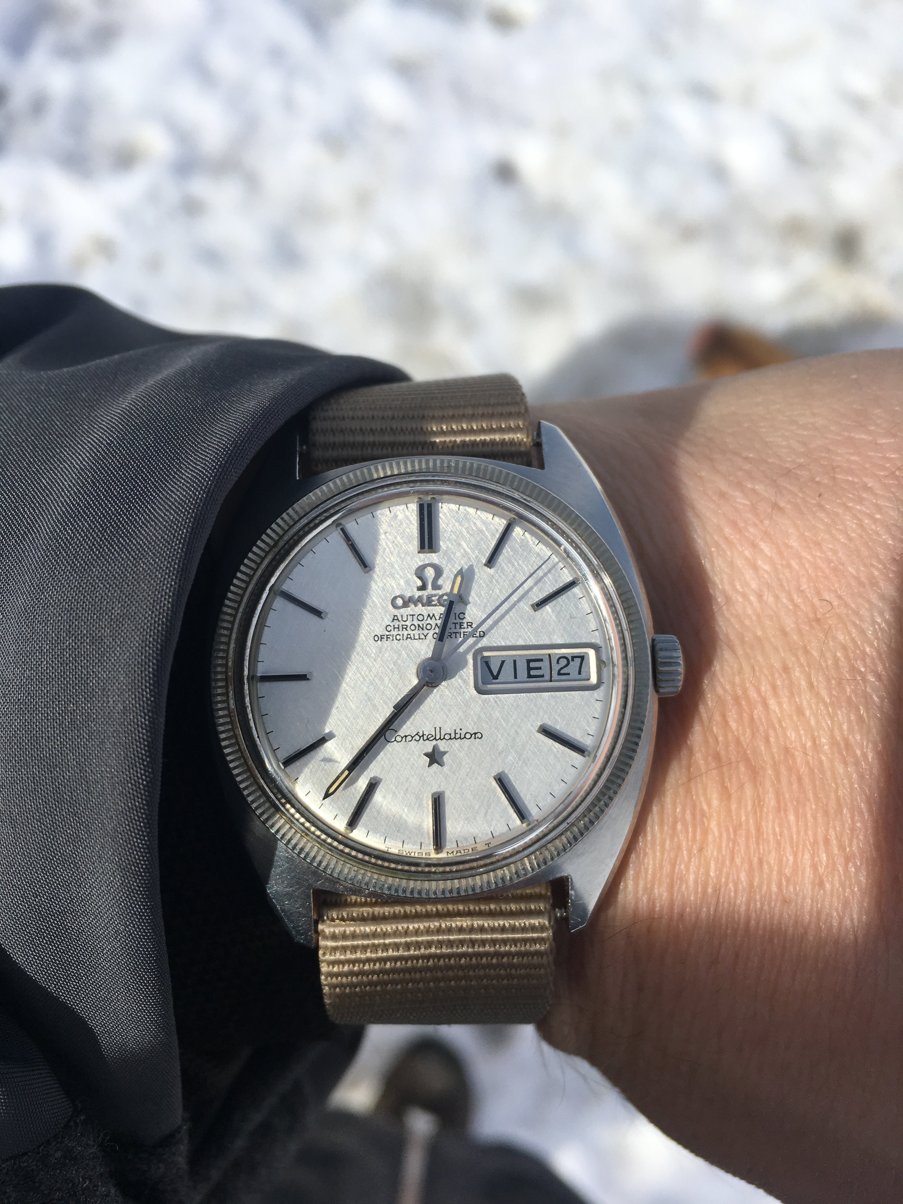 Posts 1,117 Likes 9,226 strick9 ·Jan 28, 2018 I found a bracelet that makes my 34 mm Constellation almost normal on my huge wrist it looks foggy but its not