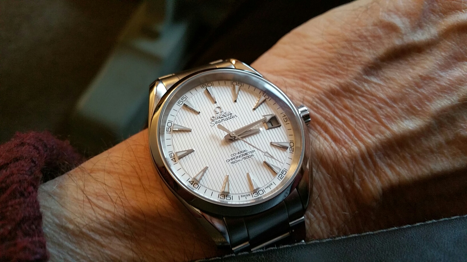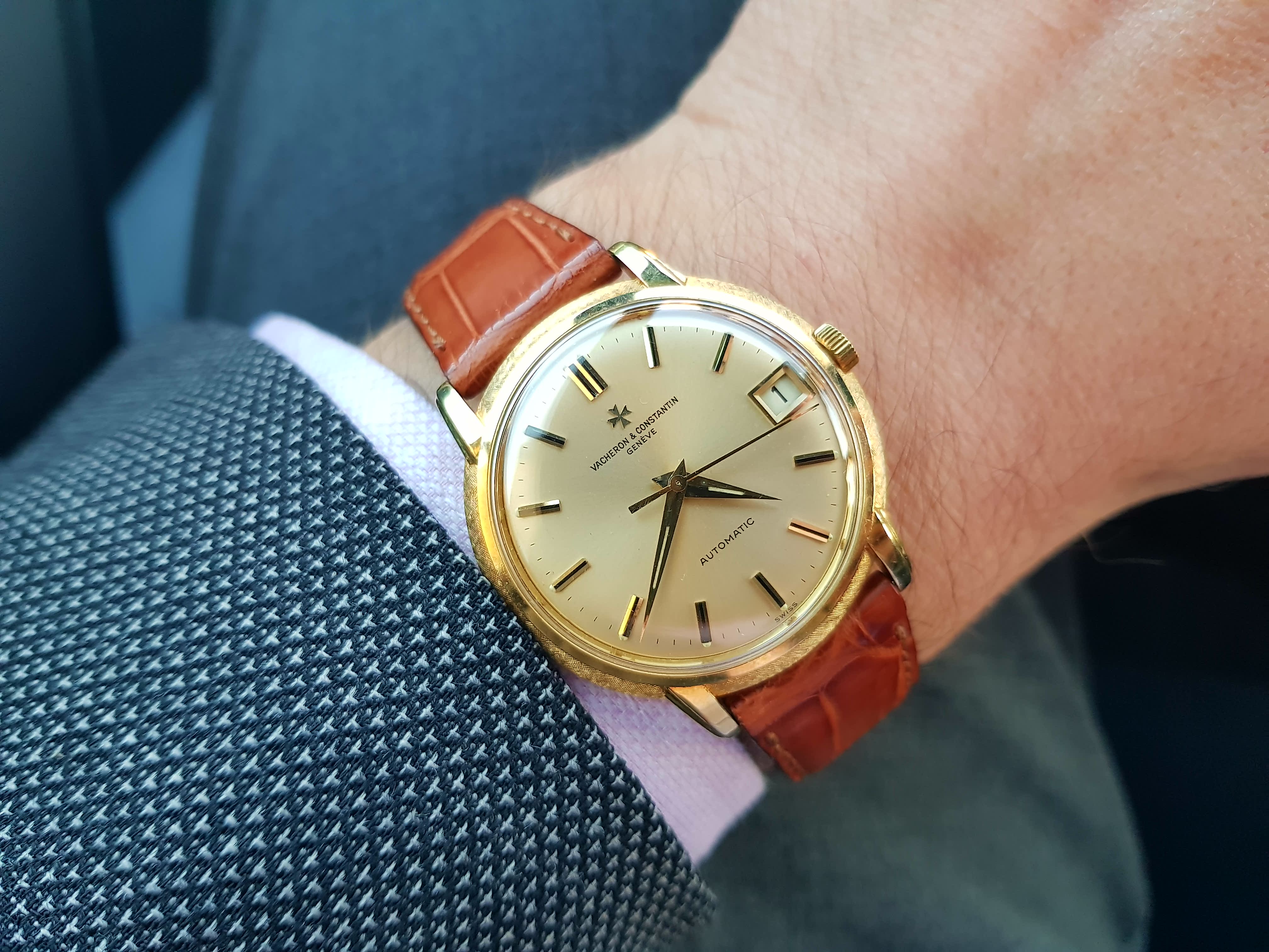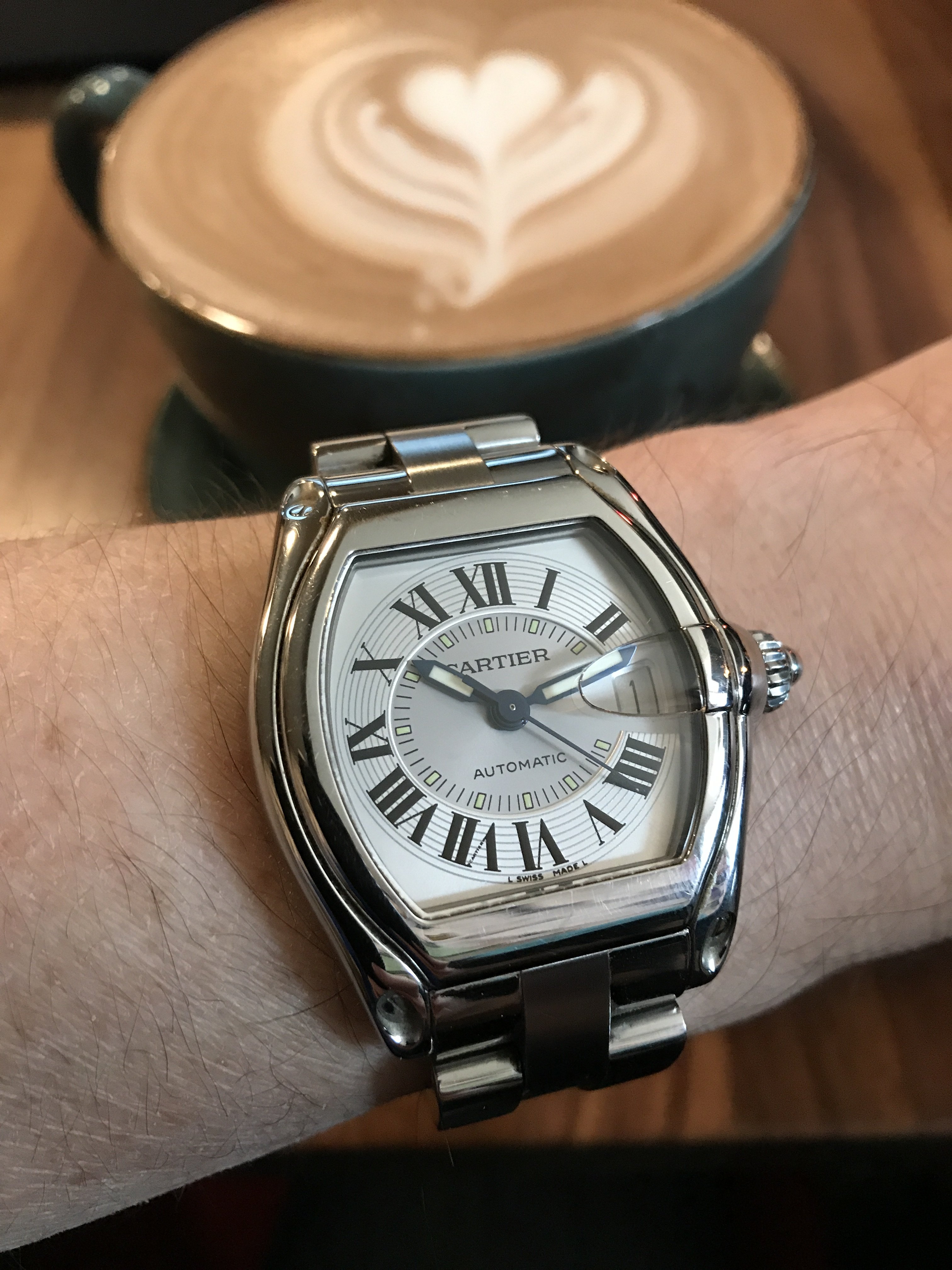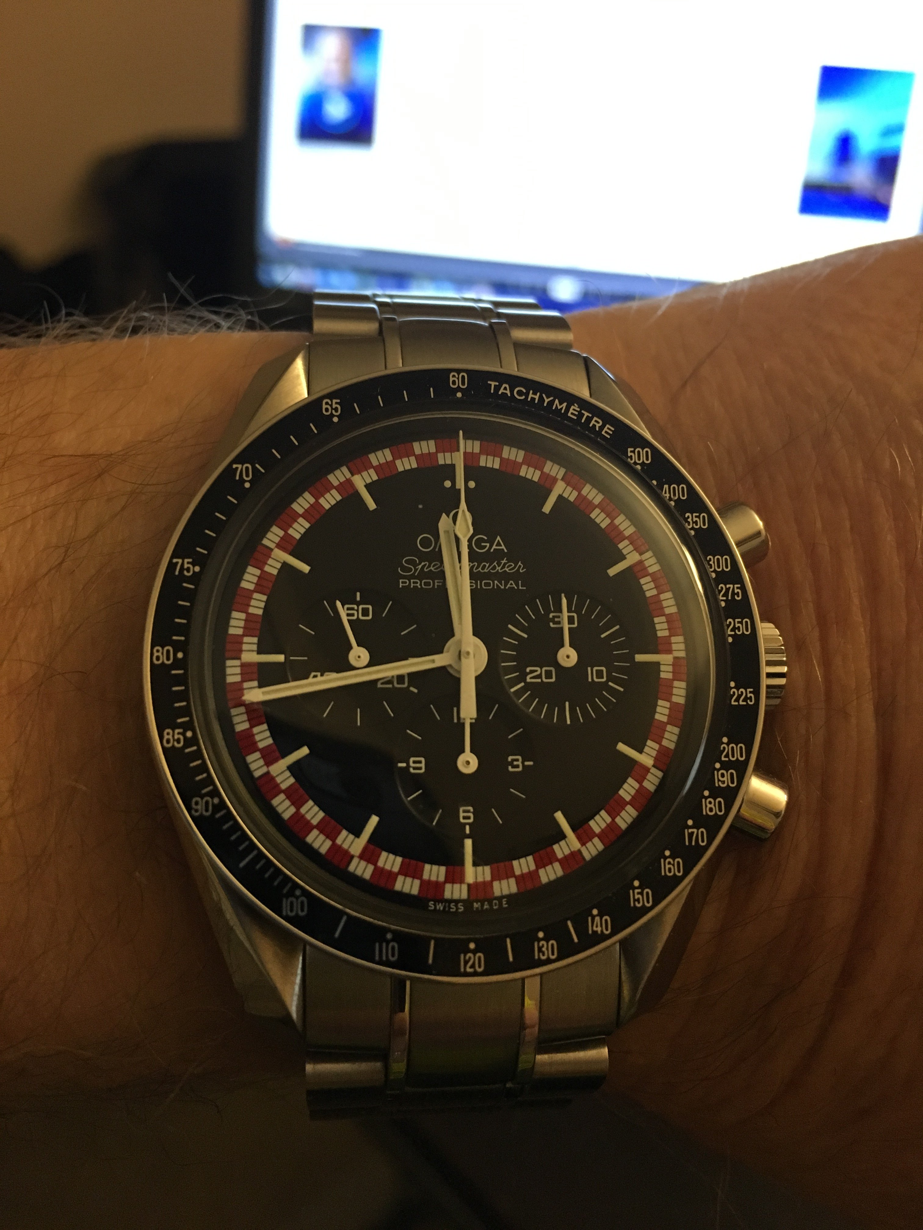 In the cue, waiting to pick up my daughter from school. This watch has not disappointed. I am still estatic to own and wear it. I can't stop looking at it throughout the day. I never understood the draw of a chrono before. I have never been drawn to the Speedy, but maybe that is about to change. I am sure this will not be my last vintage chrono.