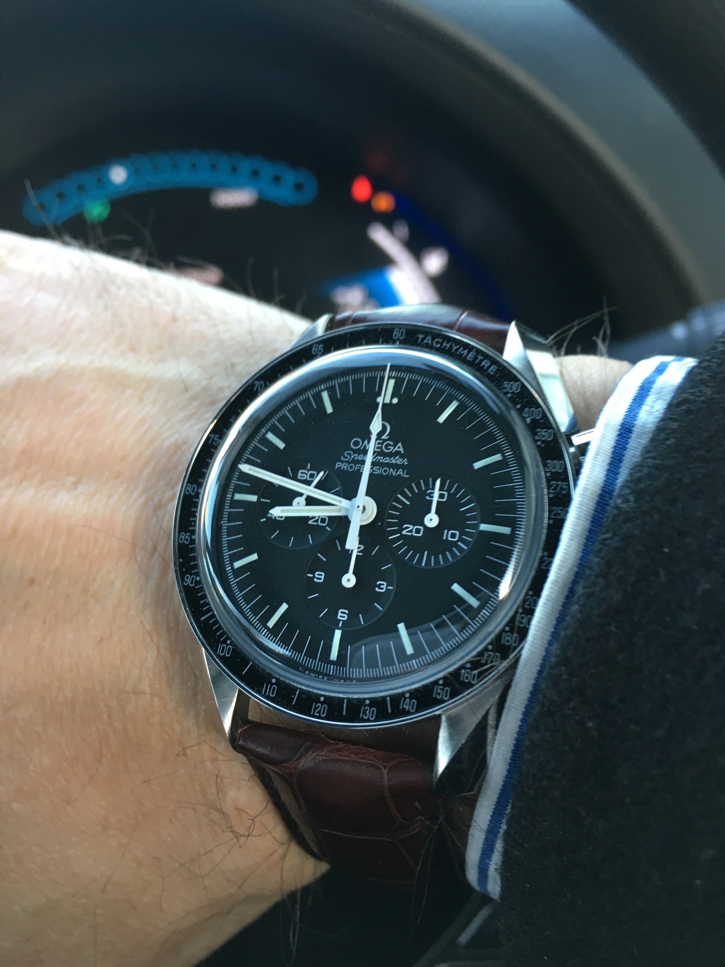 Posts 5,339 Likes 129,676 Lou P ·Feb 2, 2018·YaY! Still enjoying this loaner. Hard to show, but the sub-dials are recessed, similar to a Speedy. It's weird to have a 10 o'clock crown on a Seamaster that has functional value (turning the inner bezel), vs. the He valve.