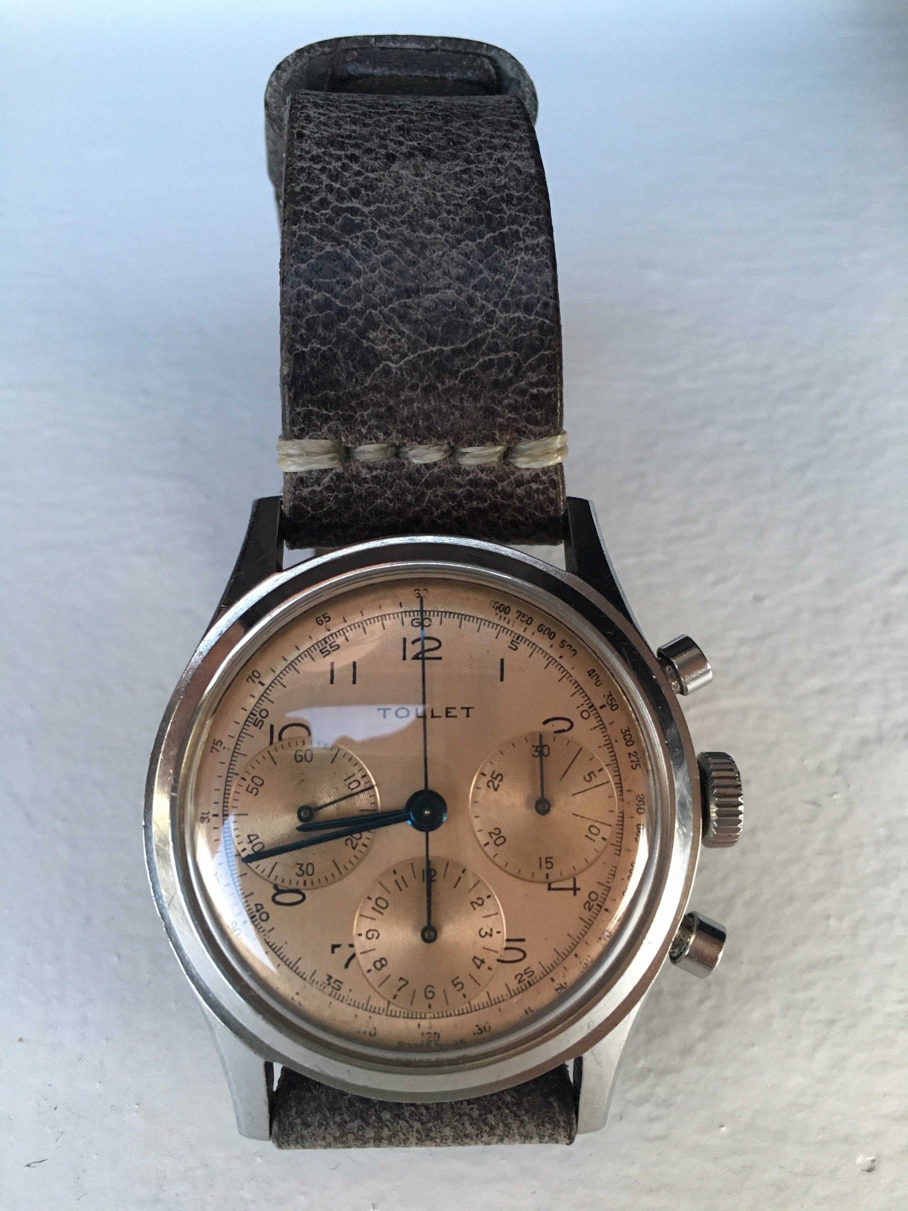 Posts 393 Likes 4,578 Pjotr1 ·Feb 2, 2018 1946 private label Breitling 765 with a venus 178 movement. Tollet is a jewellery store in Brussels and vicinity.