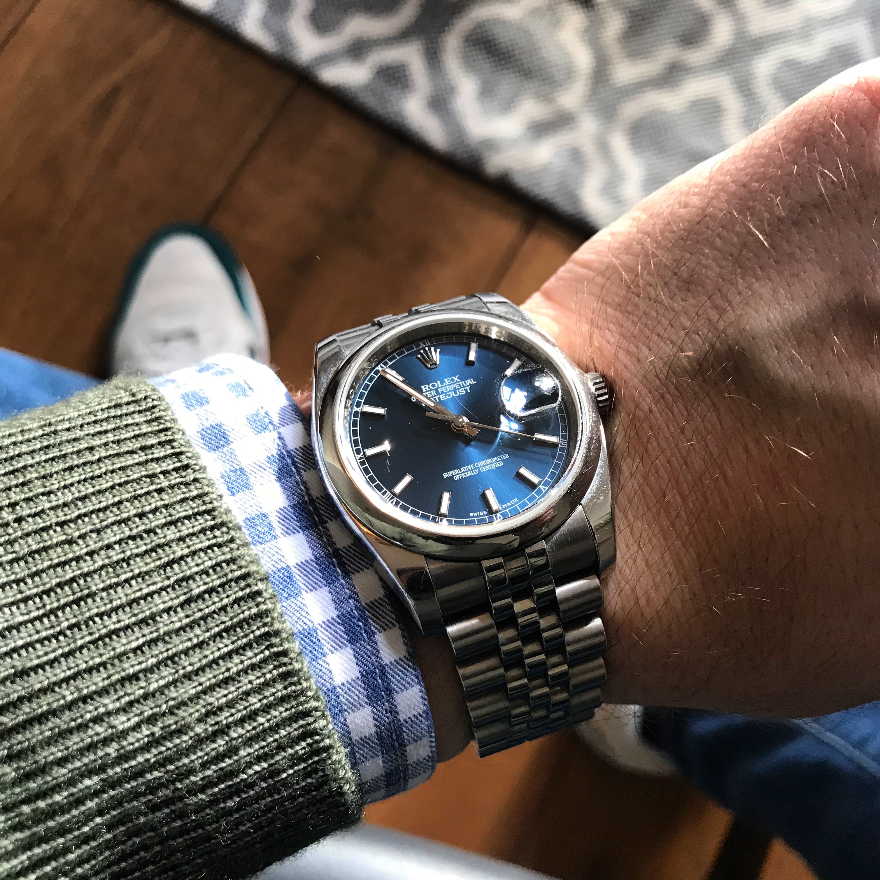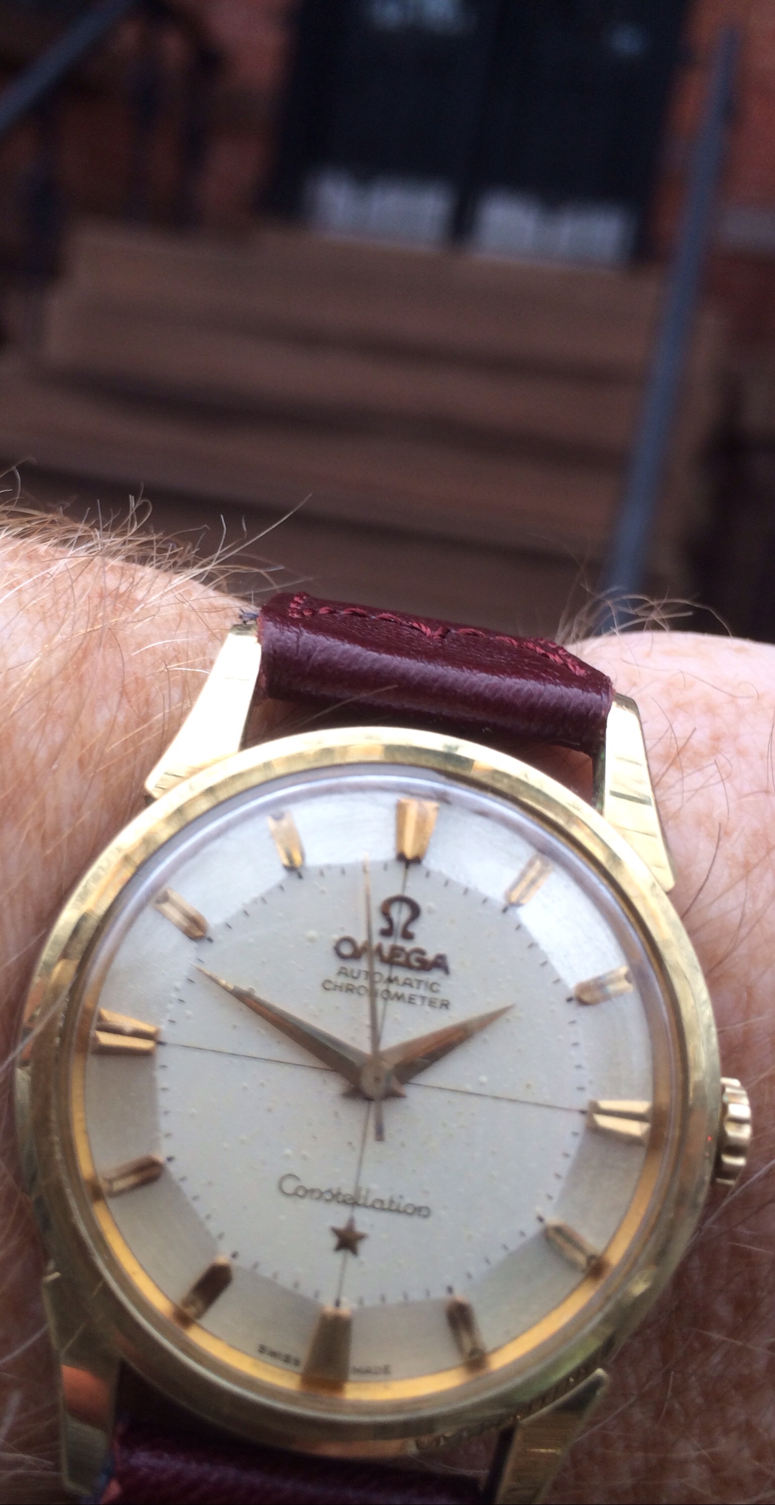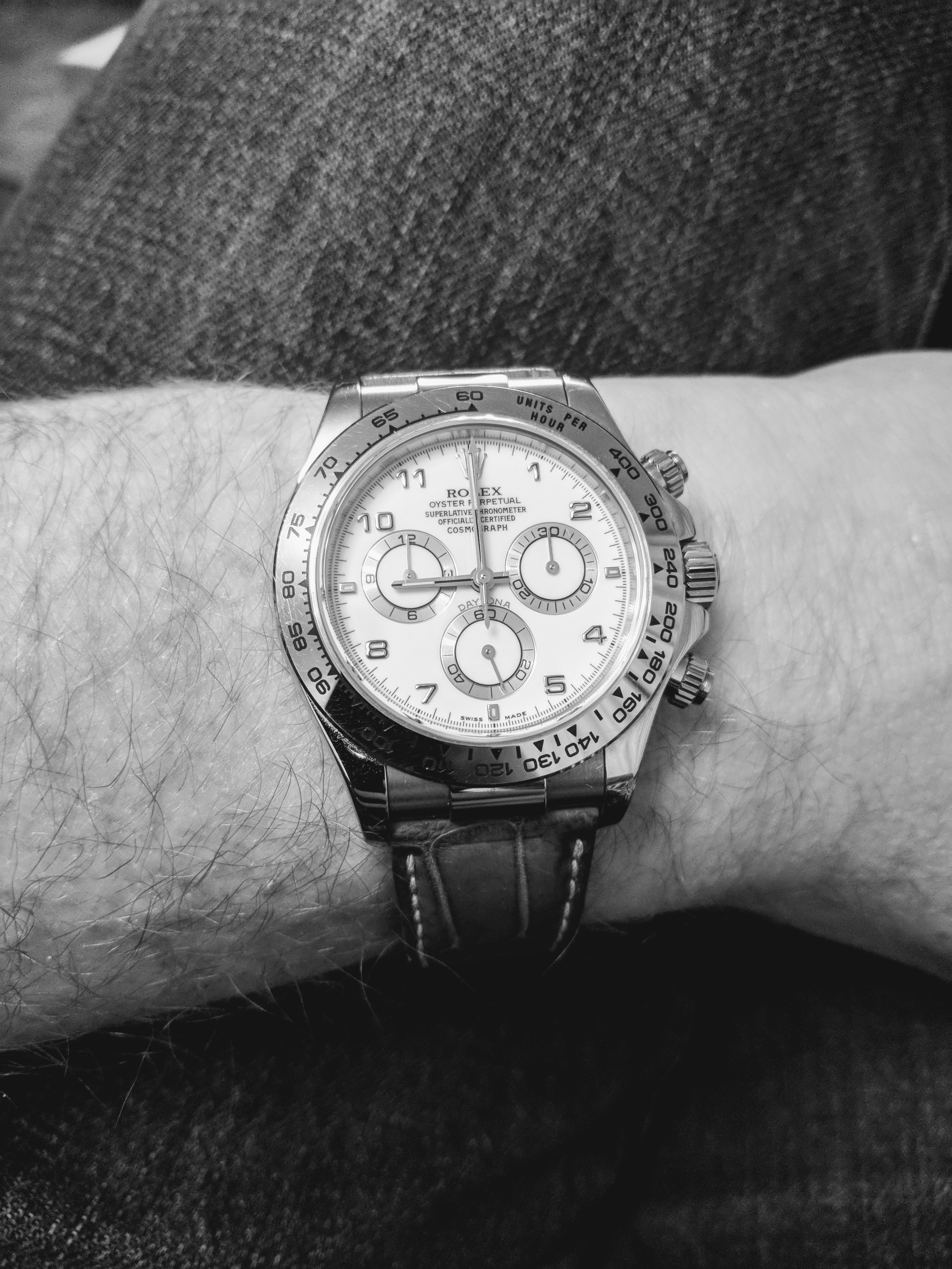 My good old 1601 DJ on my very own, handmade OMGRLX distresed red Horween Chromexcel one piece NATO with amber line stitching, polished hardware and a Rolex buckle.