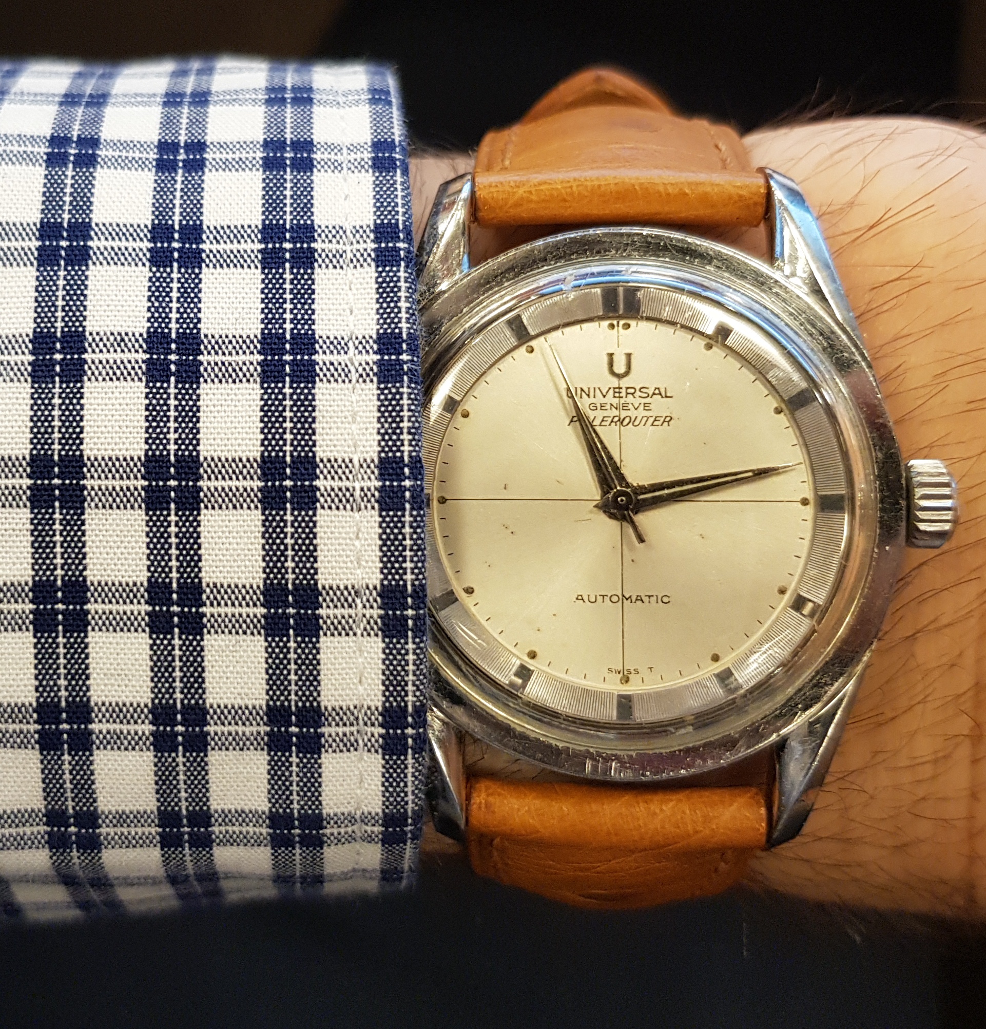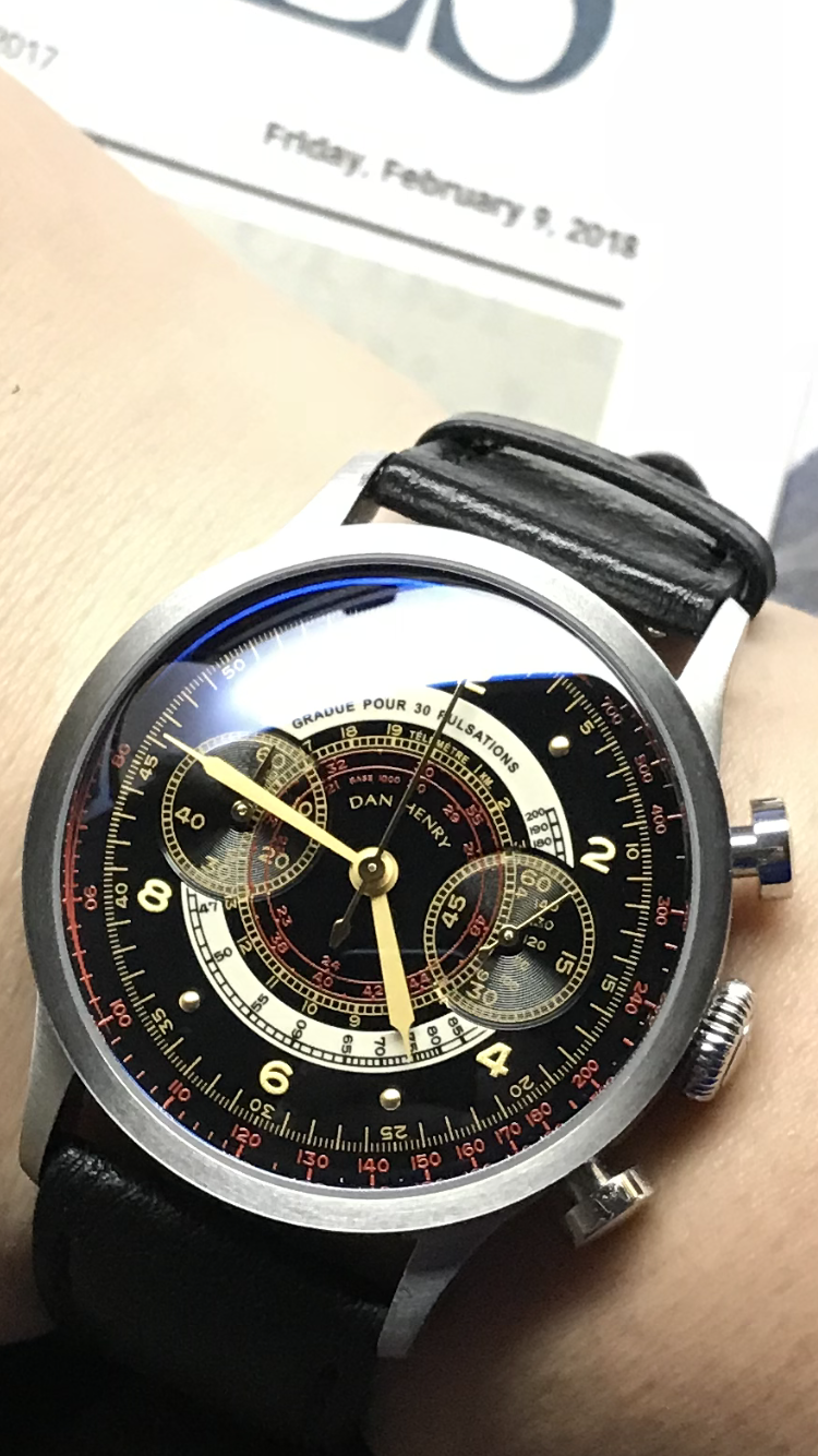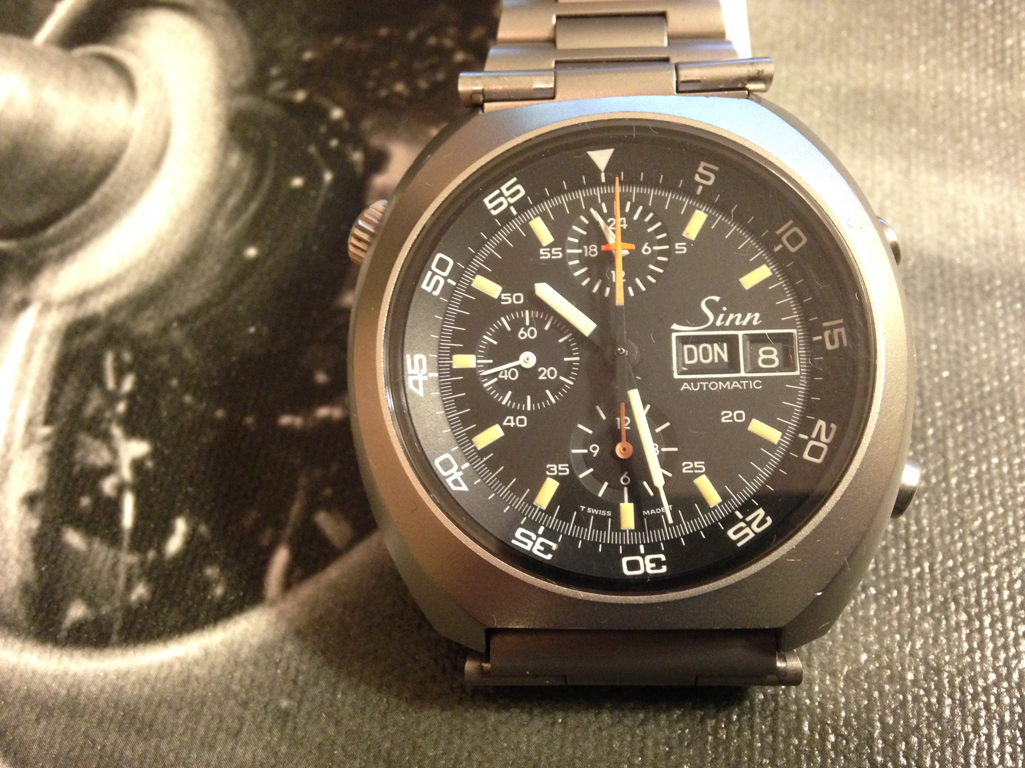 The other two I picked up today besides the Navitimer - and had on my wrist for some of the day- were this Sinn 140/42. I'm very fond of this Lemania 5100 movement for its legibility, despite the day wheel being in German.