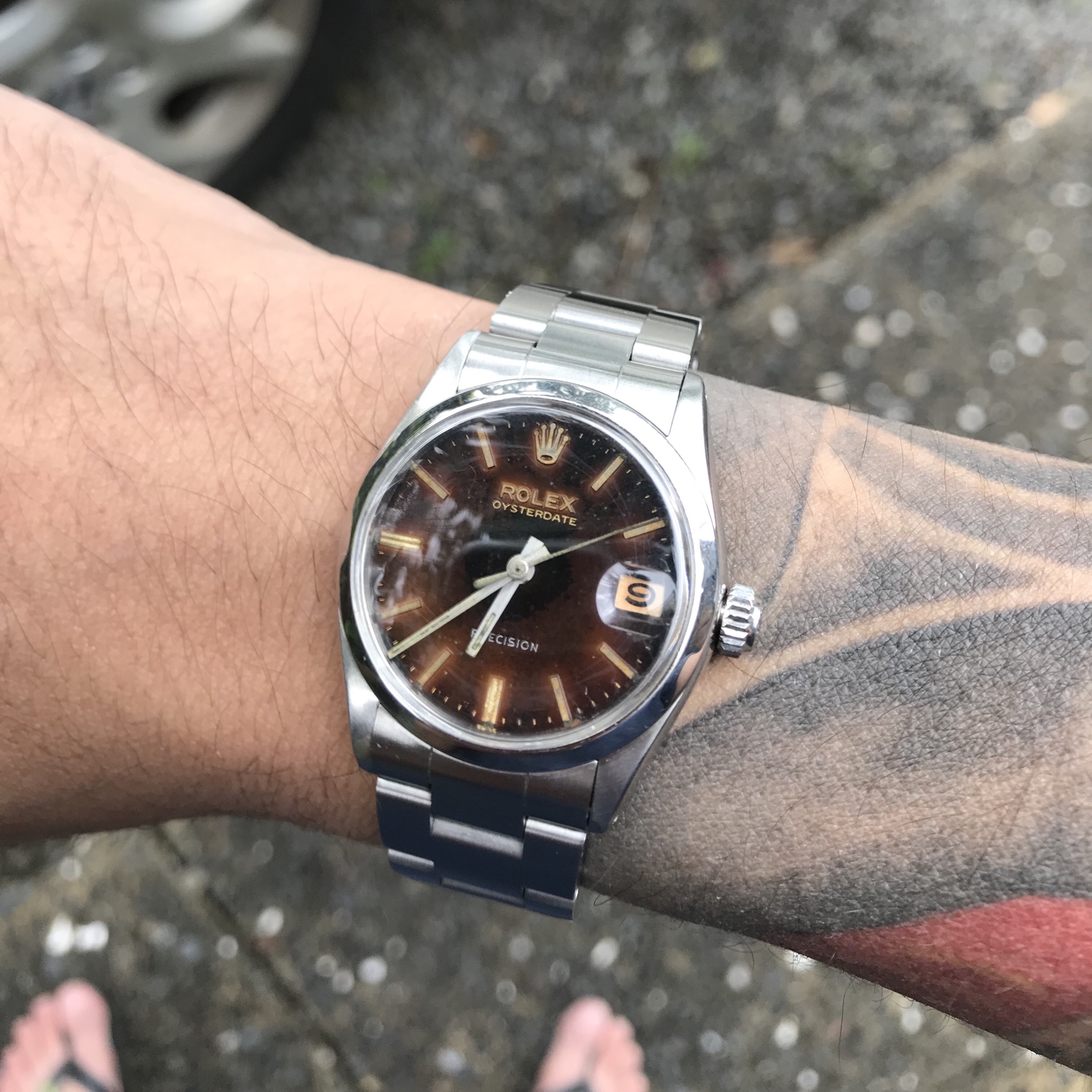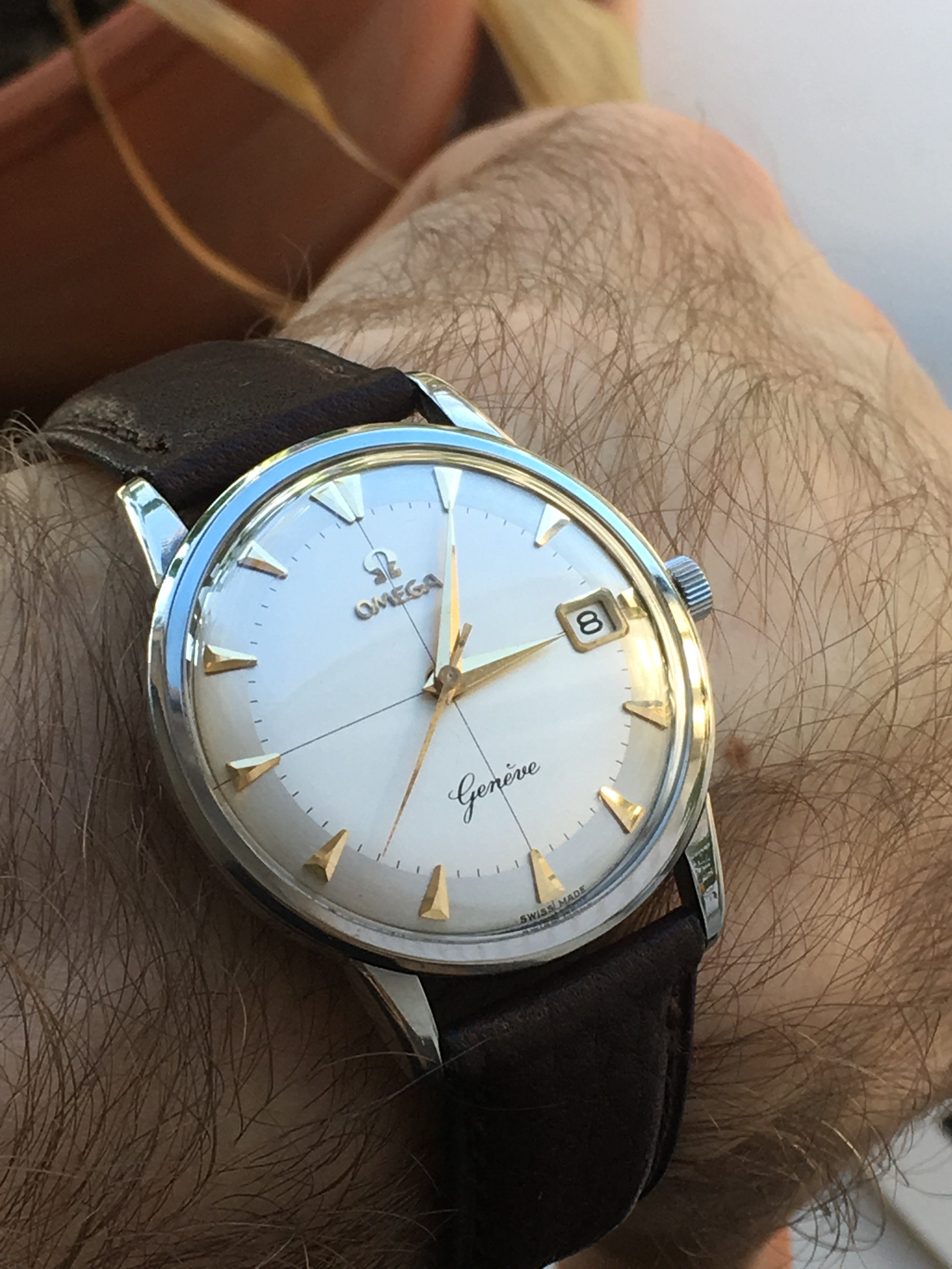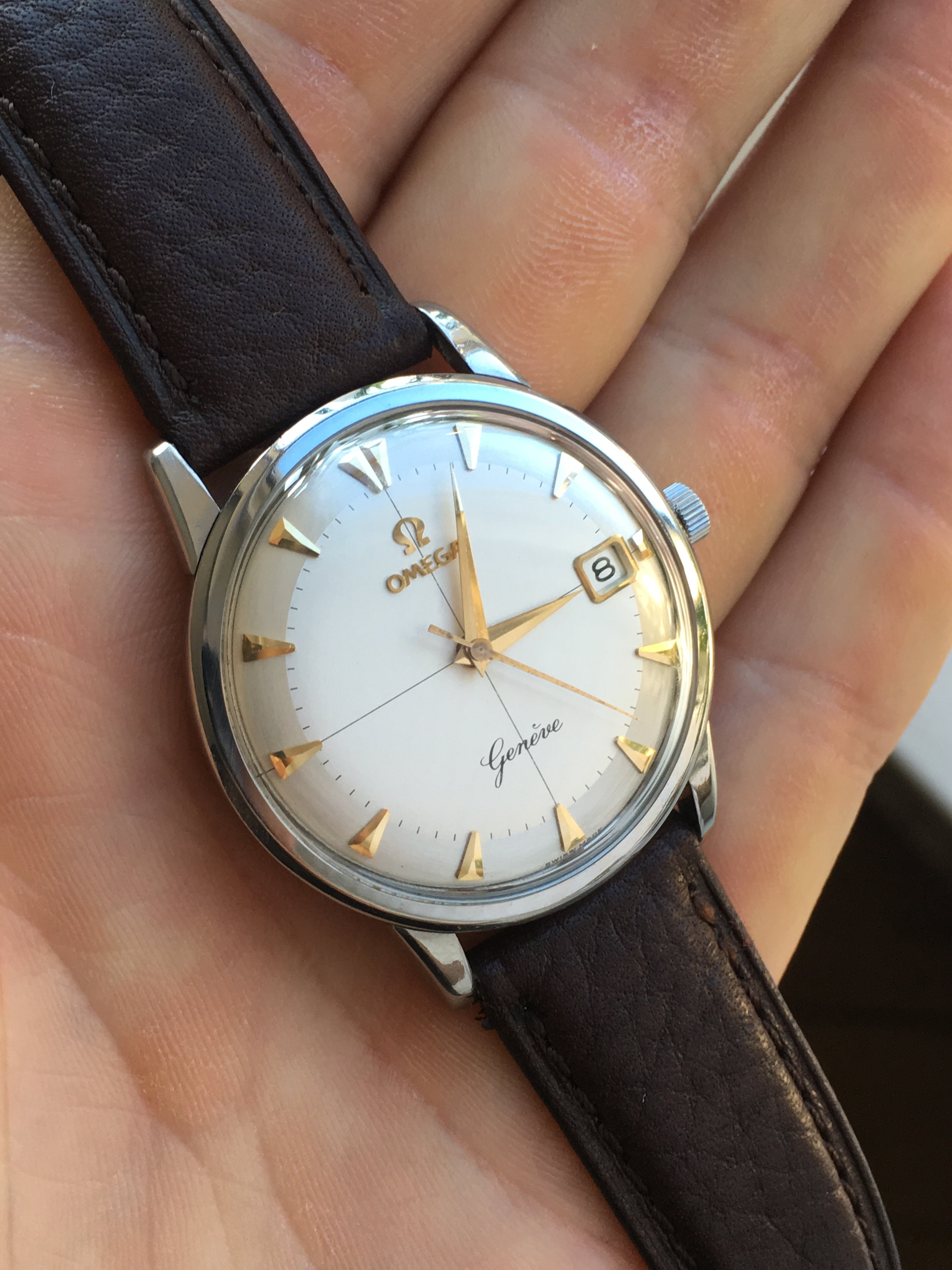 I stopped by my local watch repair guy to pick up three watches fresh from his service work this afternoon. This one went on the wrist first. Twin Jets from 1969 on a Breitling mesh bracelet. As a kid I hug out around airports quite a bit. This one one Chrono I saw rather frequently then, and they still float my boat now.
