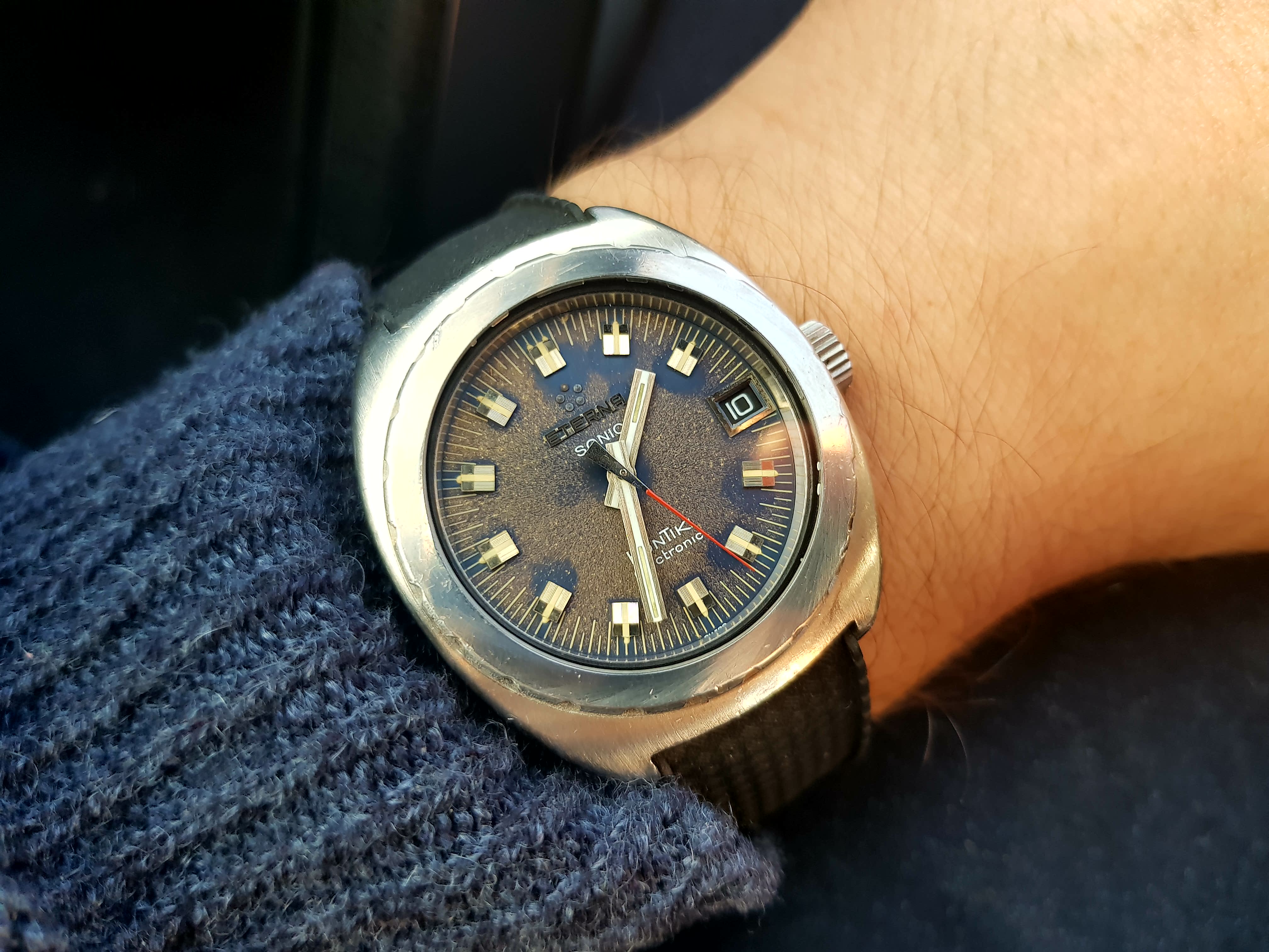 Posts 1,117 Likes 9,226 strick9 路Feb 10, 2018 gwzymytk Eterna KonTiki Sonic - Tuning Fork 1550 movement. Mixed feelings on the dial oxidation, don't yet know if it's a bug or a feature 馃榾 Its like looking at a beautiful older woman you don't know why but you have to have her that may have come off as sexist 馃榿