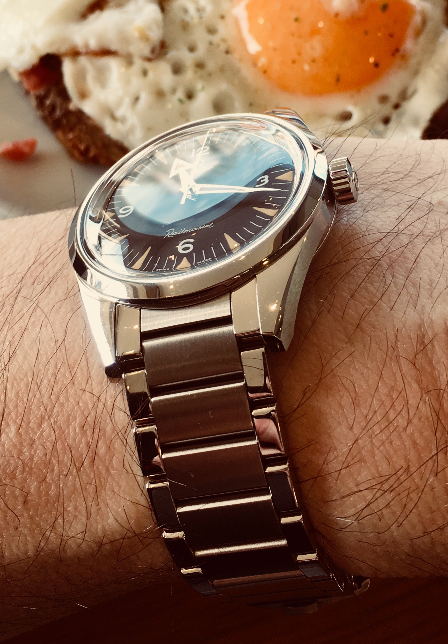 From yesterday’s ridiculous [but fun] adventures at the Apple Store [Apple School] with my standard issue Speedy Gonzales Moonwatch on an Omega Barenia leather NATO...