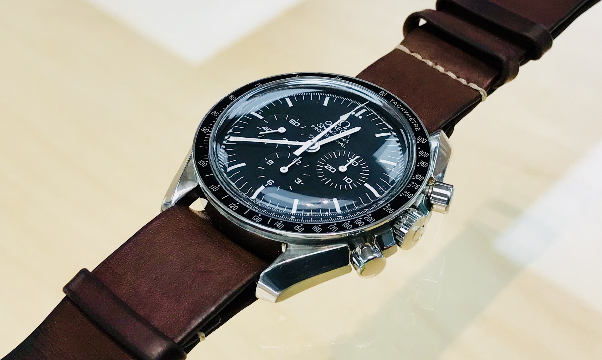 ·From yesterday’s ridiculous [but fun] adventures at the Apple Store [Apple School] with my standard issue Speedy Gonzales Moonatch on an Omega Barenia leather NATO...