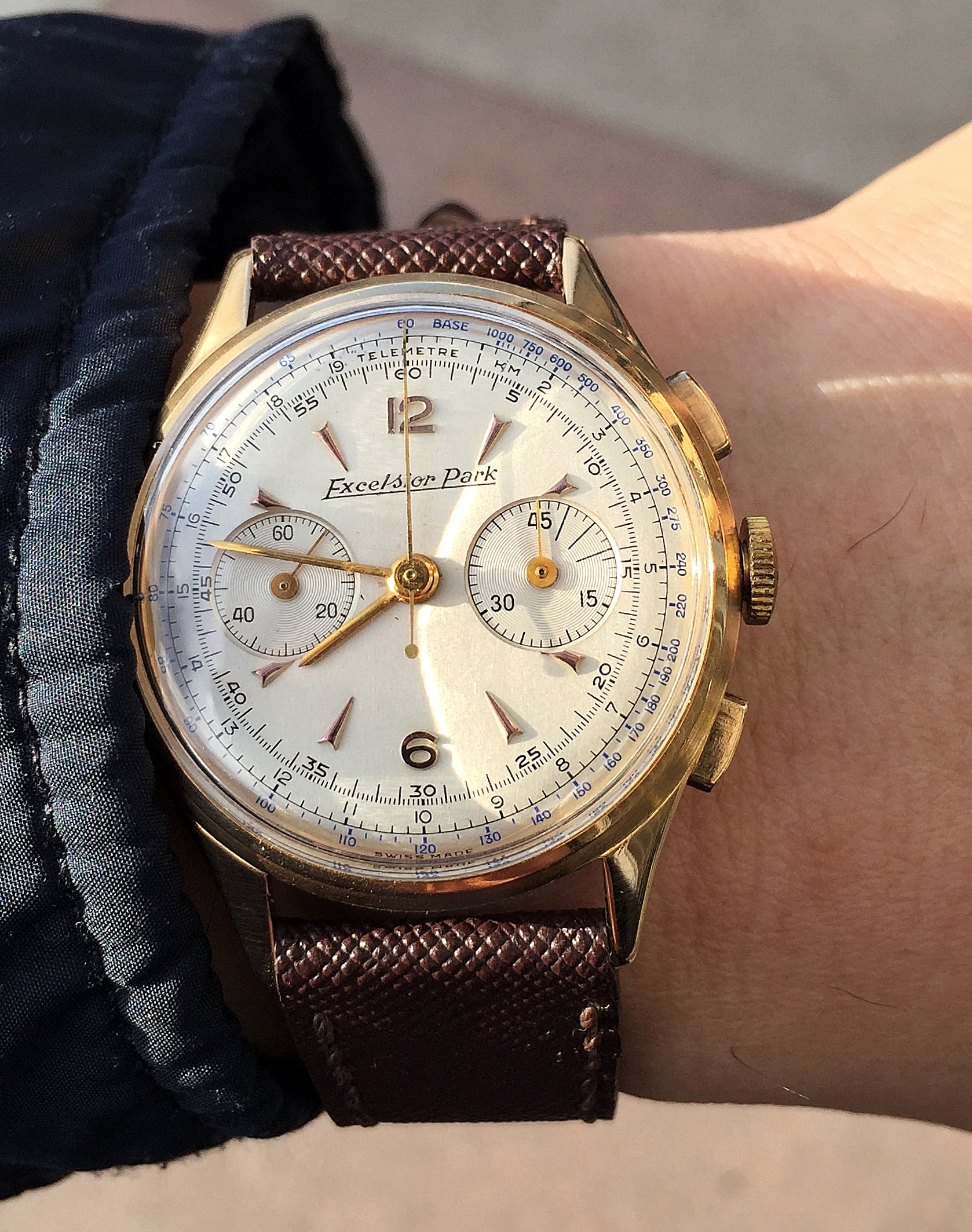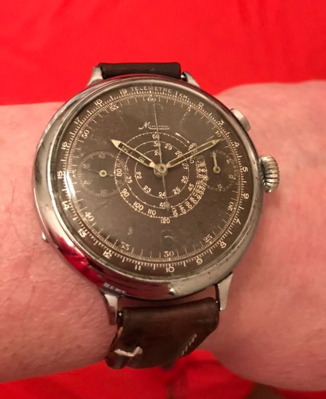 Posts 1,441 Likes 11,971 chronoboy64 ·Feb 22, 2018 46mm Minerva beast from ca. 1935 also added a pic next to a Breitling fried egg It is really huge...