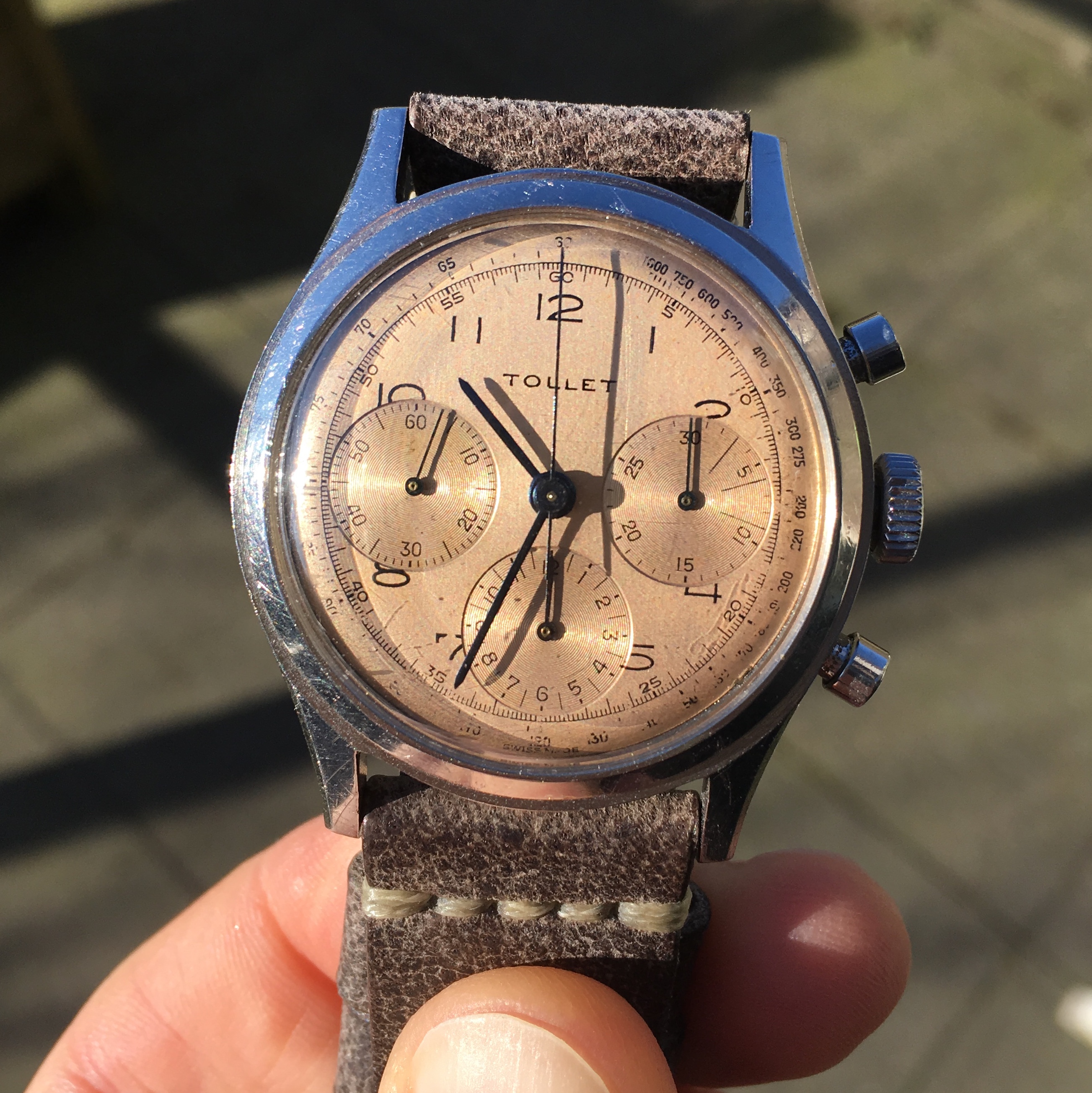 Posts 2,464 Likes 19,760 Dr No ·Feb 25, 2018 Nighttime here, but wearing this cal 505 SM chronometer . . . . . . again tomorrow to get a handle on its timing characteristics. Art