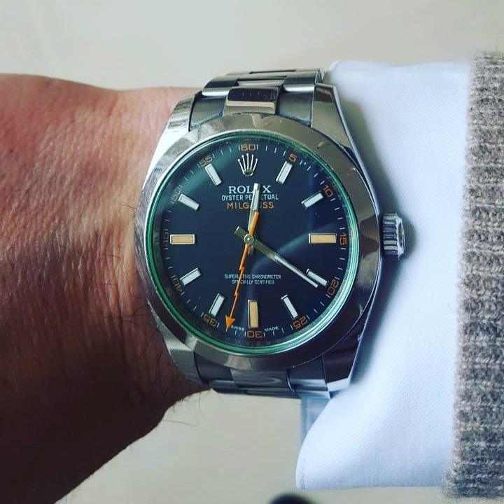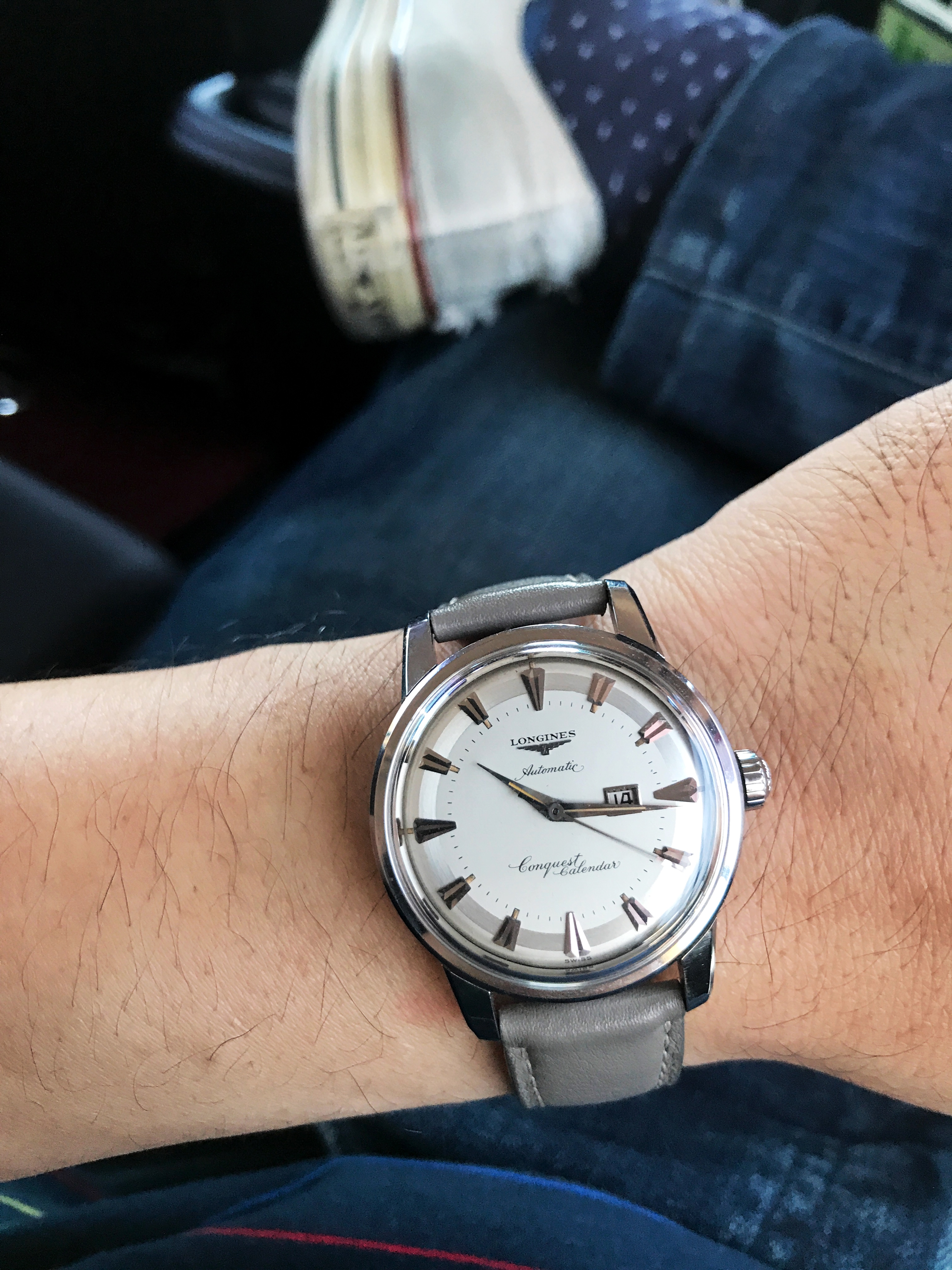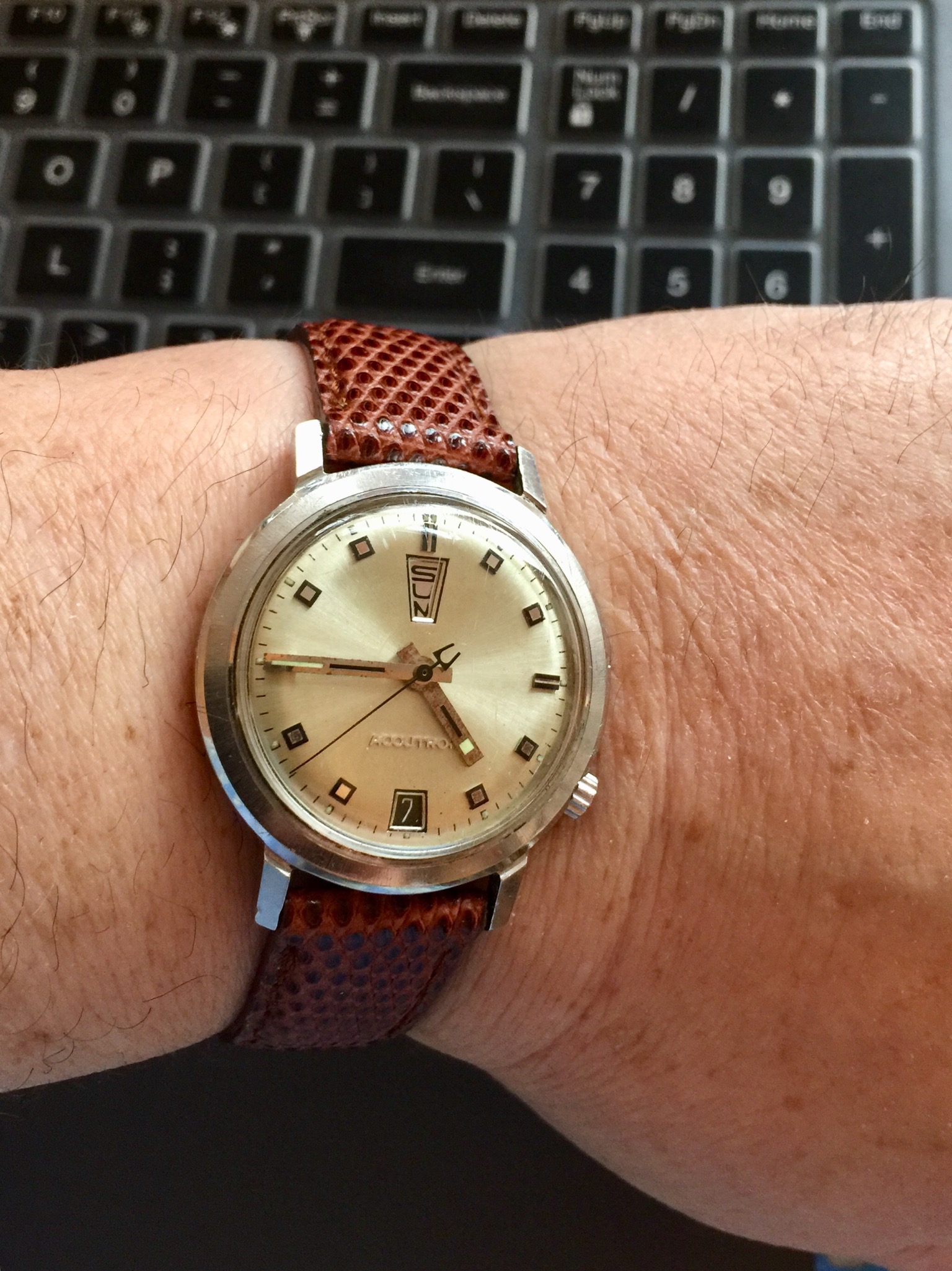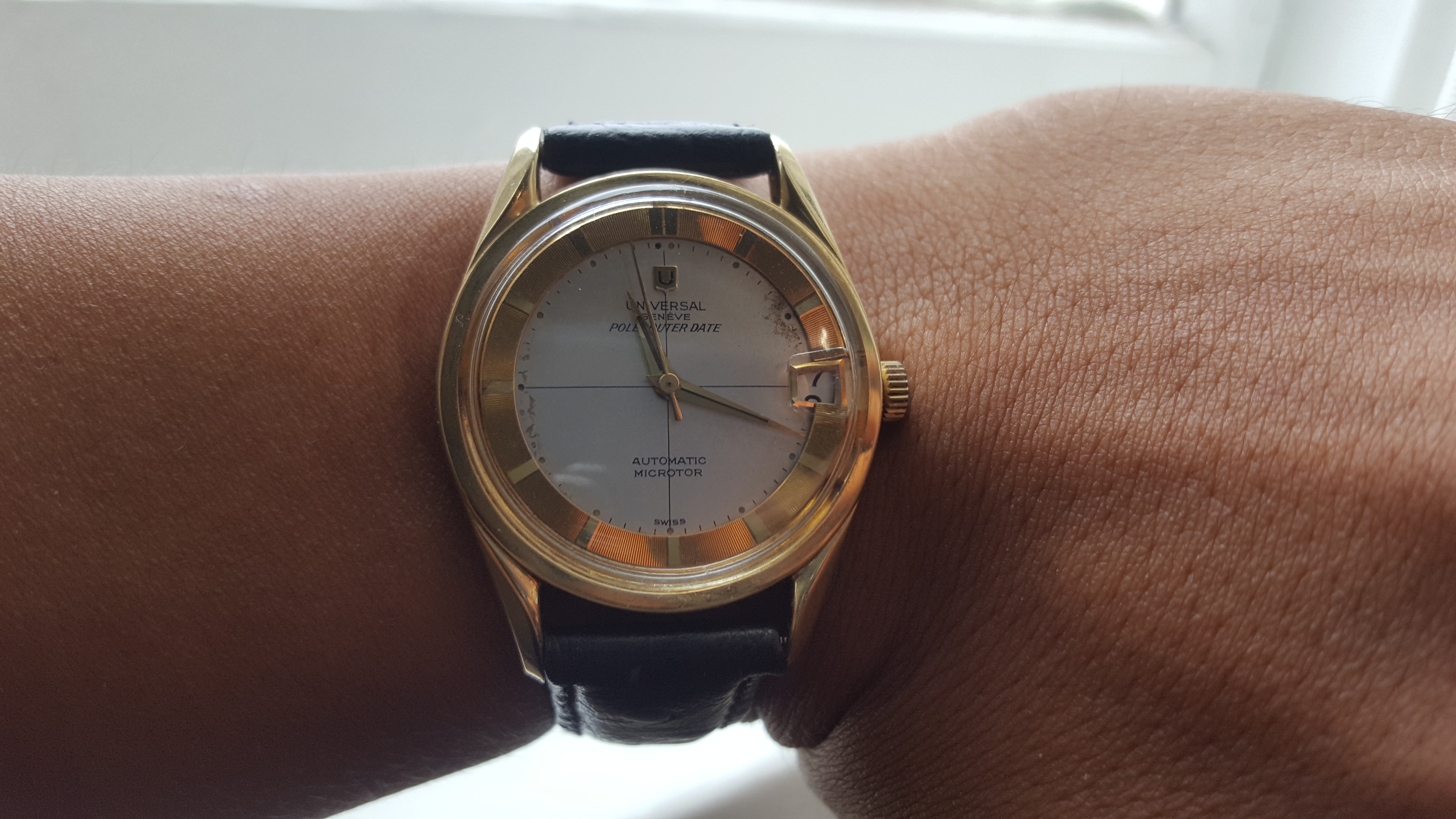 Had to get a proper bracelet for it my jeweler had a 19mm Rolex and extra links to fit my giant wrist, I all that to see if a 34 mm Rolex would be too small 36mm maybe or should I get new I like vintage but.... oh and excuse the little sore that doesn't go away I have psoriasis TMI I know but don't want y'all to think I have aids...... again!