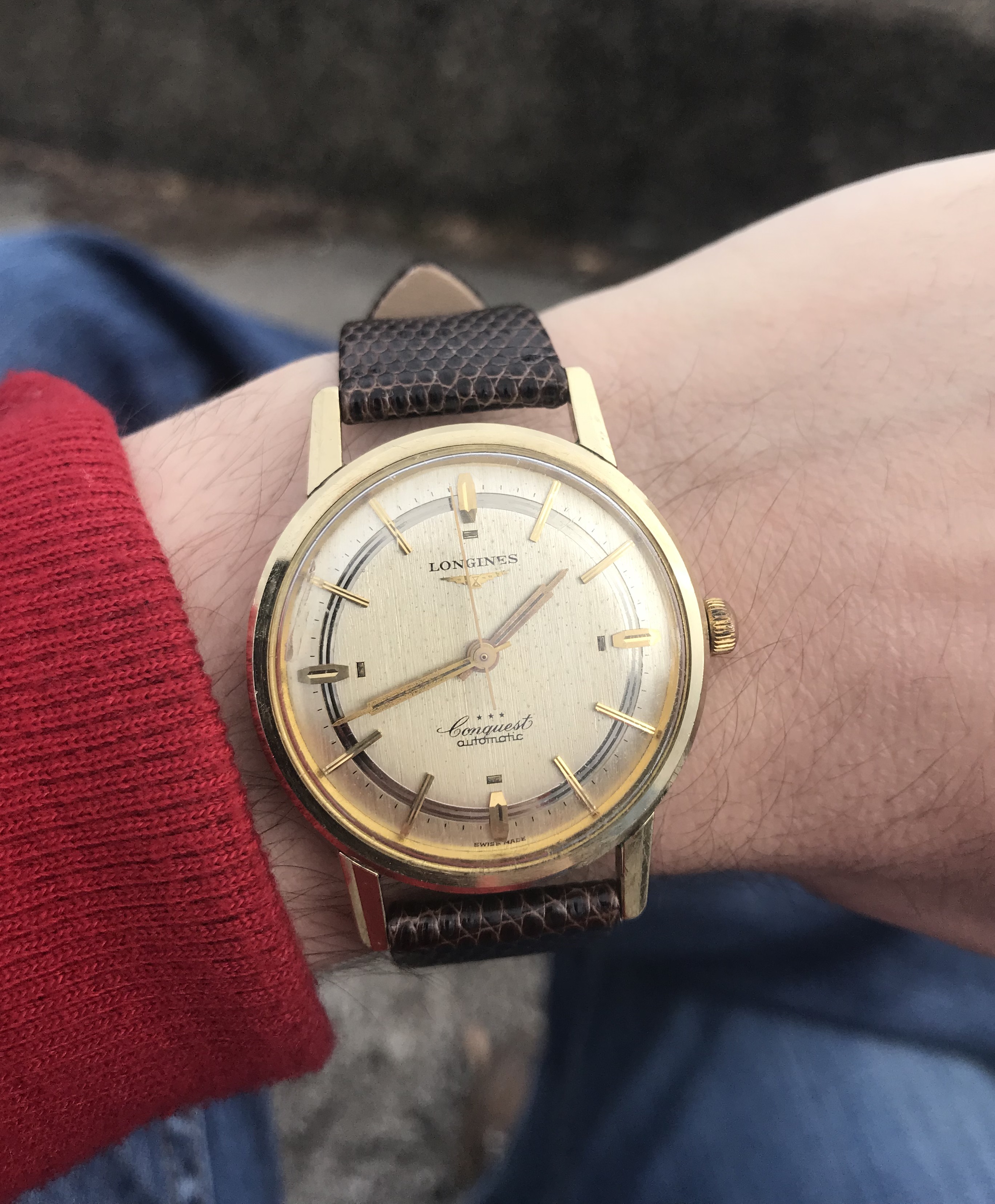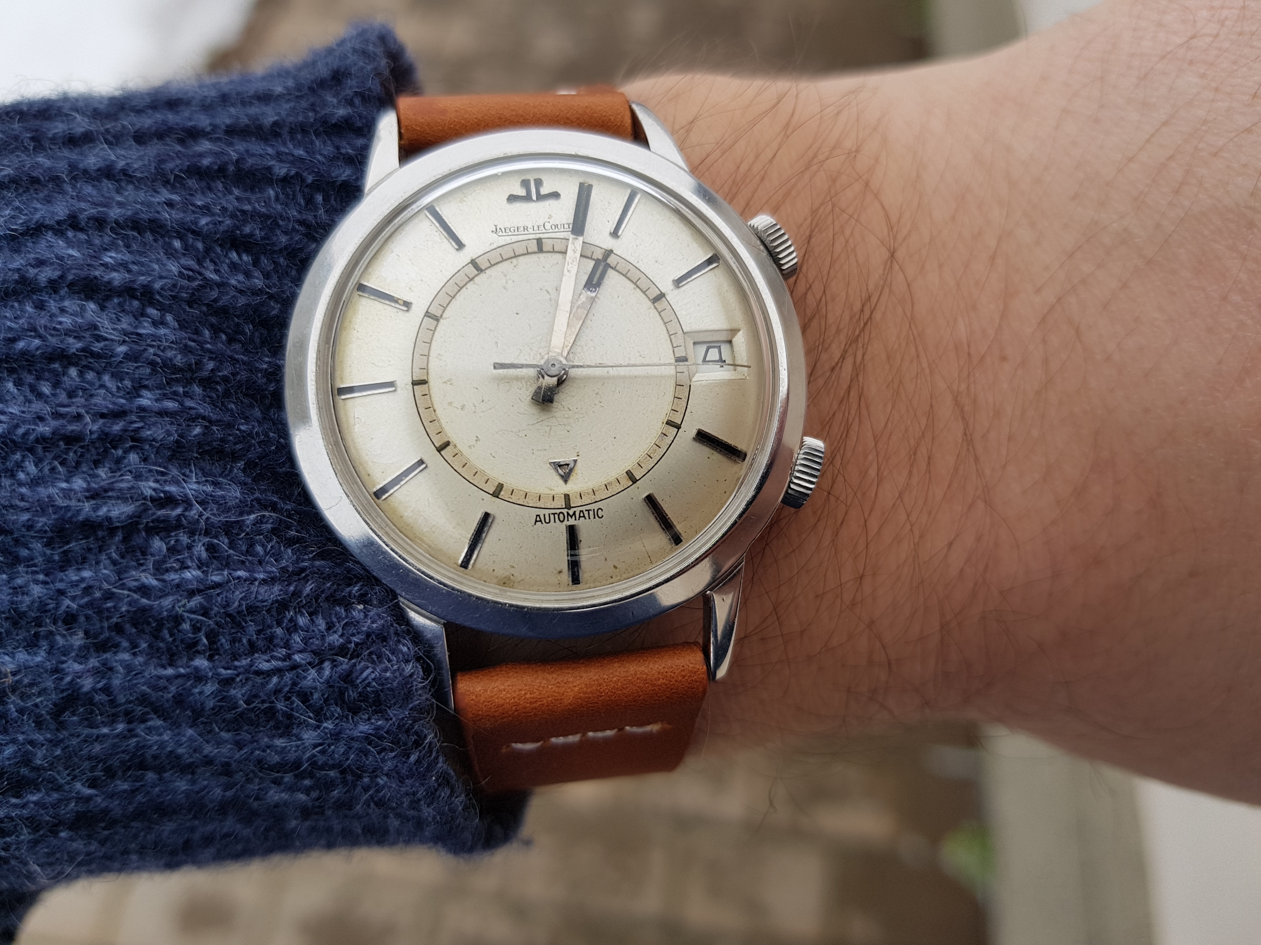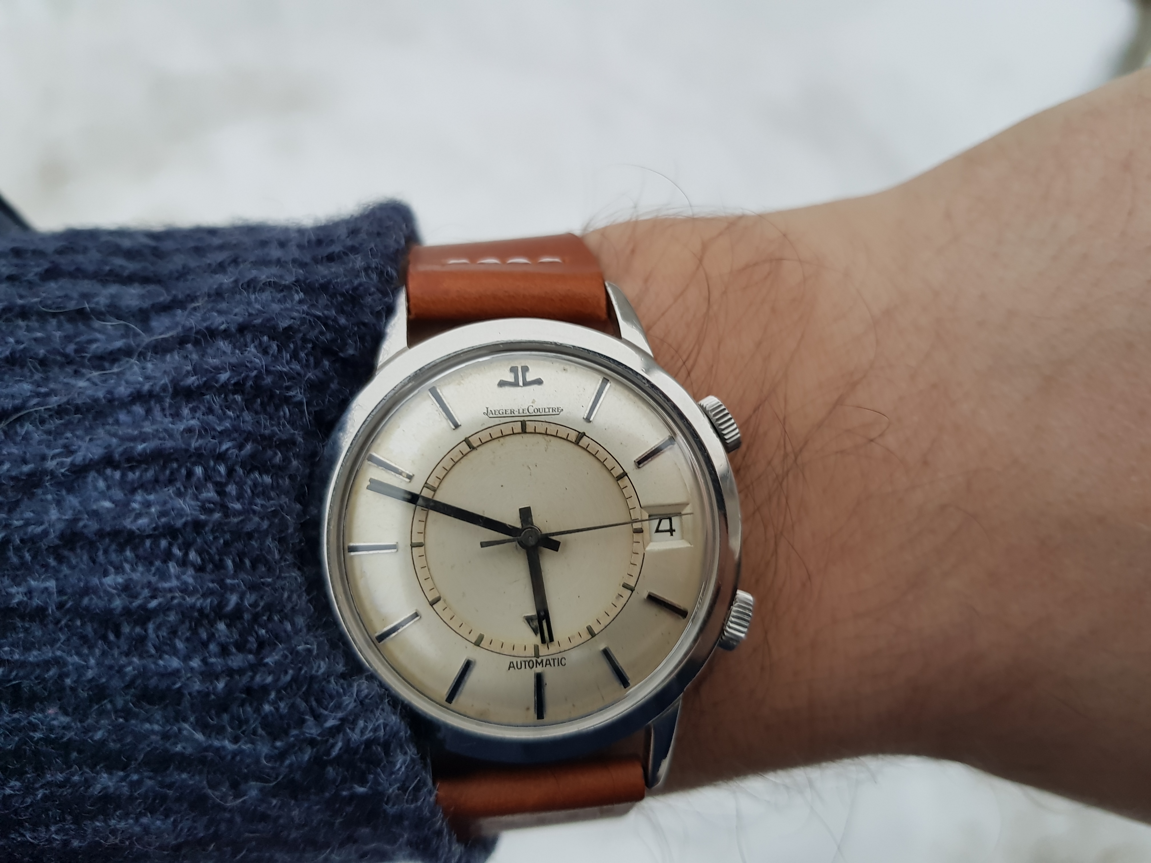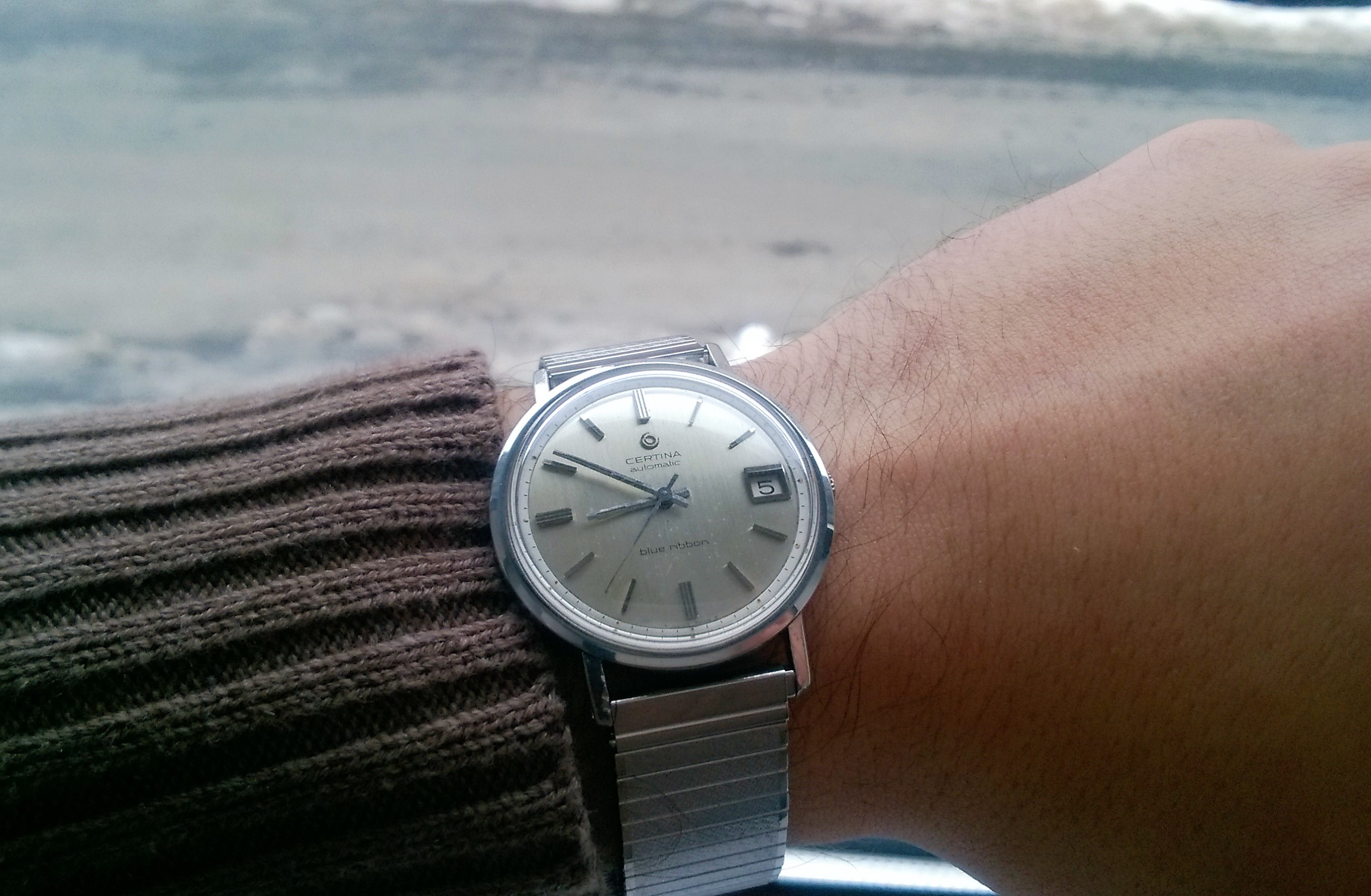 Had to get a proper bracelet for it my jeweler had a 19mm Rolex and extra links to fit my giant wrist, I all that to see if a 34 mm Rolex would be too small 36mm maybe or should I get new I like vintage but.... oh and excuse the little sore that doesn't go away I have psoriasis TMI I know but don't want y'all to think I have aids...... again!