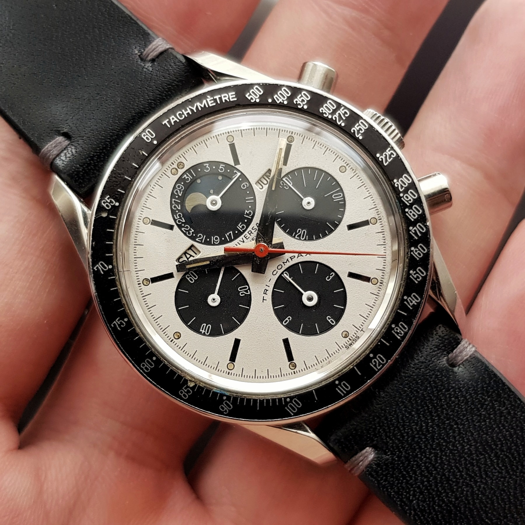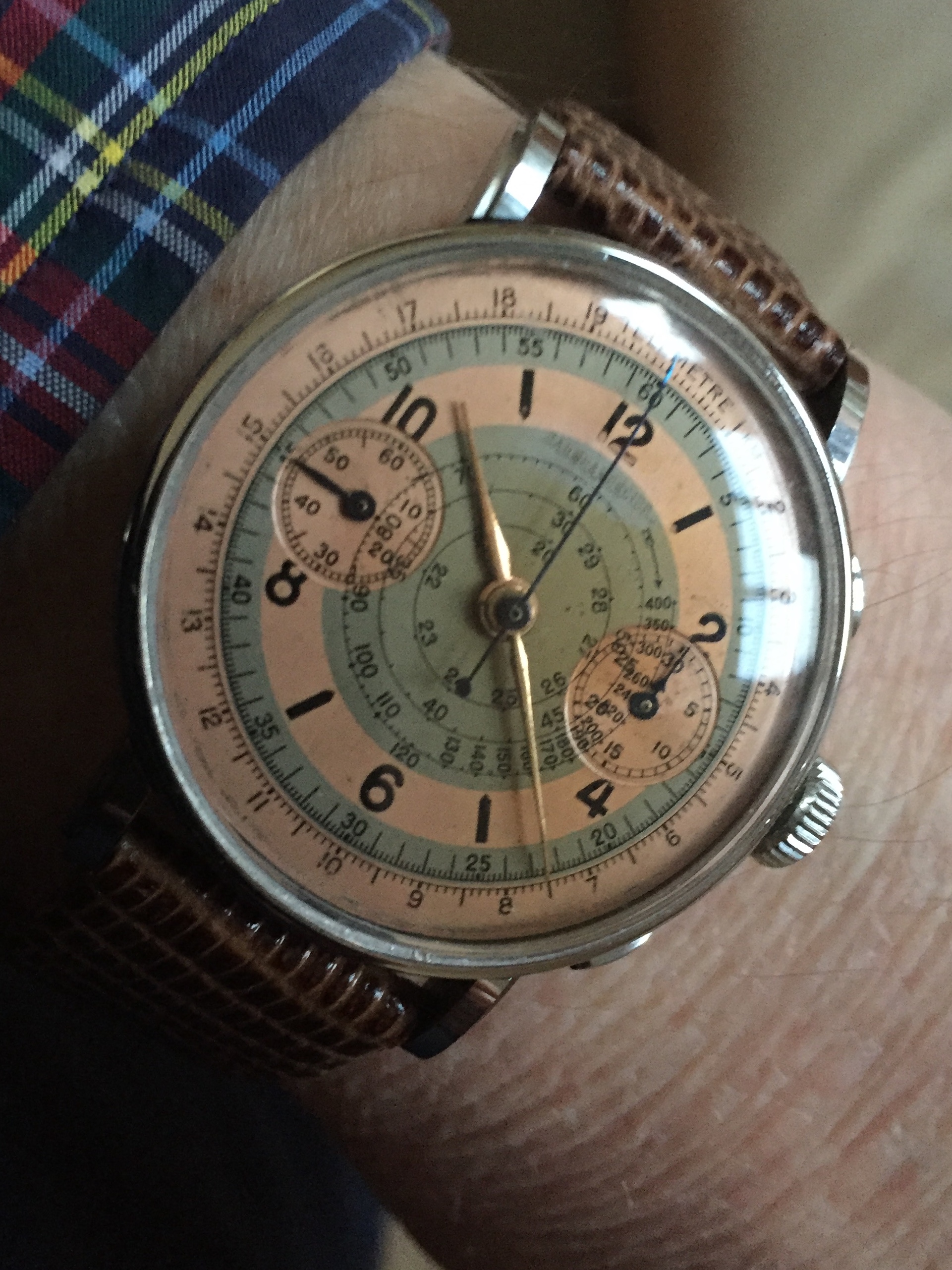 Baume & Mercier 1940s salmon dial chrono, the brand was engraved over at the dial, I am wondering what the former print refers to, on my to do for the future research.