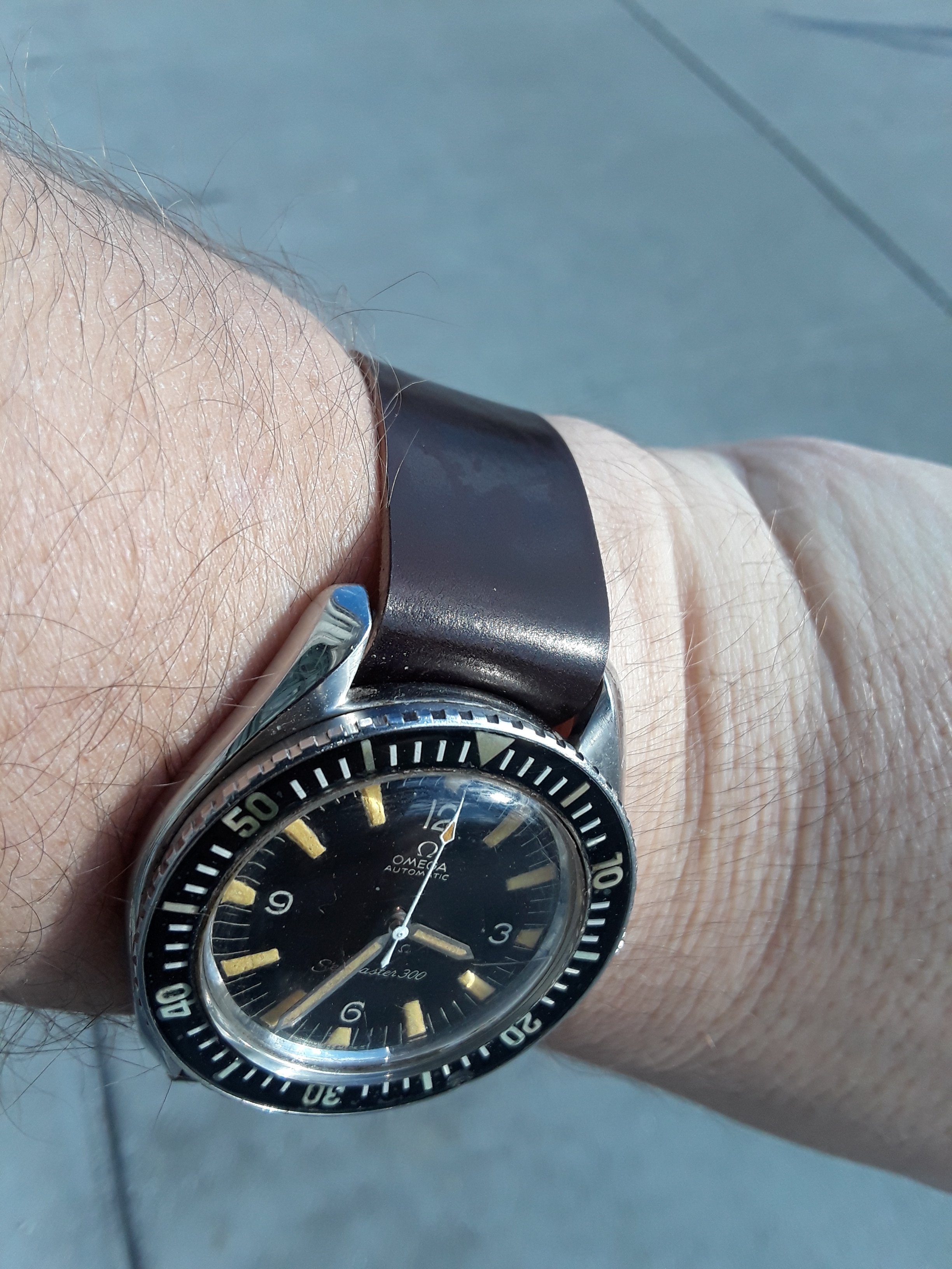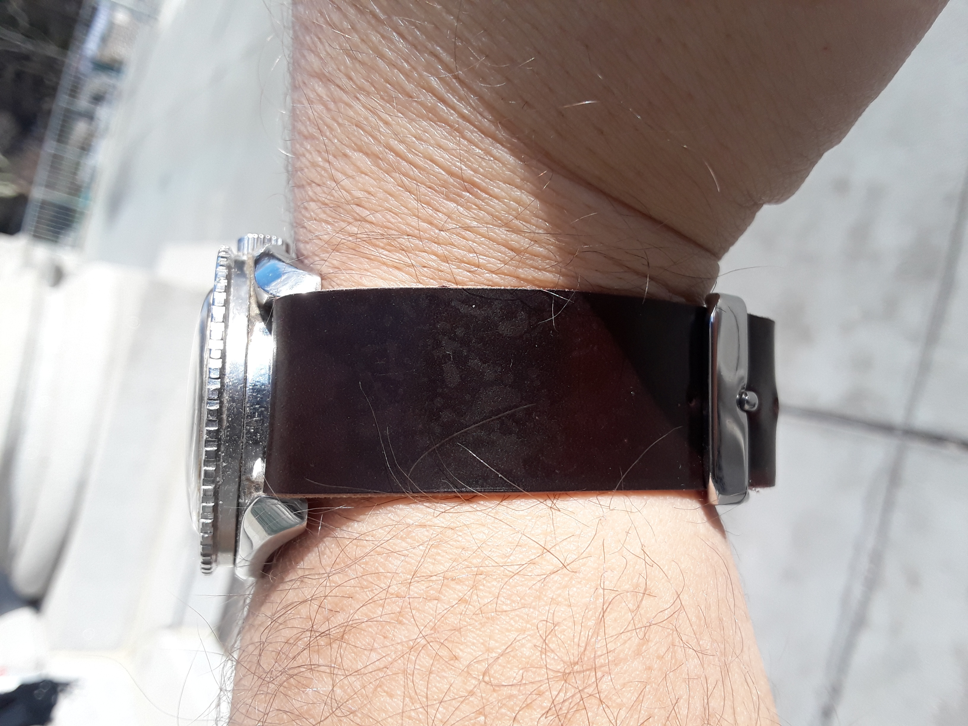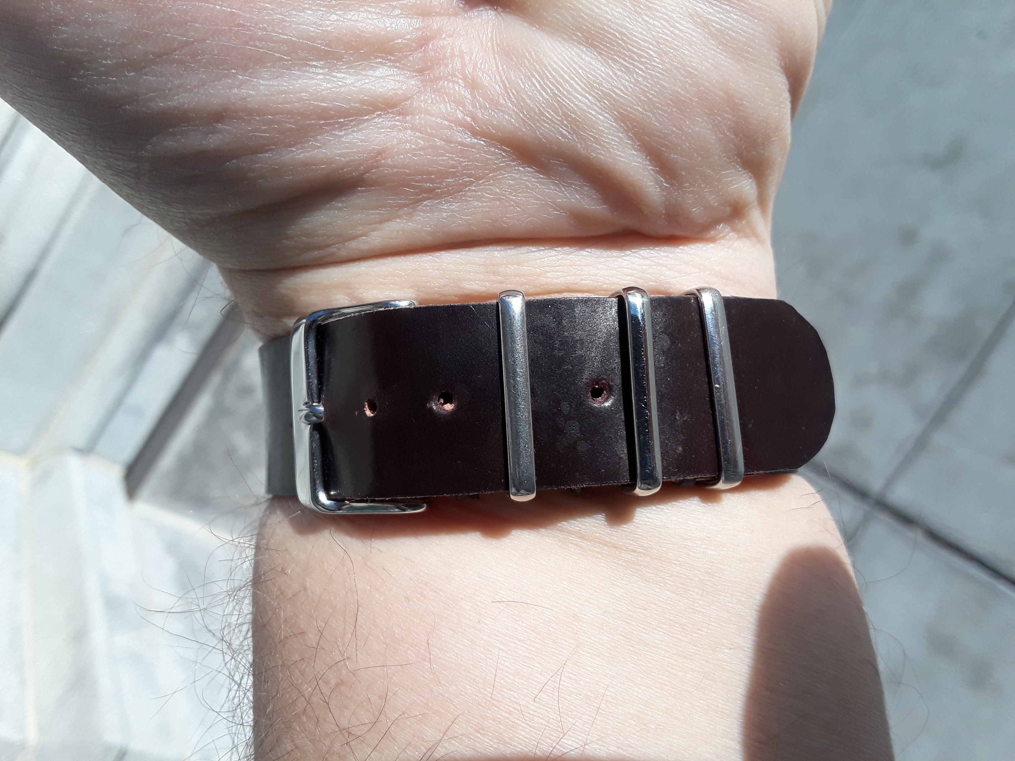Posts 1,153 Likes 3,054 OMGRLX ·Mar 5, 2018 Earlier today, my trusty old sm300 on my own handmade no.8 burgundy shell cordovan one piece NATO with black line stitching, natural edges and polished hardware.