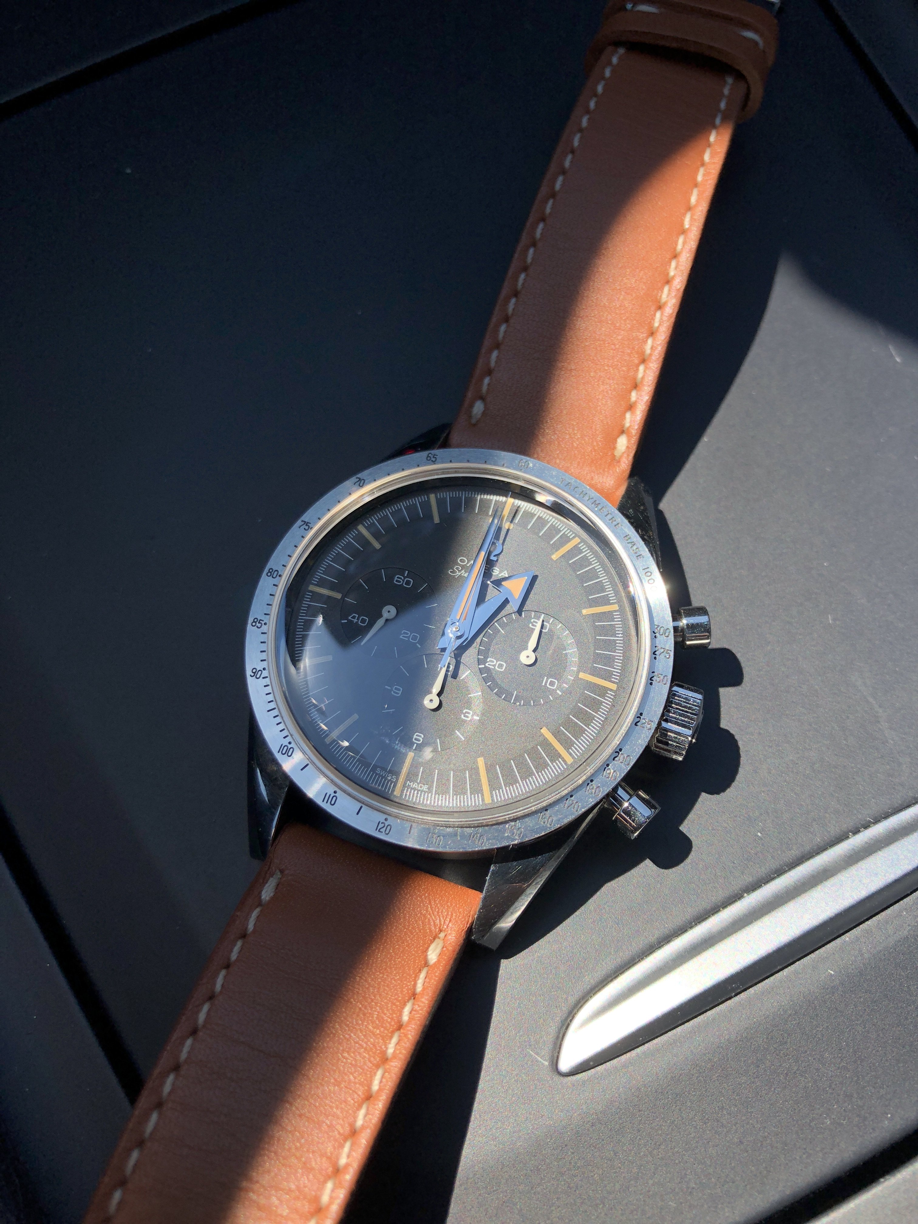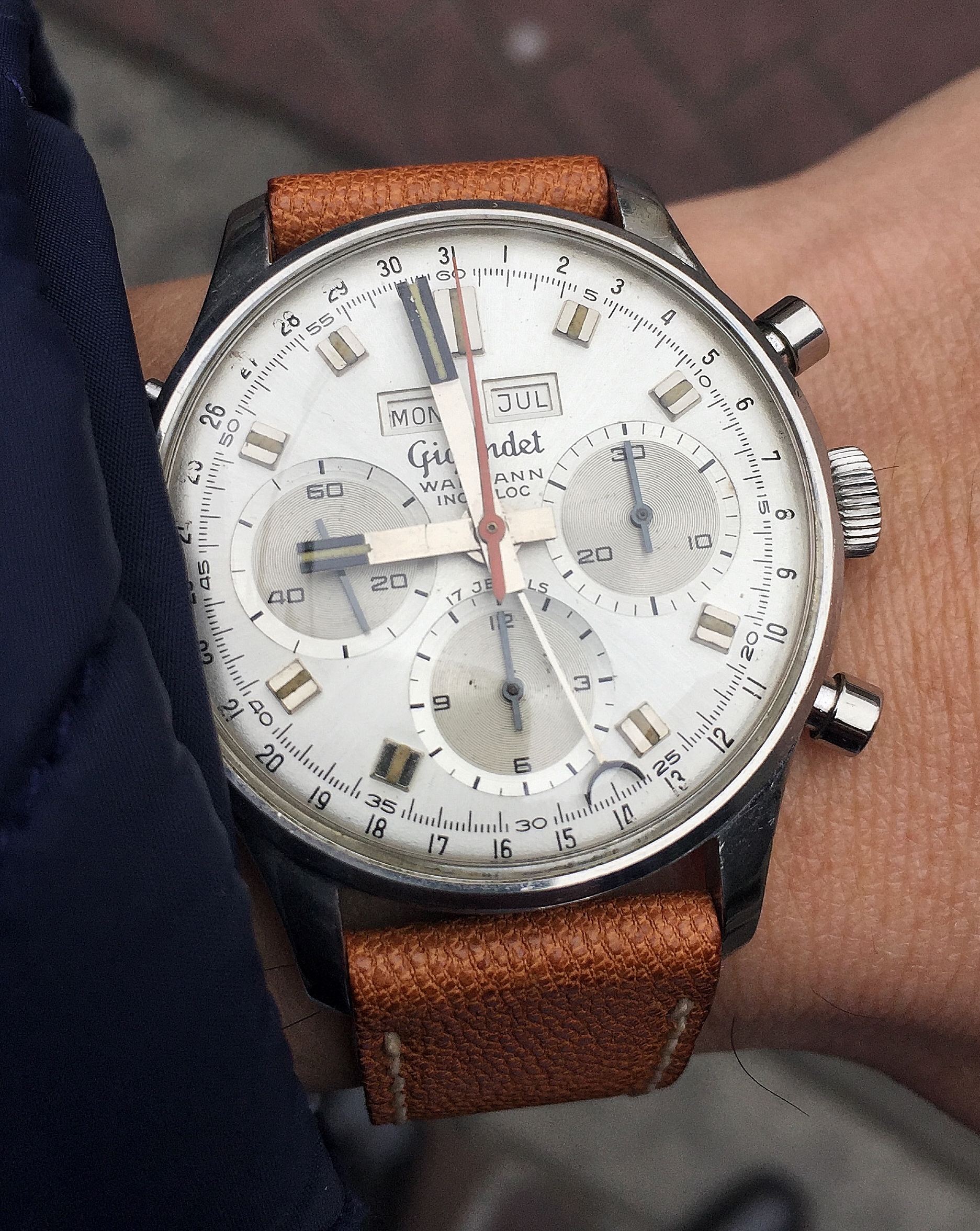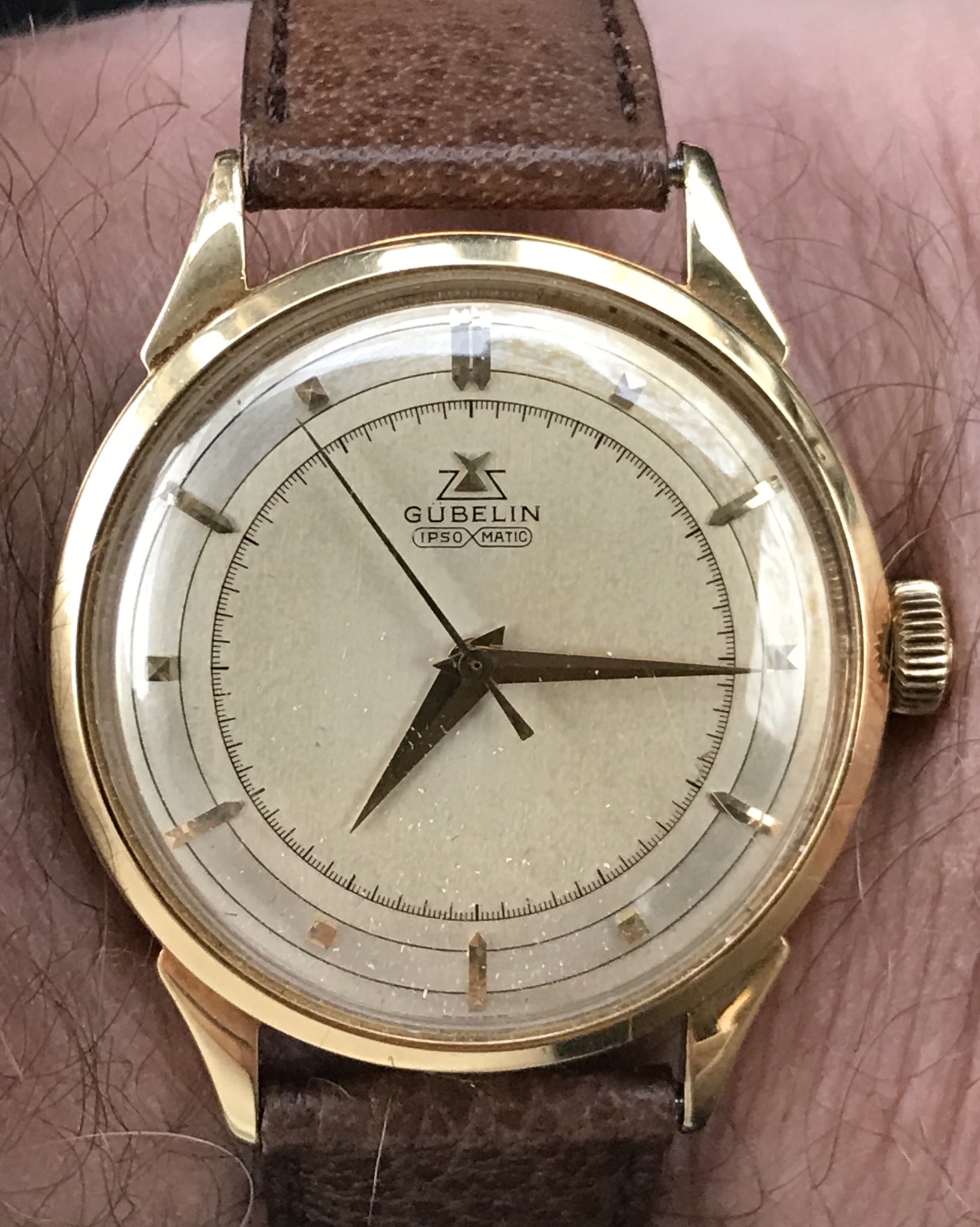The other pup at sister’s, ‘Kaiser’. He prefers more modern watches than this 50’s Vulcain Cricket because he’s obsessed with chasing sapphire crystal reflections 😁...