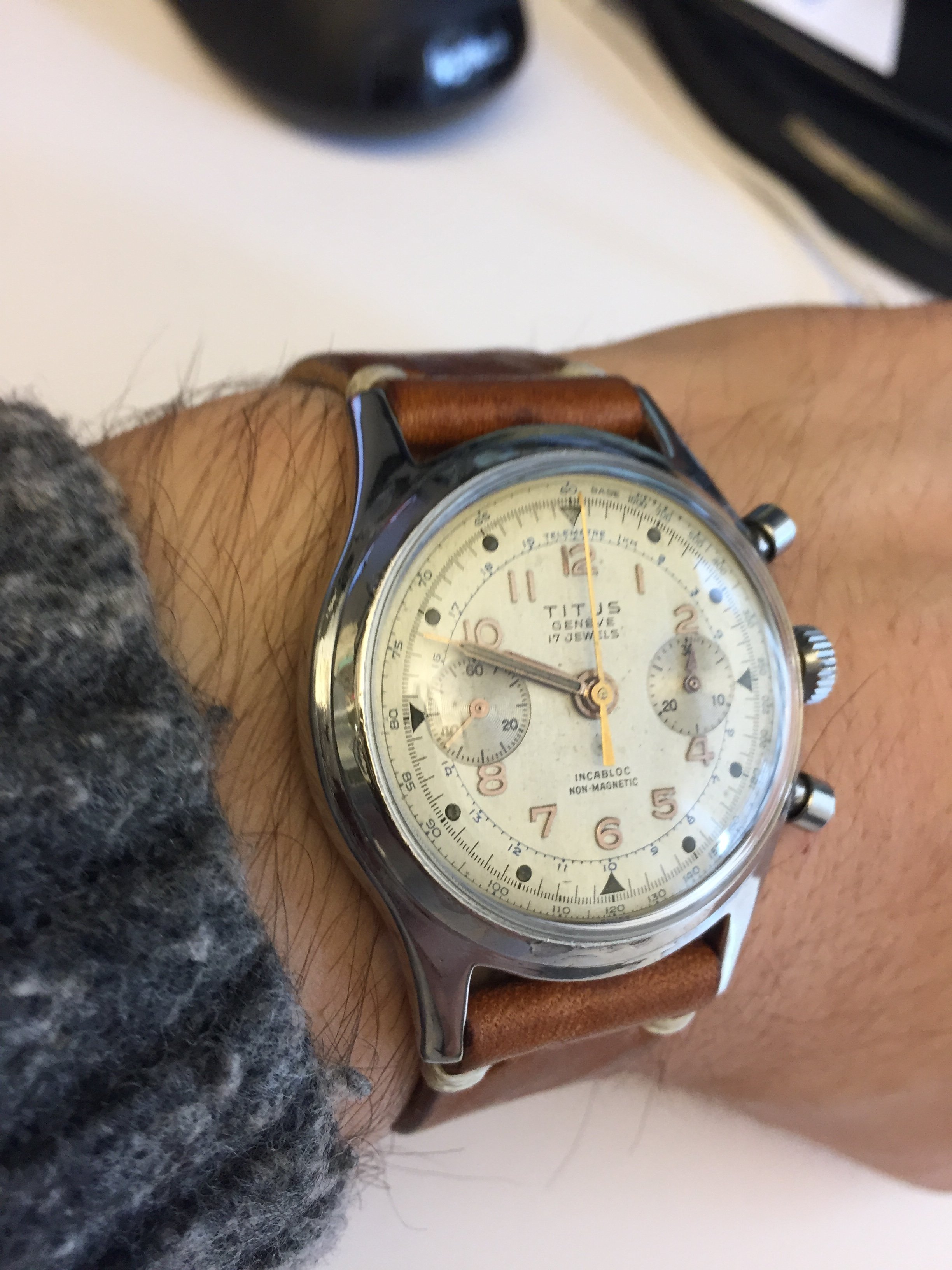 I don't know how the rest of you choose your watch for the day. My decision making tree varies wildly. Influences include what shirt, metal on my suspender adjustments (vaguely analogous to a belt buckle for you normal guys), leather on said suspenders (I really think of them as braces but everybody else calls them suspenders) which will be in turn influenced by my shoes, etc., etc., etc.
