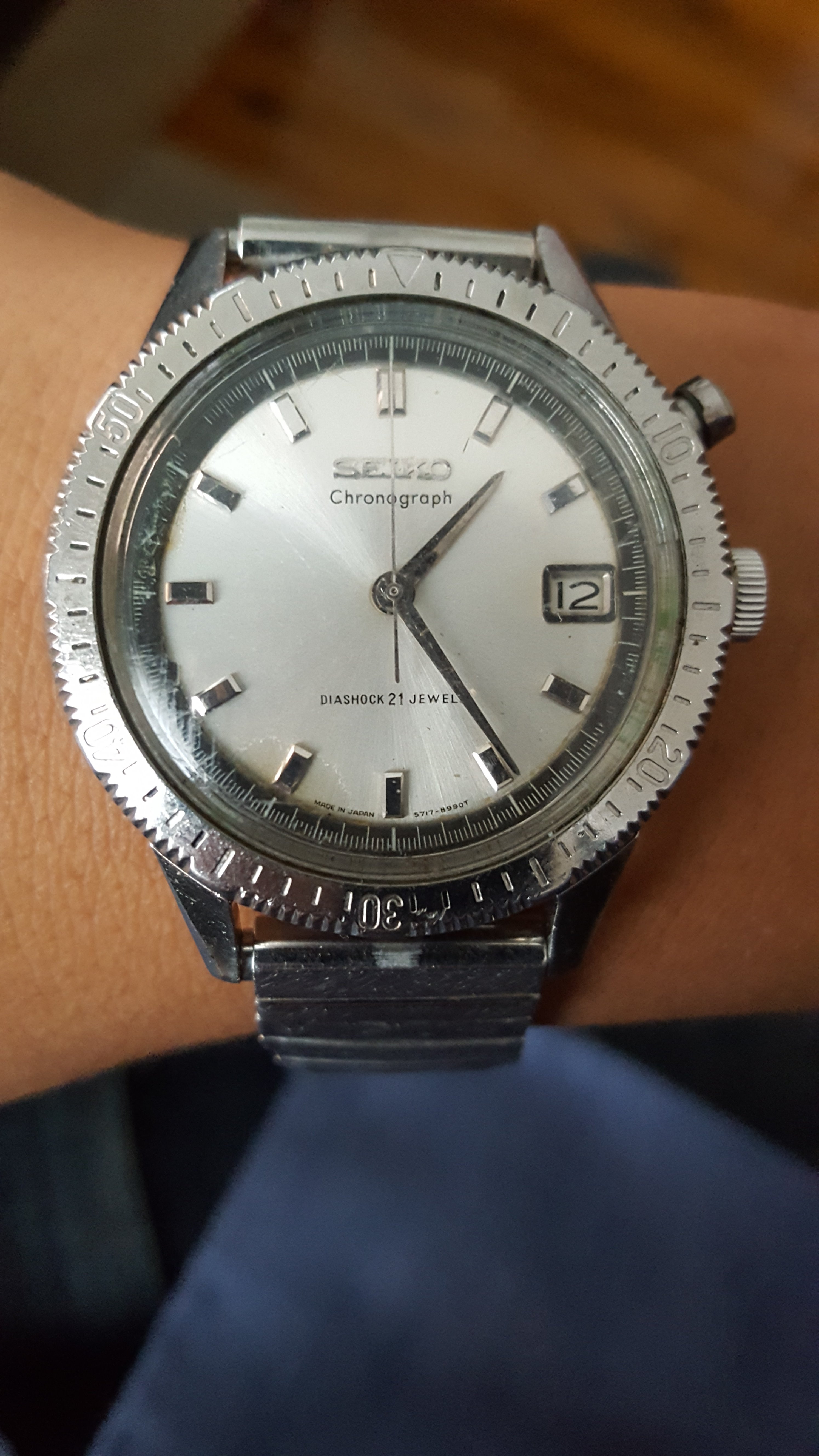 Posts 1,727 Likes 5,962 GuiltyBoomerang ·Mar 11, 2018 Just arrived and loving it! Seiko 5717-8990 one-button chronograph 😀