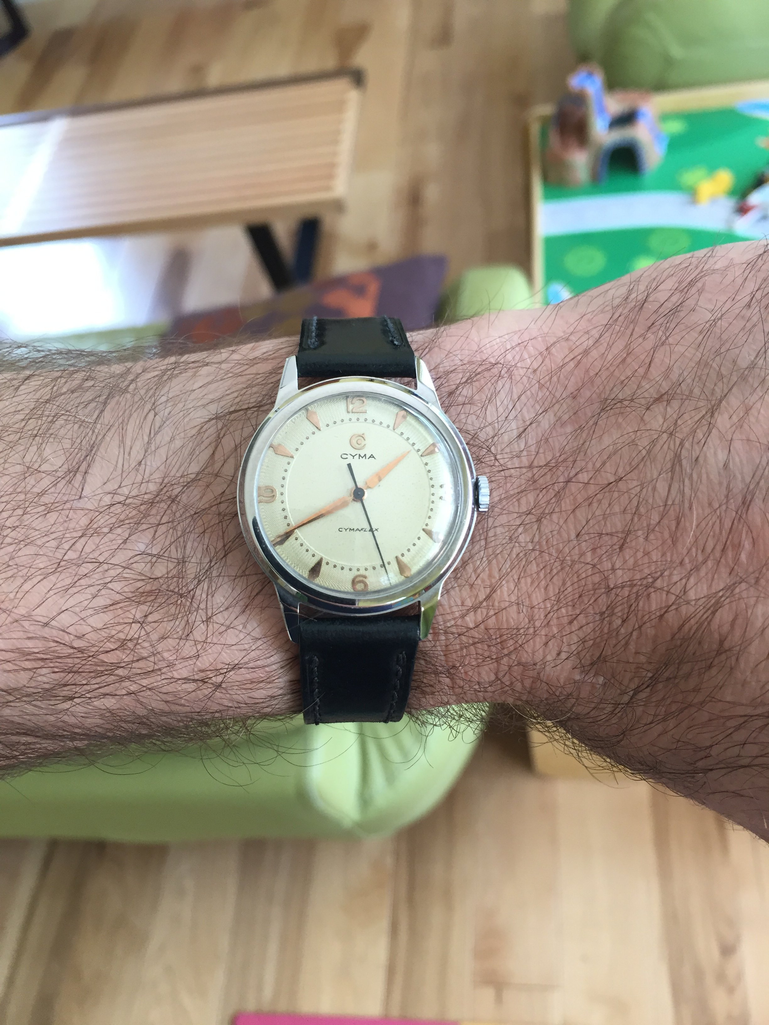 Posts 13,552 Likes 53,127 Larry S ·Mar 24, 2018·Color Commentator for the Hyperbole. RGM 455 / V7753 - Bespoke Grand Feu Dial - Blued Hands ... makes me happy every time I wear it.
