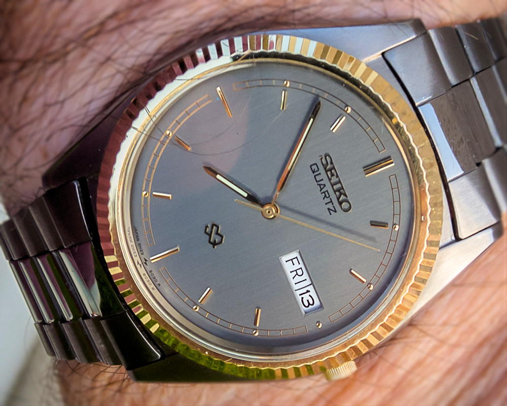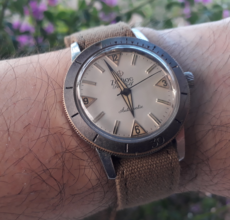 It's the only example I've seen with this dial furniture (lume plots on the dial matched by luminous material inside the hands), other references I saw either have Onyx furniture (matching dial and hands) or gold markers, sometimes aligned horizontally along the 12-6 axis.
