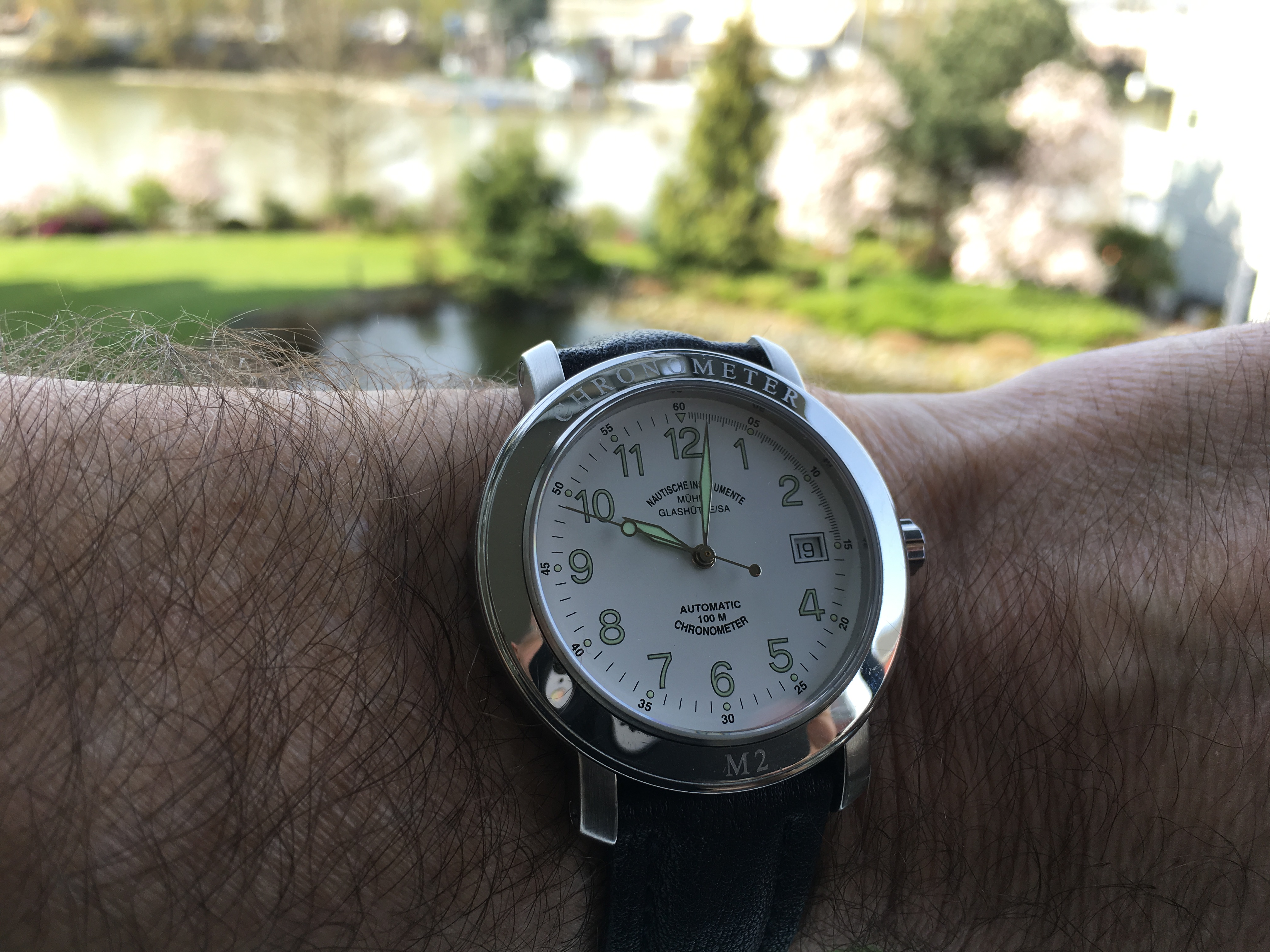 My wife’s wedding gift to me - a 1999 Muhle M2. She’s bummed that I’ve since embraced Seamasters. I love this watch, even more especially given the brownie points it wins me, i.e. ‘See, Honey - look what I’m wearing today!