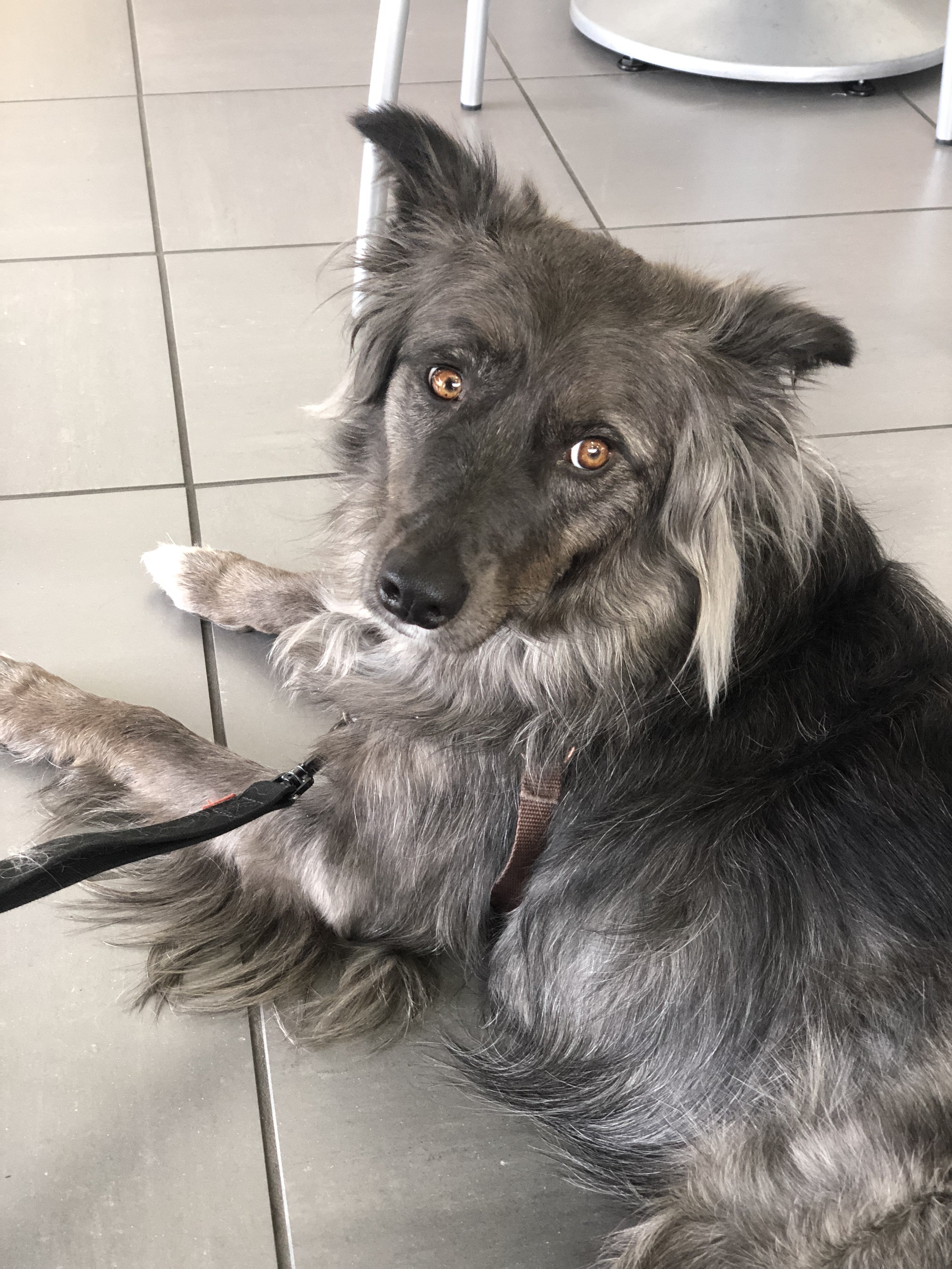 Waiting for one of my car’s routine 90K mile service to be done. Brought my daughter’s dog, which I’m baby sitting while she’s in Rome with my wife right now.
