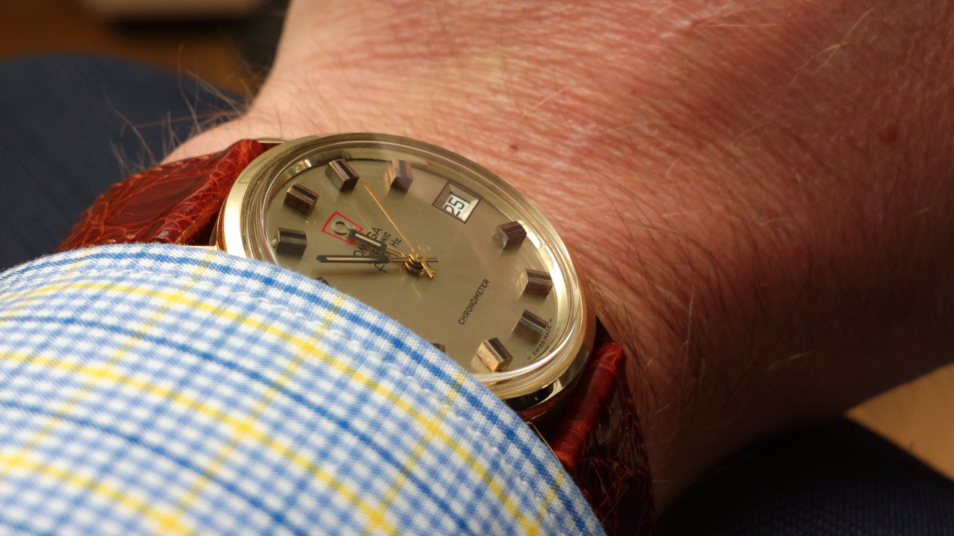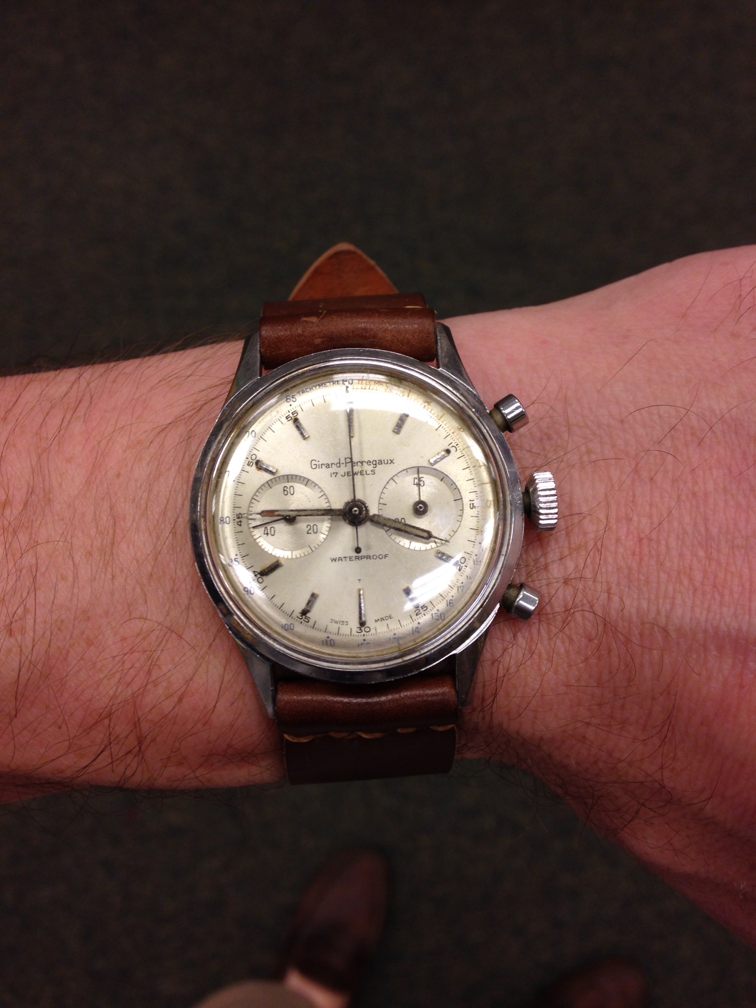 Pic is actually from yesterday morning. Timed my walk and then the register and sweep second hand would not reset. Sadly, had to drop it of at my watchmaker's yesterday and I am not wearing it today. He will do a full overhaul, no polishing of the case of course. I am jonesing bad and having the DT's. It will probably be a month before I see it again. I did some whining and he chuckled and said something about I wouldn't be hard up for a watch in the meantime. I don't know what I will post now. LOL. Oh, update on the weight, down to 207 from 216. And I will post a pic in the Pets thread.....my wife and I drove to Harvard, MA on Monday and adopted a mother and daughter Bengal cats. As always, thanks from slogging through this.