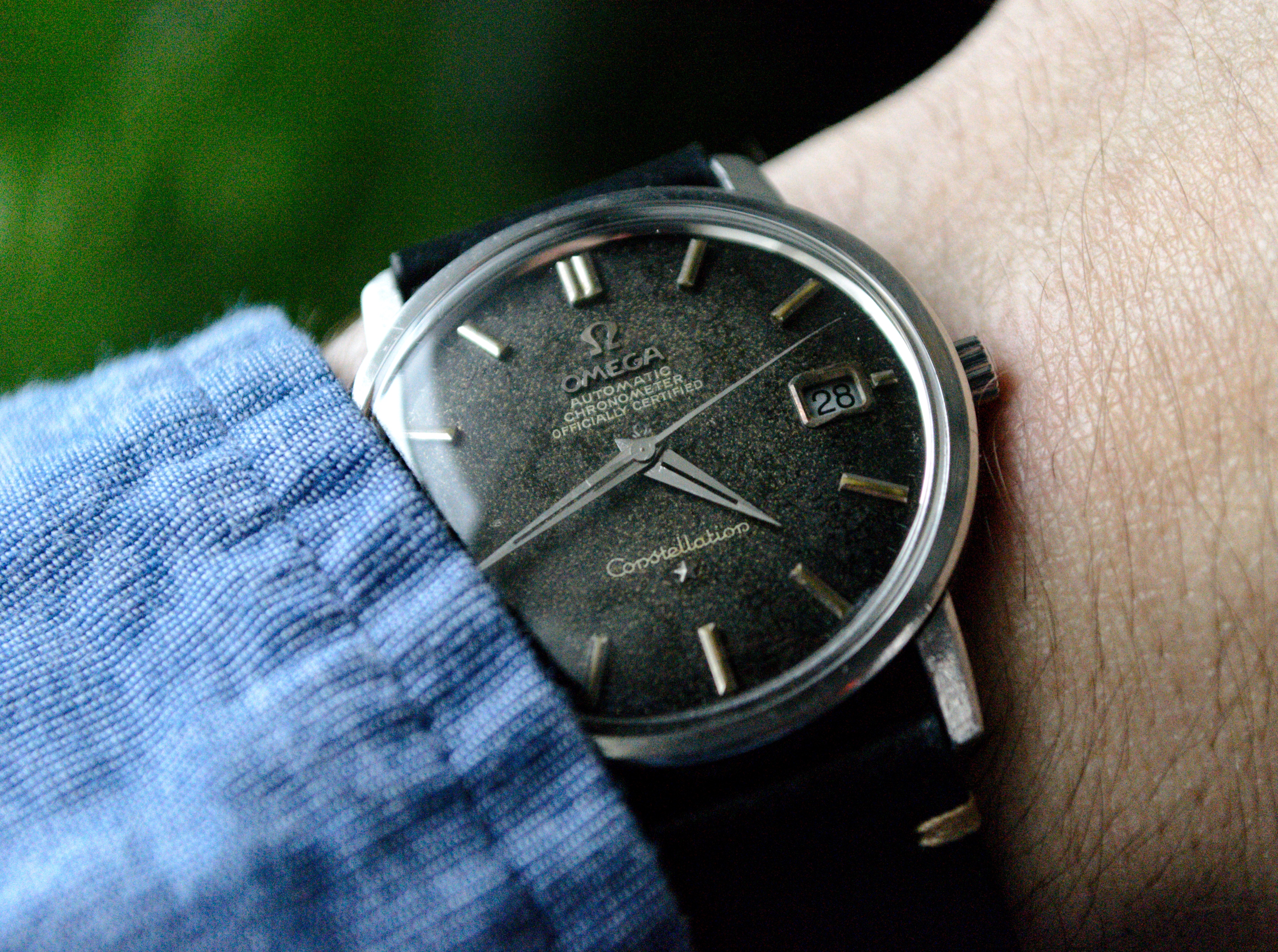 Posts 4,862 Likes 31,795 Taddyangle ·Apr 28, 2018 My beater. - 71 with ghost bezel, polished case, scratch on dial, and out of place chrono hand.