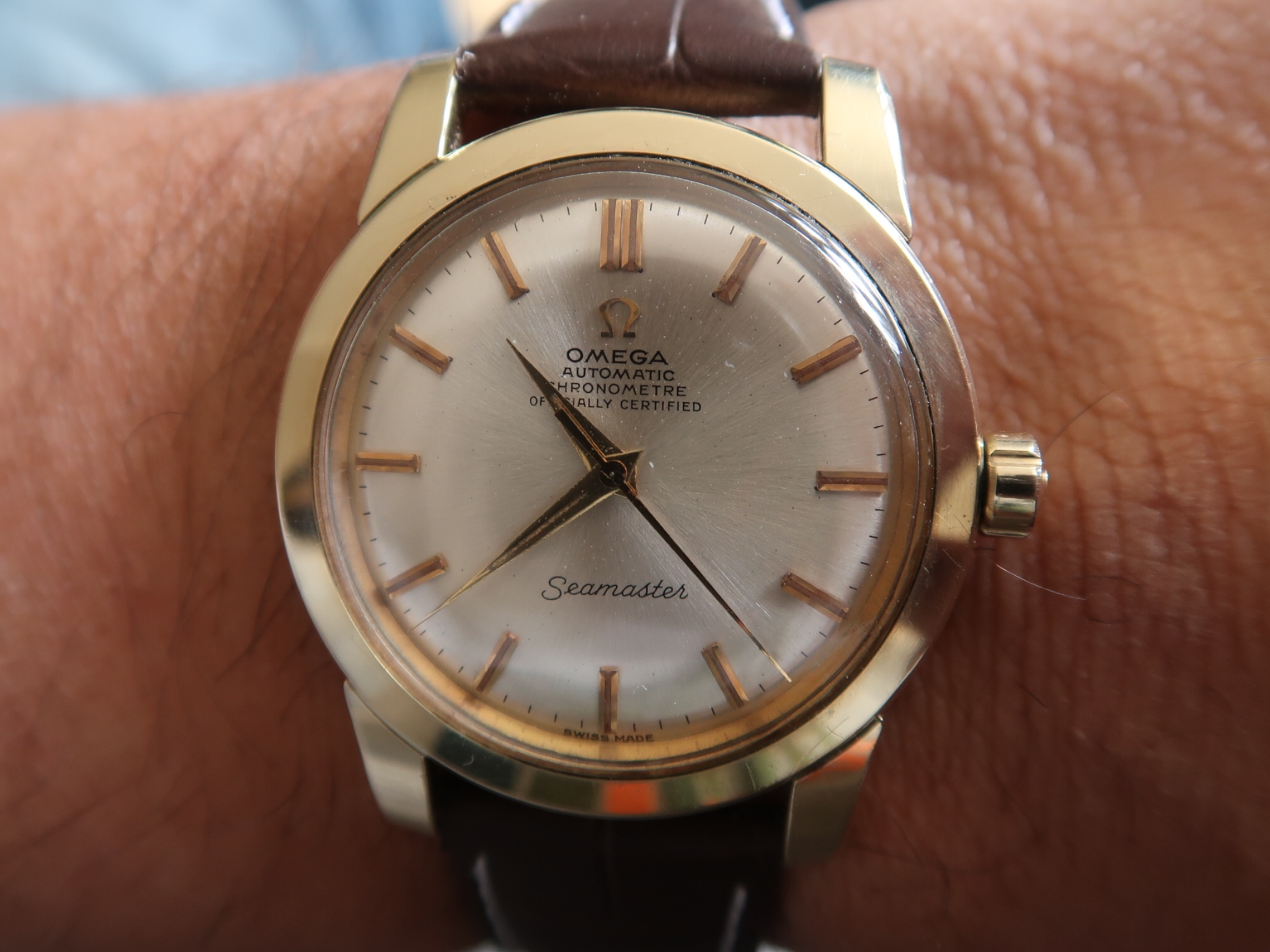 Posts 76 Likes 912 Rodchop09 ·May 3, 2018 Another omega for me today, 1950 Seamaster sunburst dial Chronometre with bumper 352 RG movement.