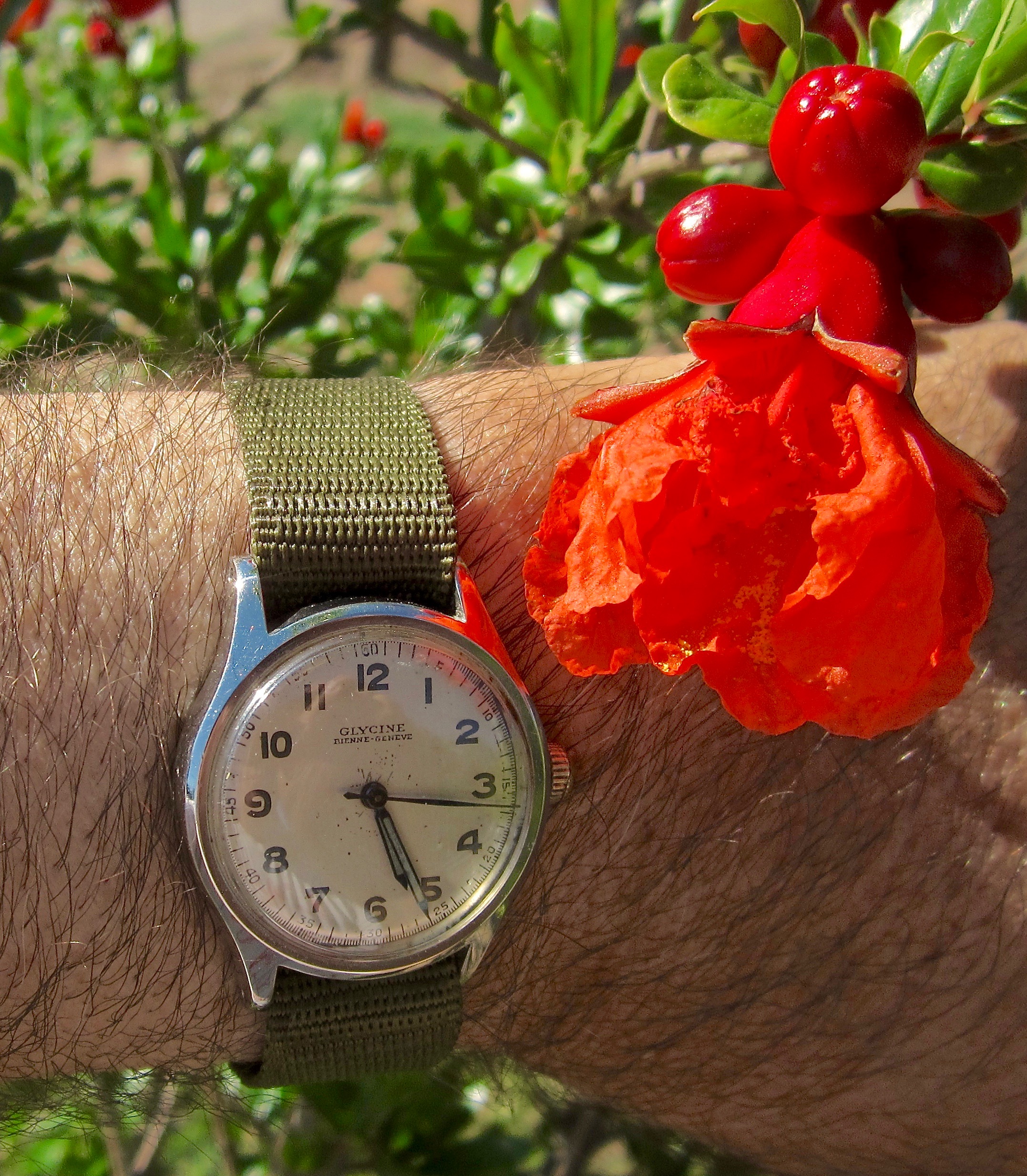Posts 6,700 Likes 52,753 noelekal ·May 5, 2018·Home For Wayward Watches The lawn is well and truly mown. Weeded as well. When the going gets tough the humble Glycine huntin', fishin', beater watch always comes through. Pomegranates