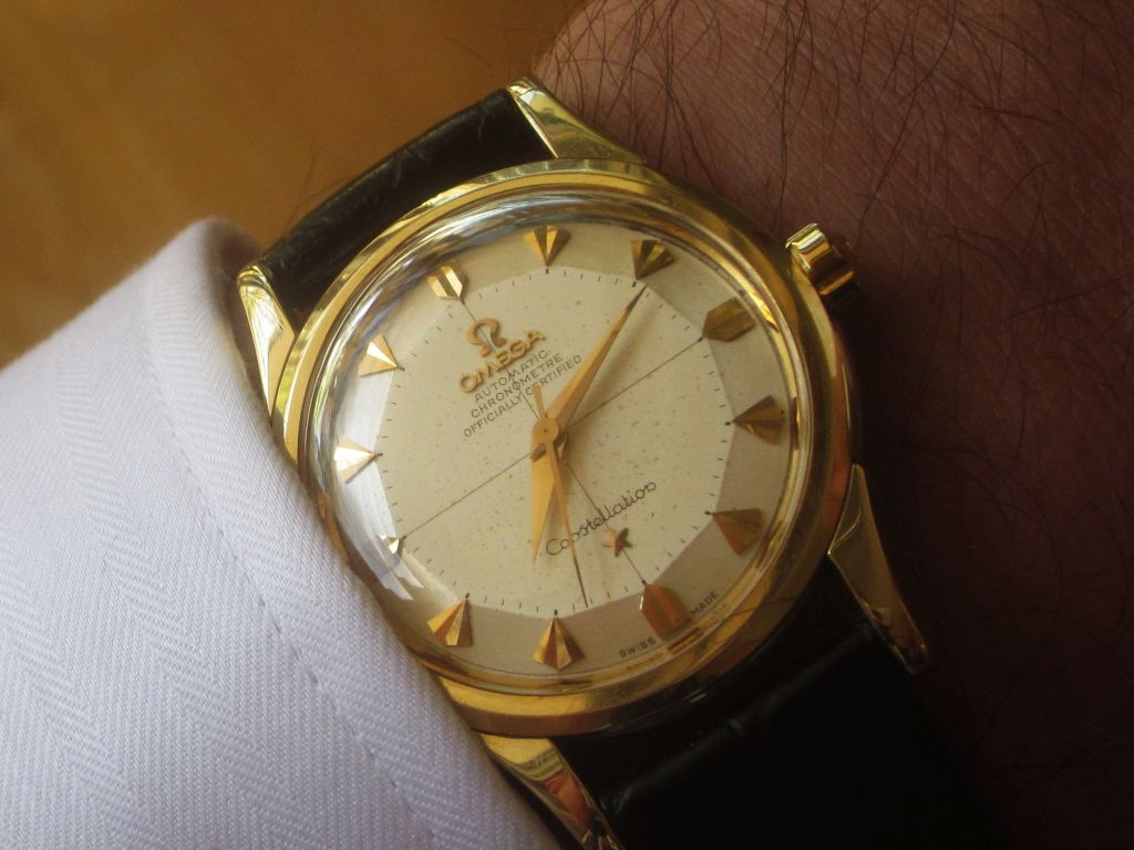 Since the beginning of my interest in watches about 10 years ago, arrow head pie pan Constellations have made me look like the boy in my avatar (umm...which is me). While I acquired many other models, an arrow head remained elusive. A year ago I picked up a lovely stick marker 168.005…which helped…but didn’t quench the thirst. Finally the planets aligned. Please join me in welcoming this gold capped 2852, cal 505. YaY!