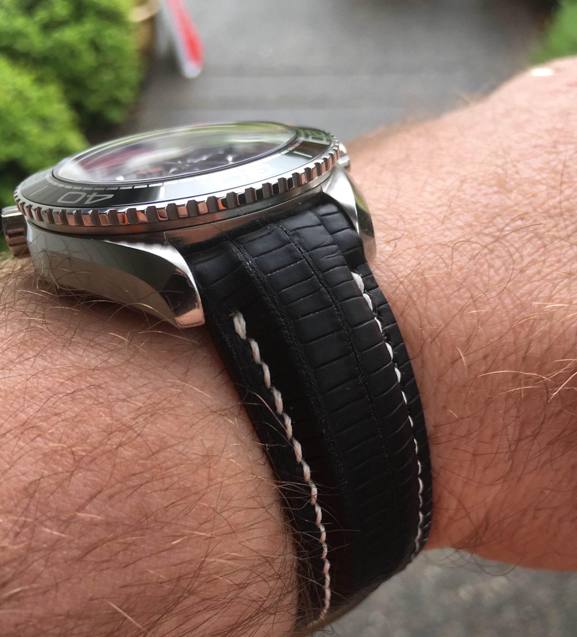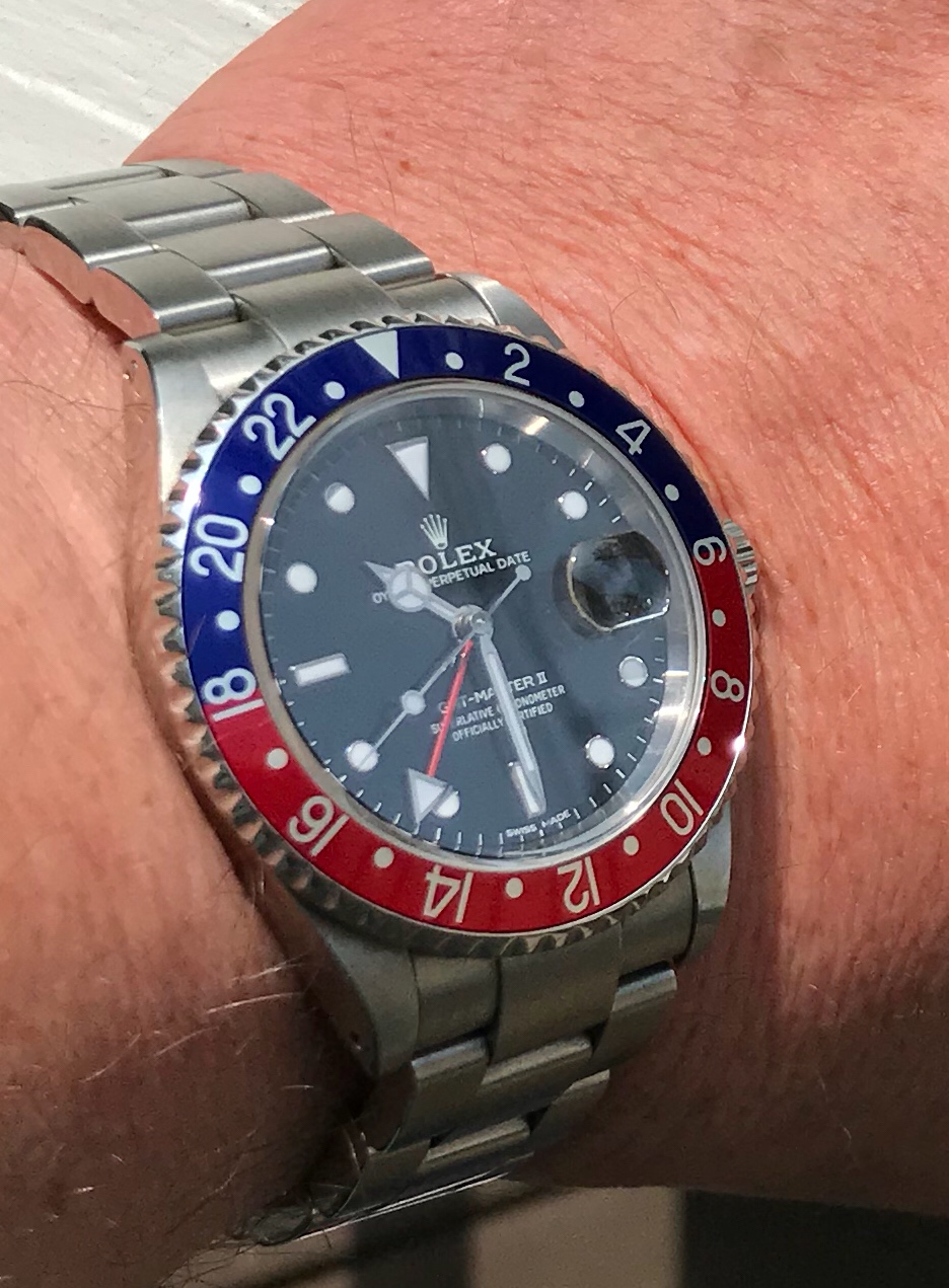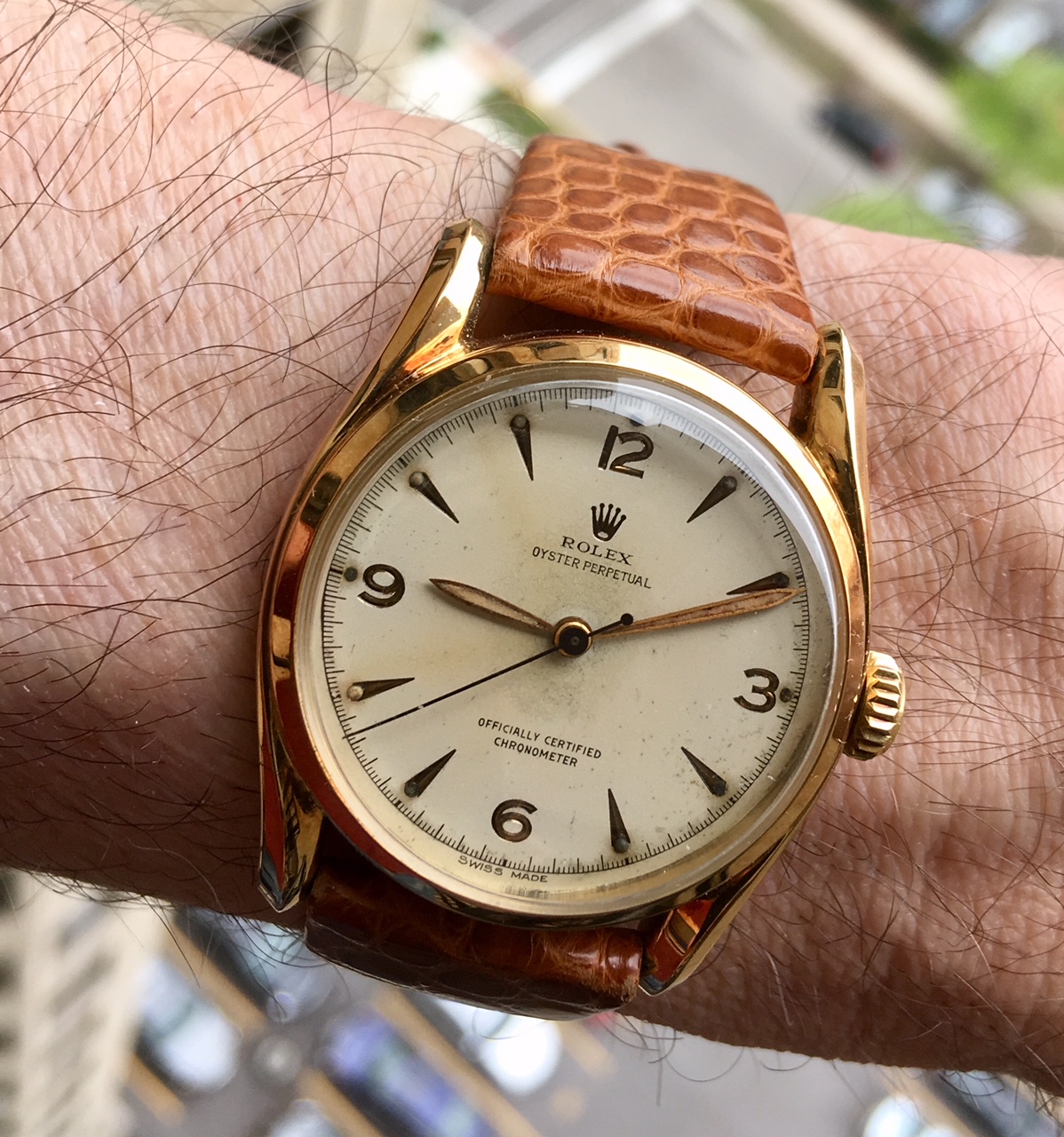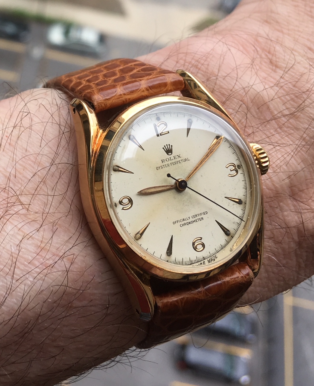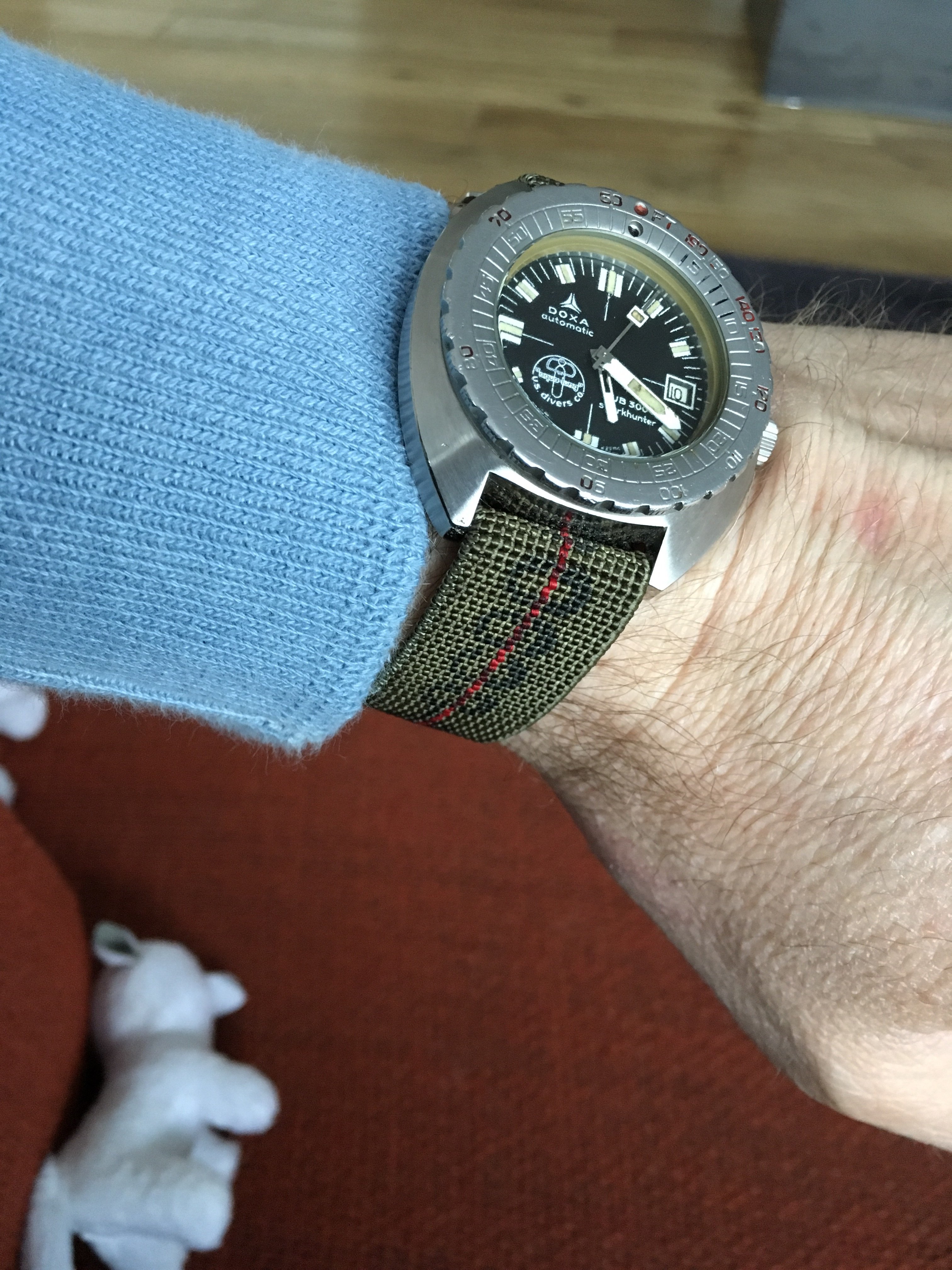 Yet another Speedmaster. My 29 year old one, not the limited edition model, but one also commemorating the 20th anniversary of the Apollo XI mission, landing on the moon. Model 345.0808, shown as introduced in 1980. This one with the sapphire case back, and the gold plated caliber 863 movement, marked in Ranfft as the “Jubilee” model.