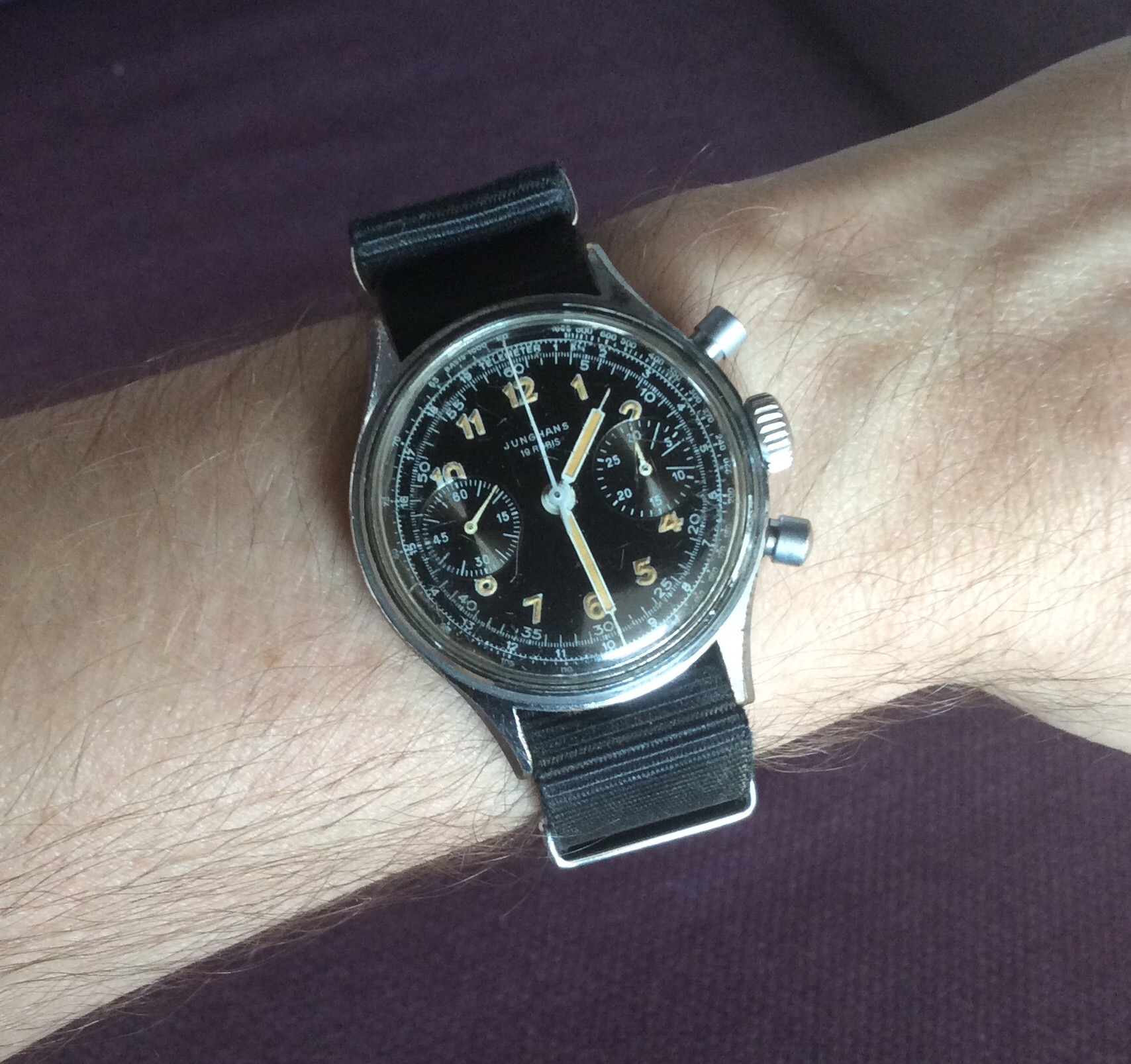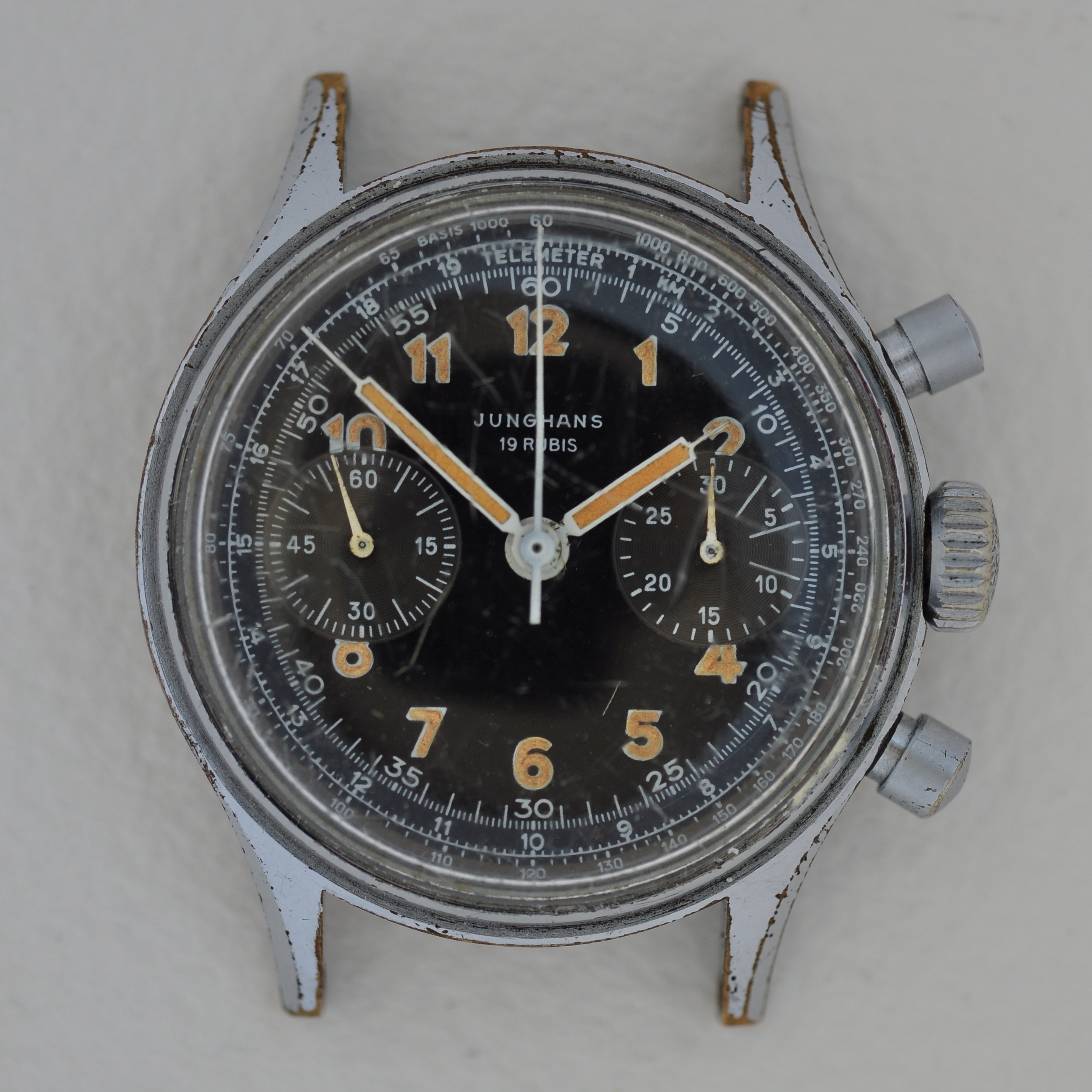 It’s a first version of the Junghans Bund (the 88/0110) which was very quickly superceded by the better known model with the wavey bezel (the 88/0111). Dial is more like a civilian one but I managed to get a correct one with a movement just last month. The 88/110 normally had a coin edged bezel but there’s not even a groove on this midcase so it never had a bezel. There’s at least one other bezel-less 88/110 out there so it might be a correct variant. I’ll have to try and research things...