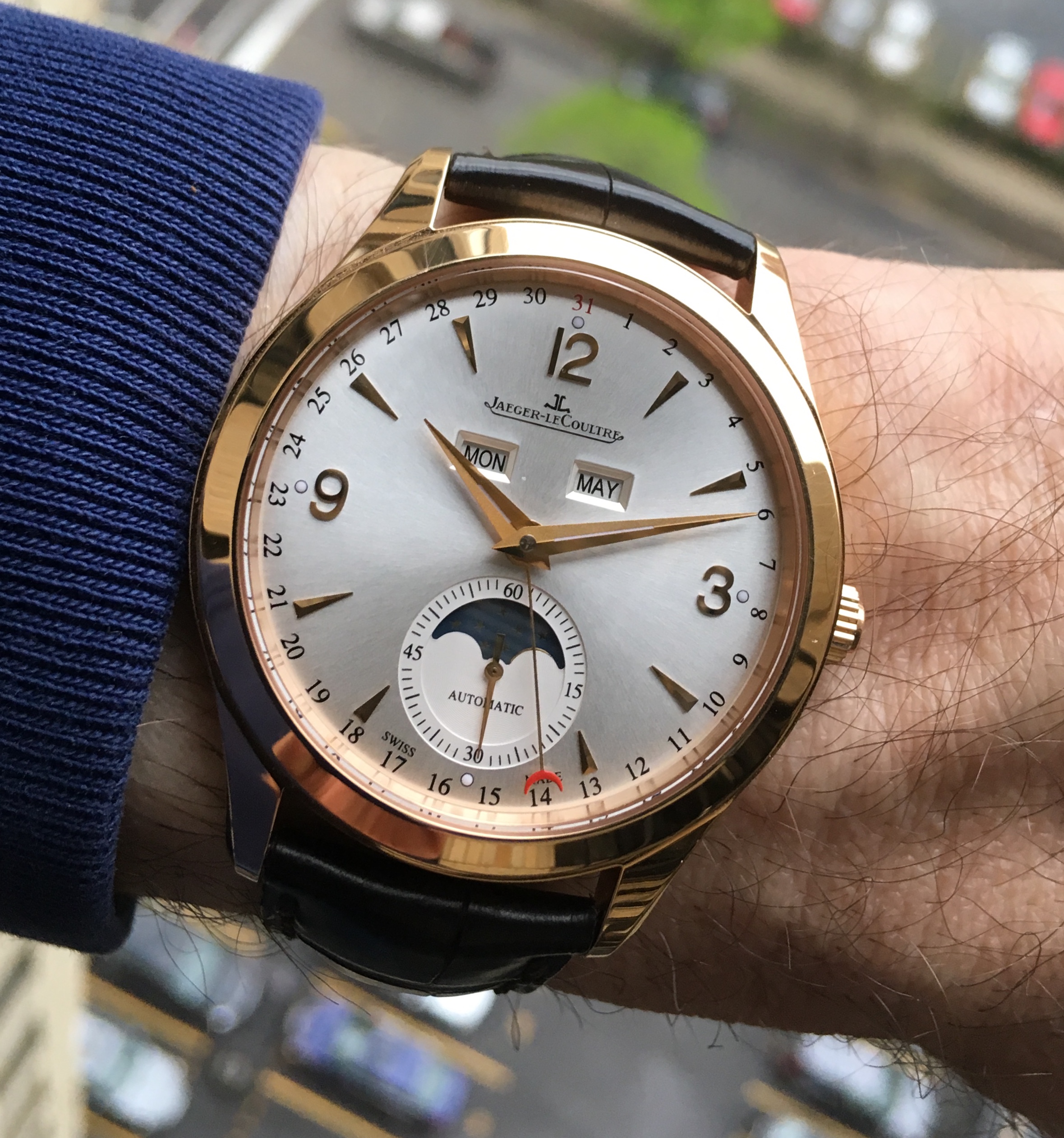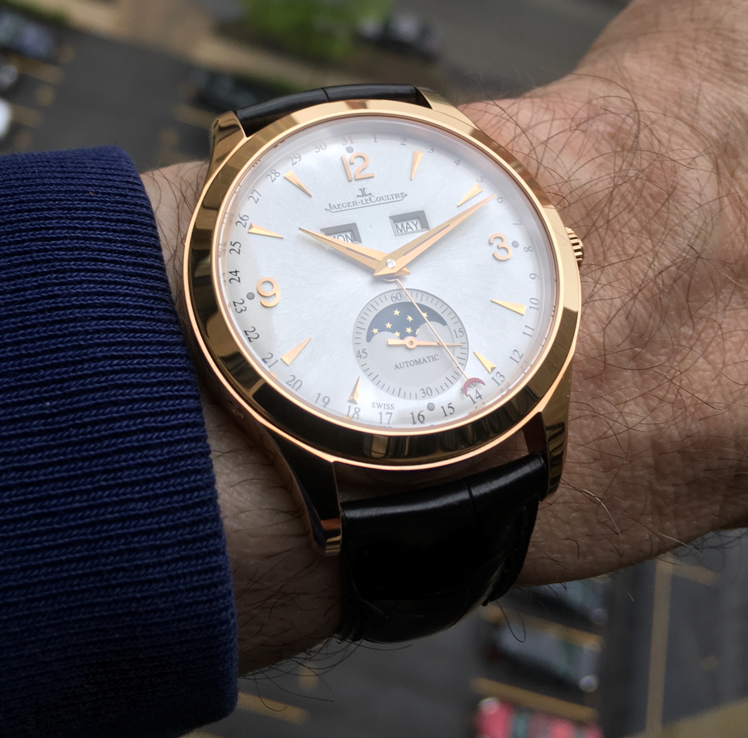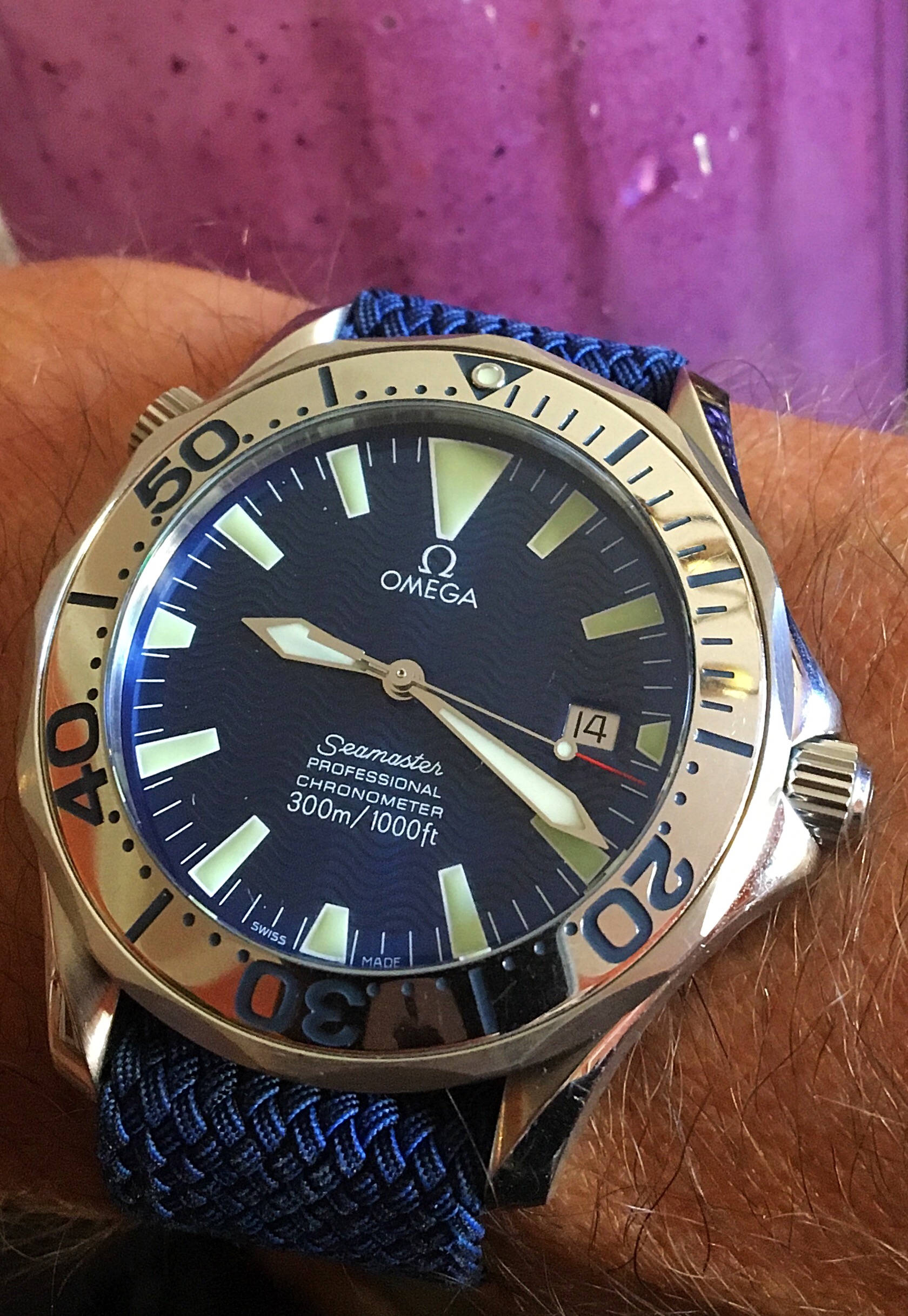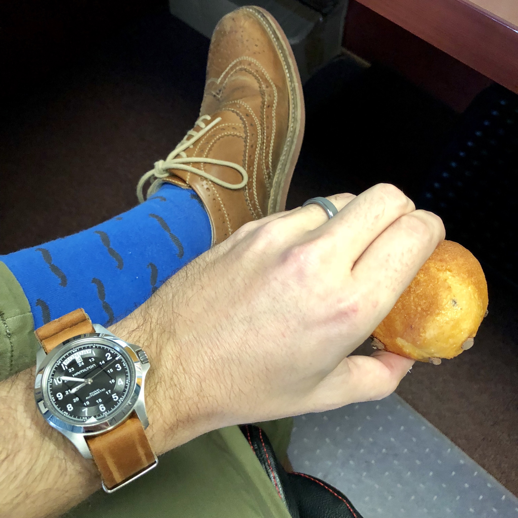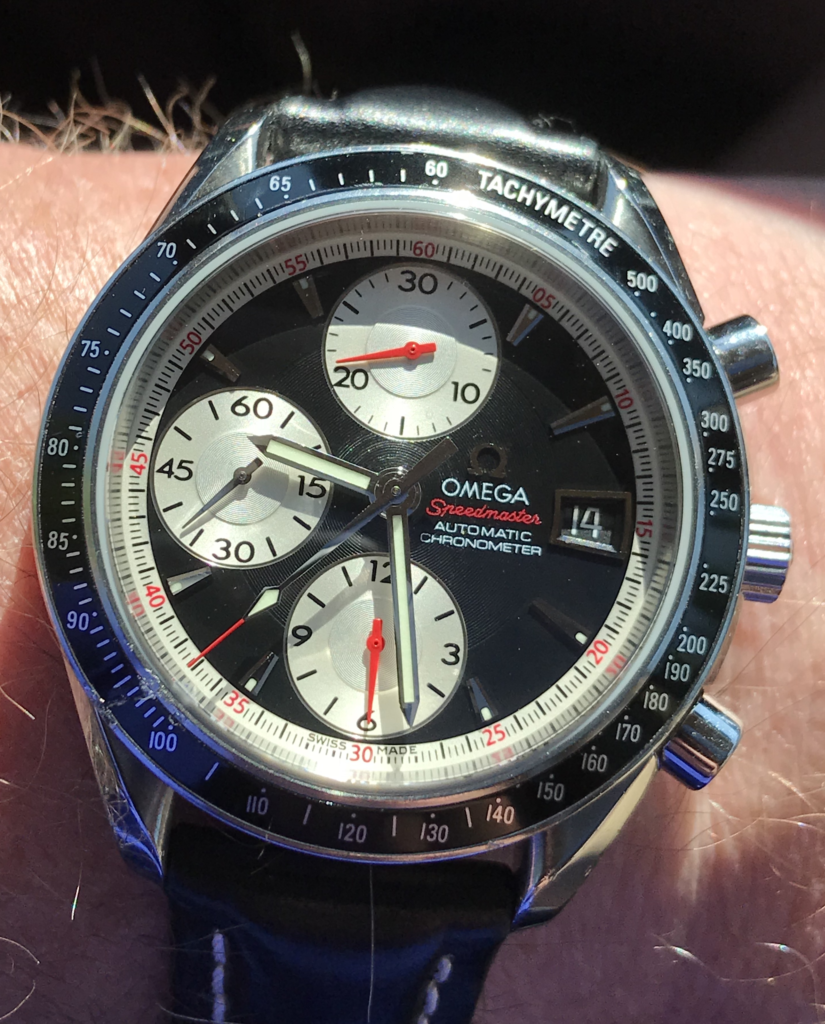This one has been feeling neglected. Haven’t worn it for a year or so. Caliber 341, circa early 1950s. This one is a survivor. Condition when it came to me was such that many would have considered it as a donor, useful only for parts. Gold shell case on it was destroyed. Beyond doing anything with. Dial was equally bad. A quick check in my stash, and I discovered that I had a steel case, and much better dial. With a hand-made case clamp, new mainspring, recondition, replace sad hour hand, non-genuine crown, and voila. Here is the result. An excellent runner. Considering the terrible abuse it had endured, I was delighted that the movement survived in quite good condition.