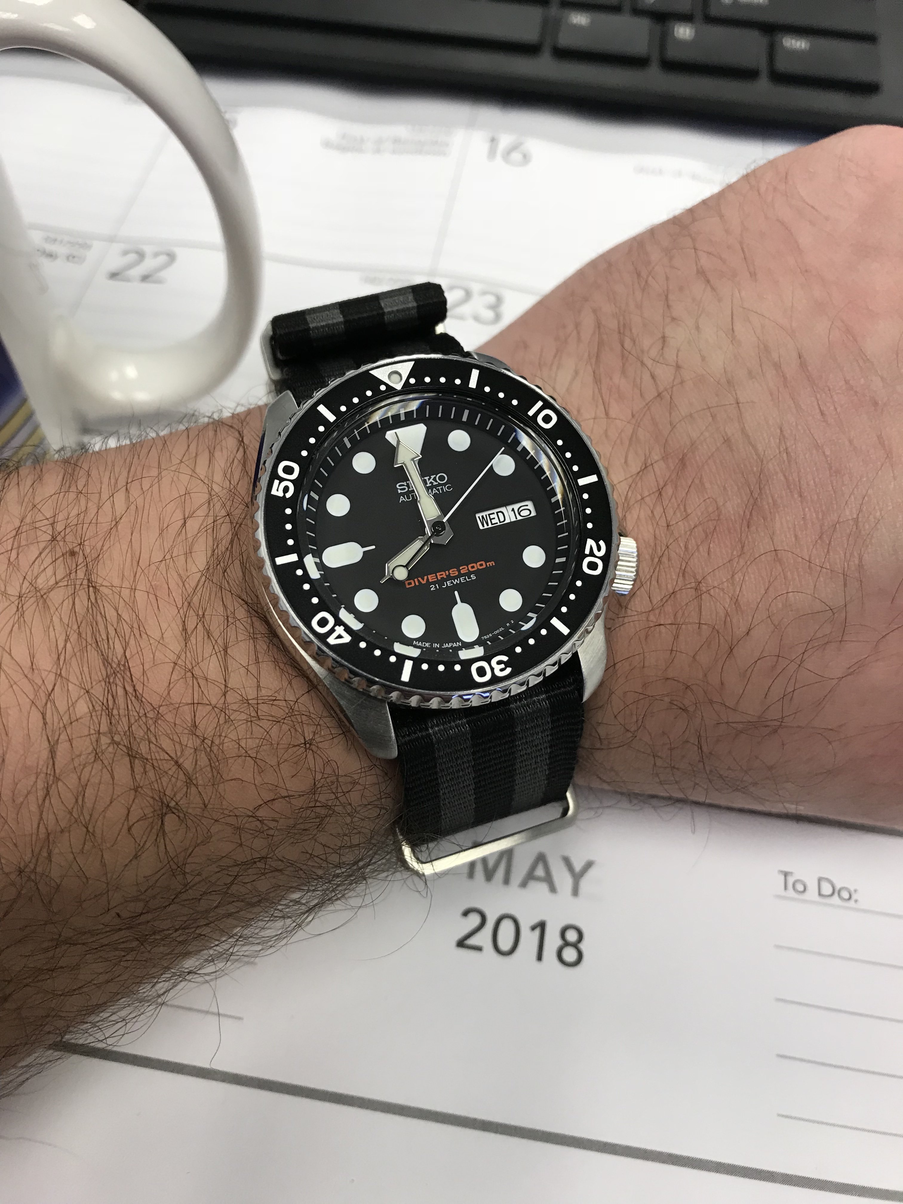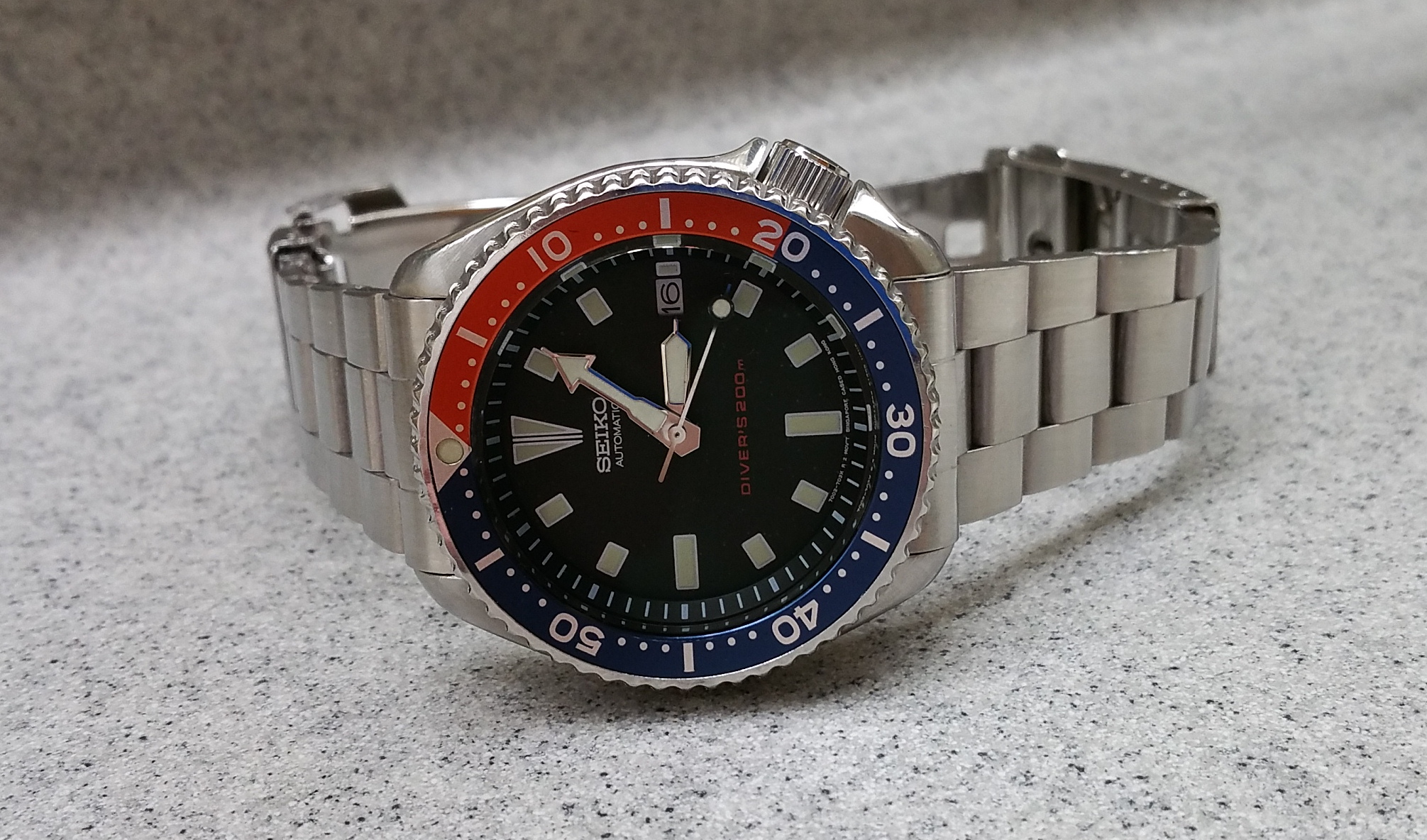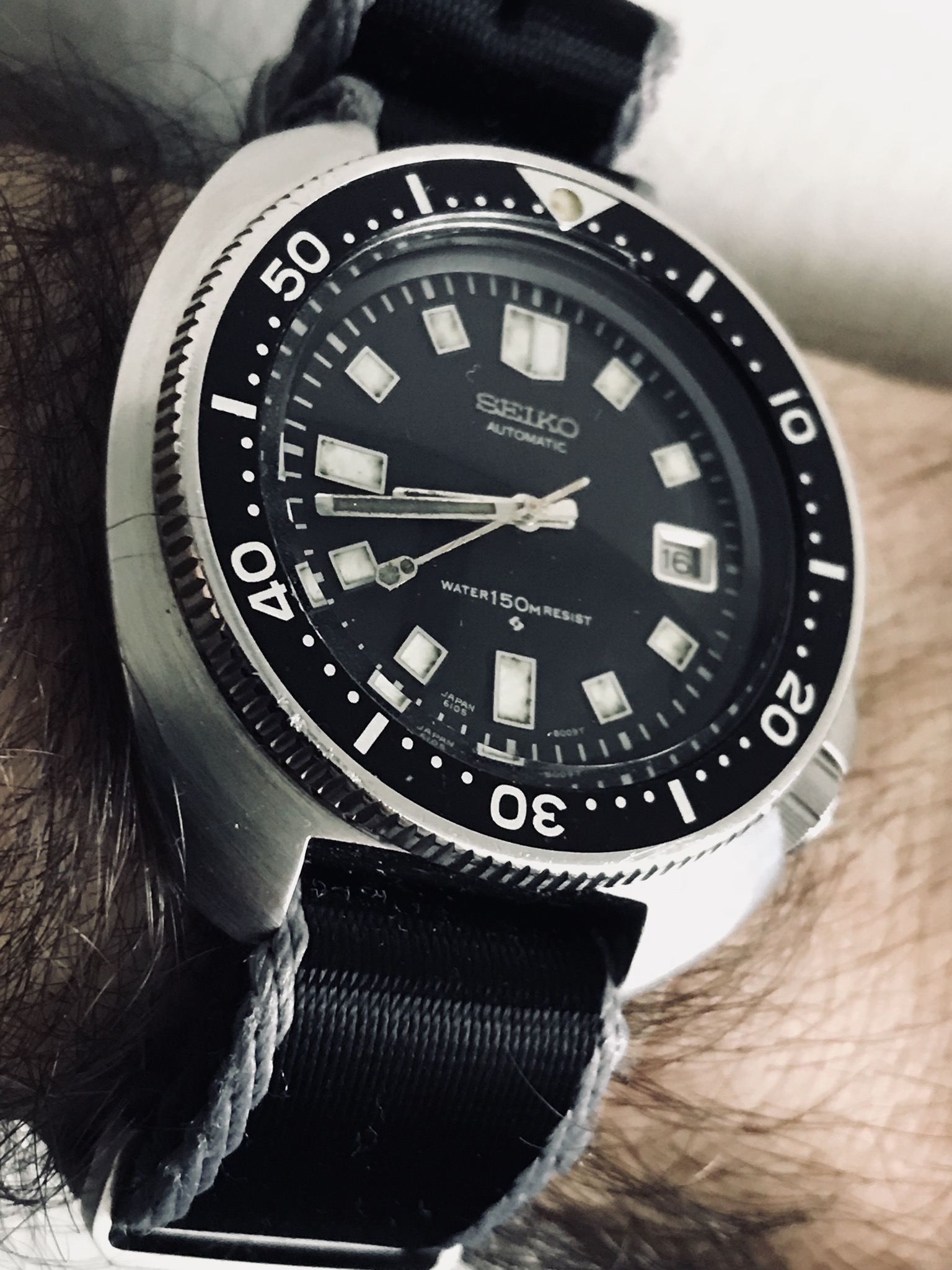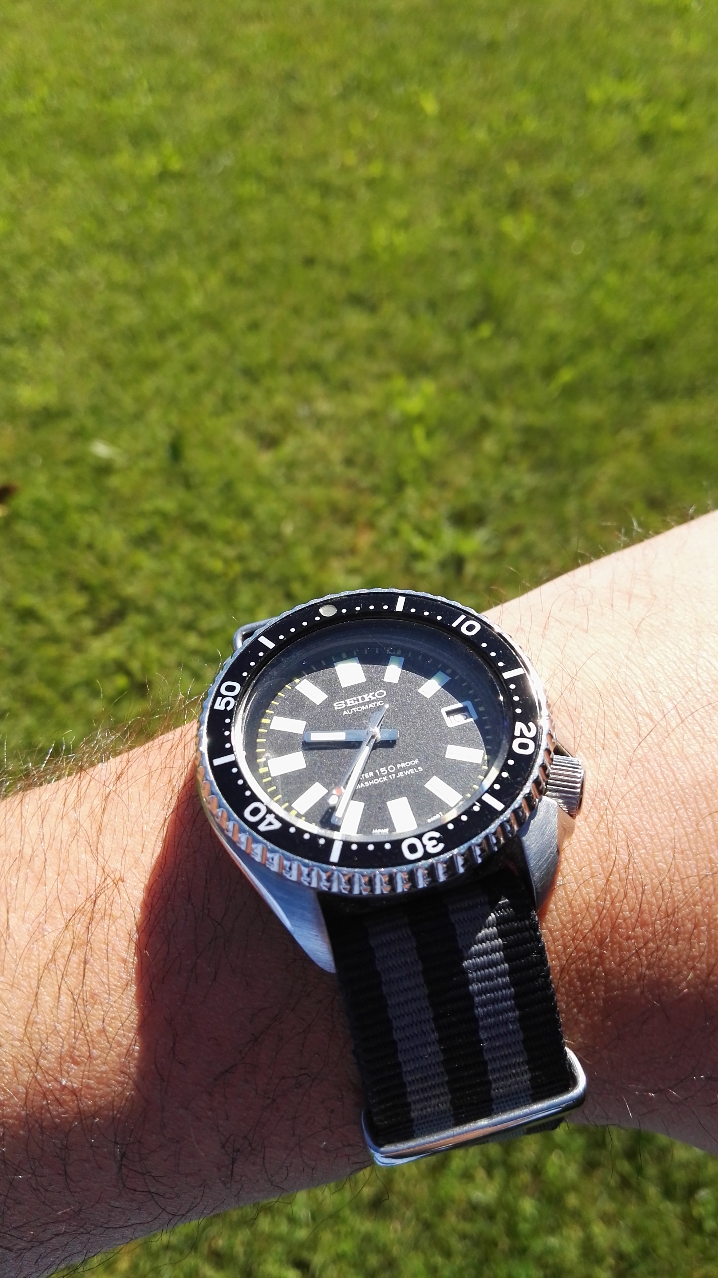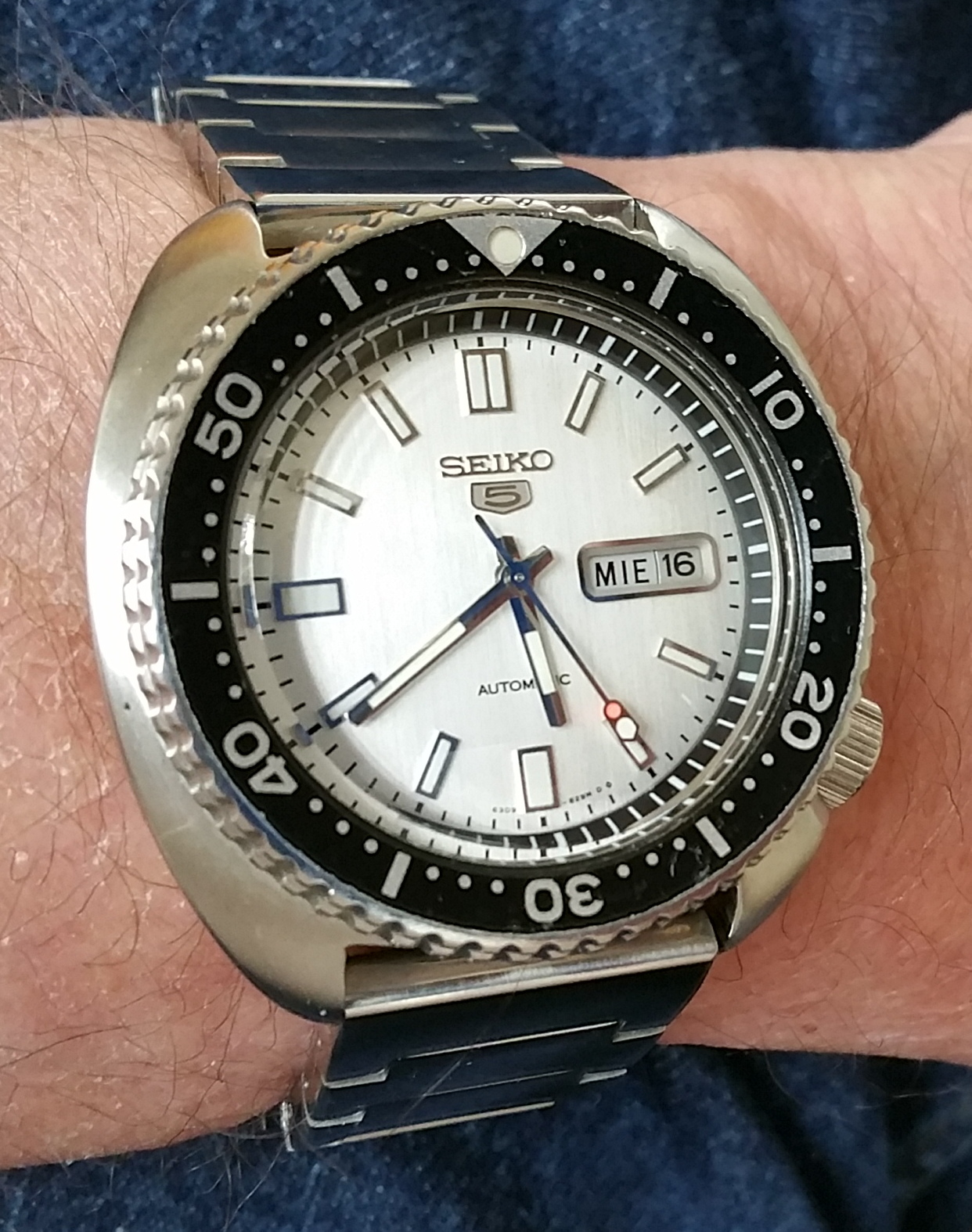 Early morning change since this franken 6309 gets no wrist time. I'll let it see some day light today. It started out as a 6309 I had a lot of Seiko spare parts and this was the end result. Dial from a Seiko 5 6309, sweep hand 6105 and 6105 crystal on a bracelet. These older Seiko divers are inexpensive enough to play around with and wind up with your own version of a 6309