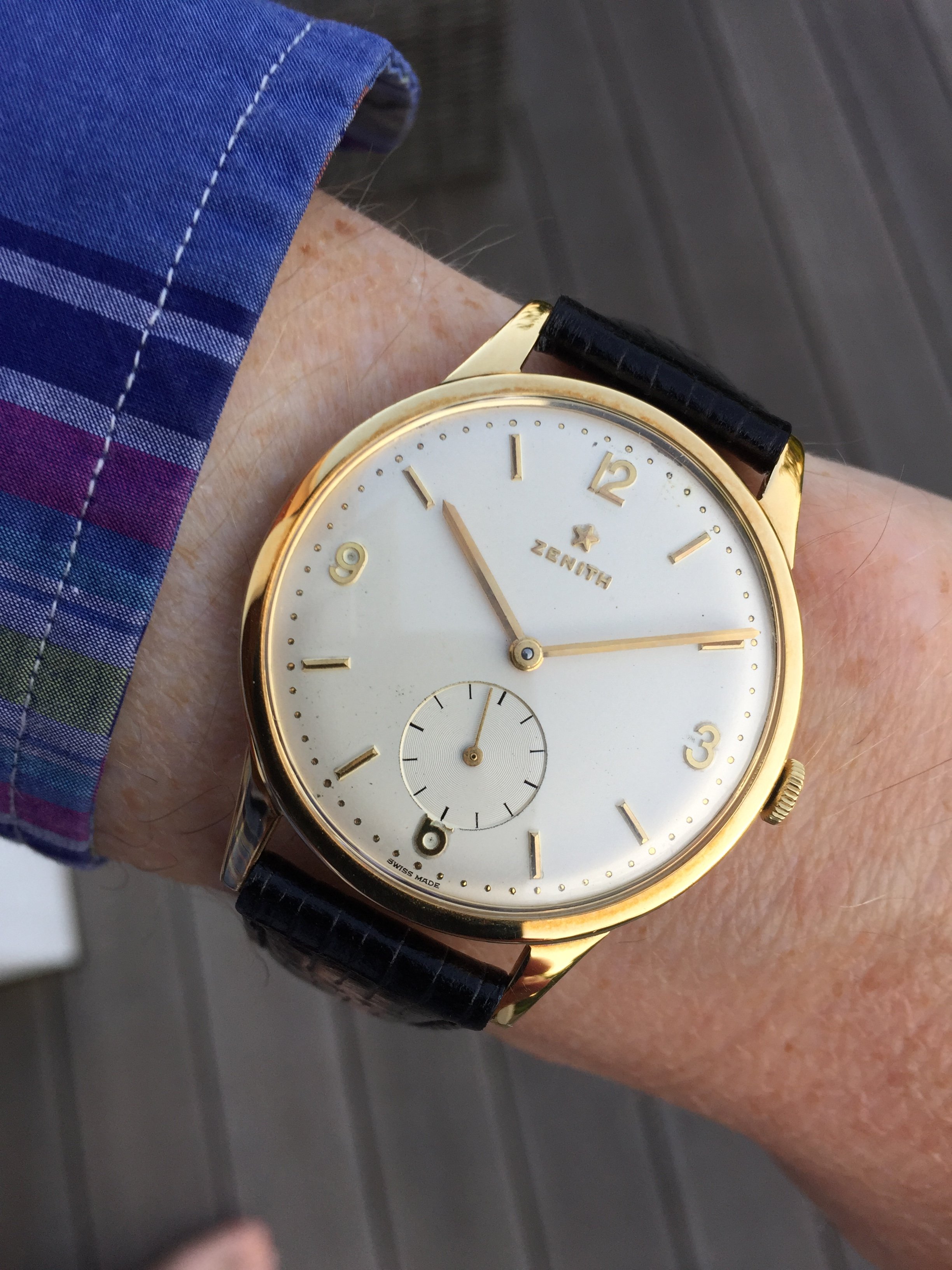 Posts 284 Likes 6,378 viwa64 路May 17, 2018 Thursday on the next golden Zenith, this time no chronograph but an oversized dress watch.
