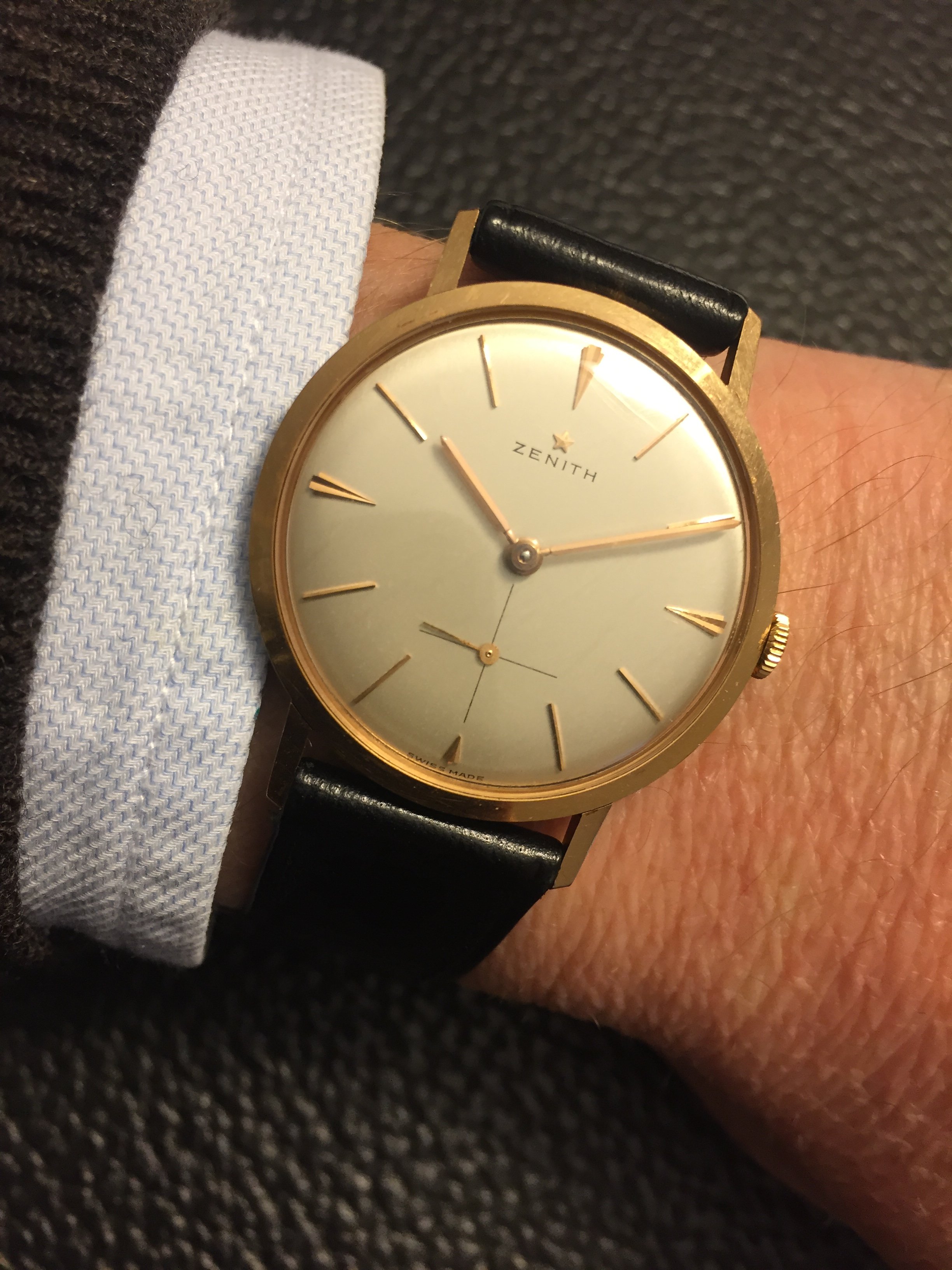Posts 284 Likes 6,378 viwa64 路May 18, 2018 Last golden Zenith on this Friday. It鈥榮 a very thin and comfortable dress watch in 18k. Have a nice weekend.