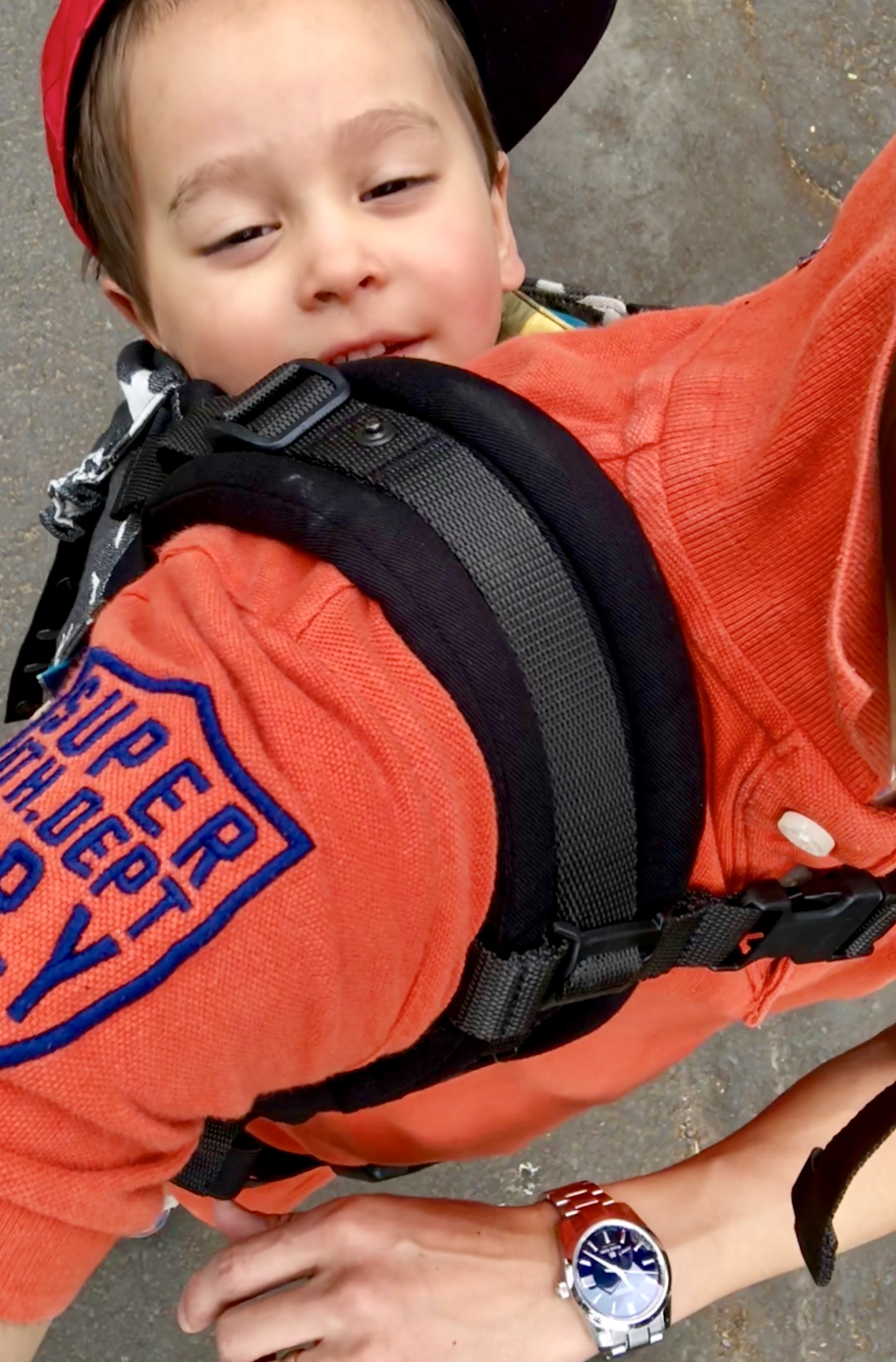 Posts 586 Likes 8,654 daddykc ·May 18, 2018 Hiking with my blue Grand Seiko on the wrist & my mini-me on my back