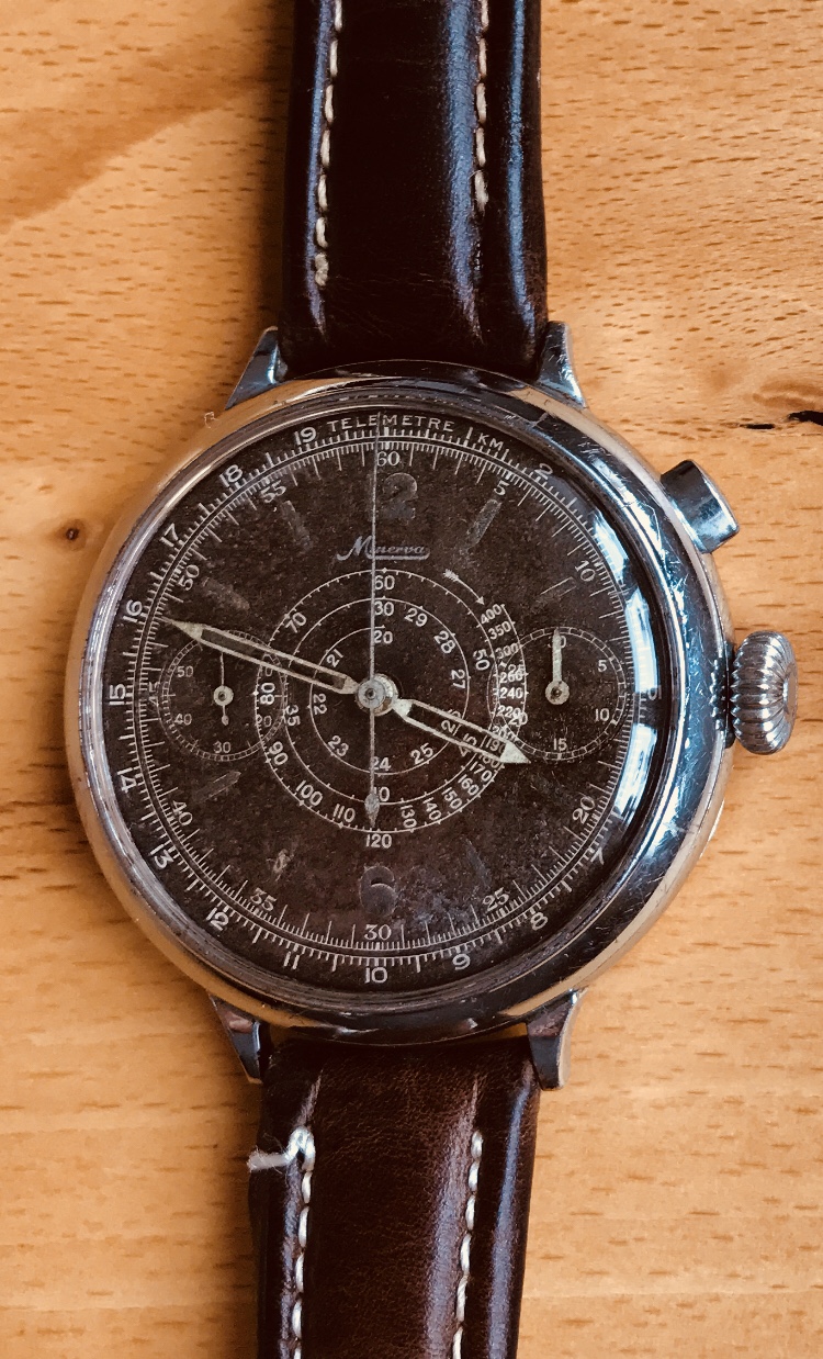 Posts 1,441 Likes 11,971 chronoboy64 ·May 23, 2018 Today with my oldest and one of my largest chrono 46mm Minerva from ca. 1935