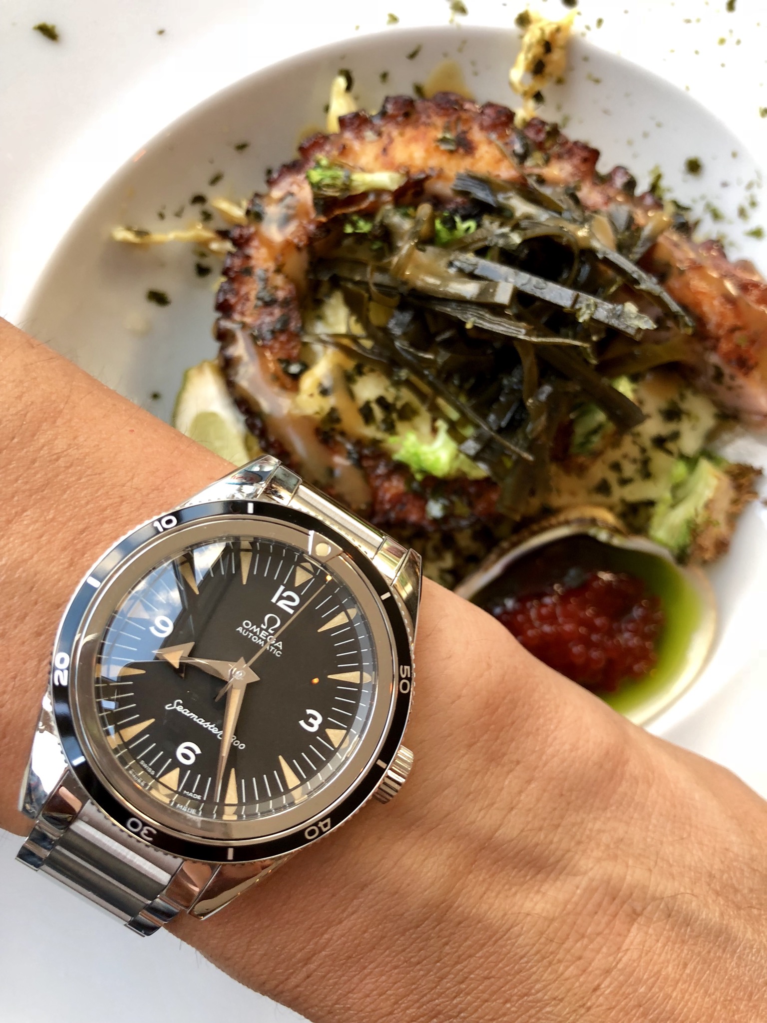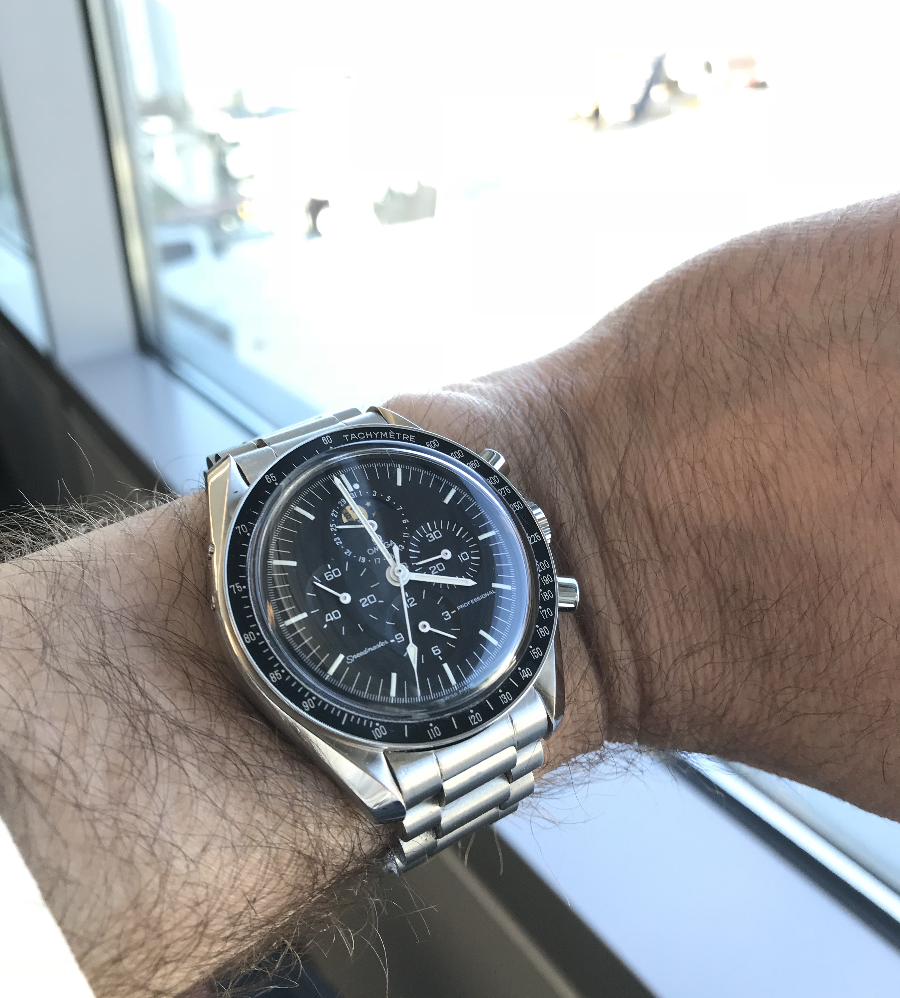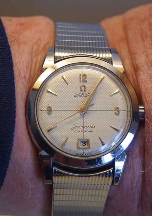 Four days away in the mountains where there was no internet or cell phone service, and I come back to 300 postings on the WRUW forum. Still wearing my modern Hamilton Kahki manual winder. But I know which one I will switch to, tomorrow. My caliber 355 Omega Seamaster date at 6:00 has been reposing in my vault for too long. The date is on the 26th, so no laborious re-setting will be necessary. Older picture of the Omega.