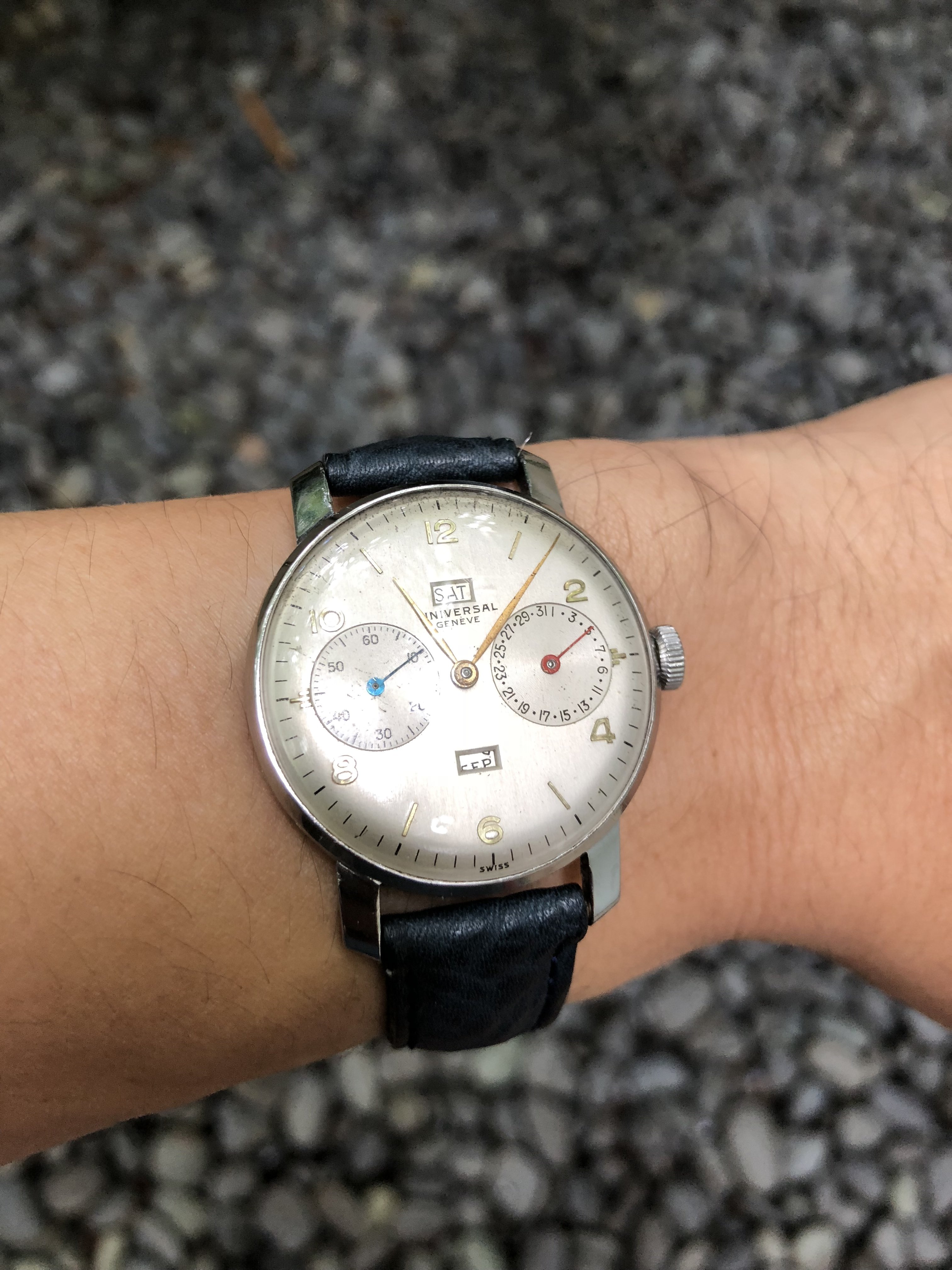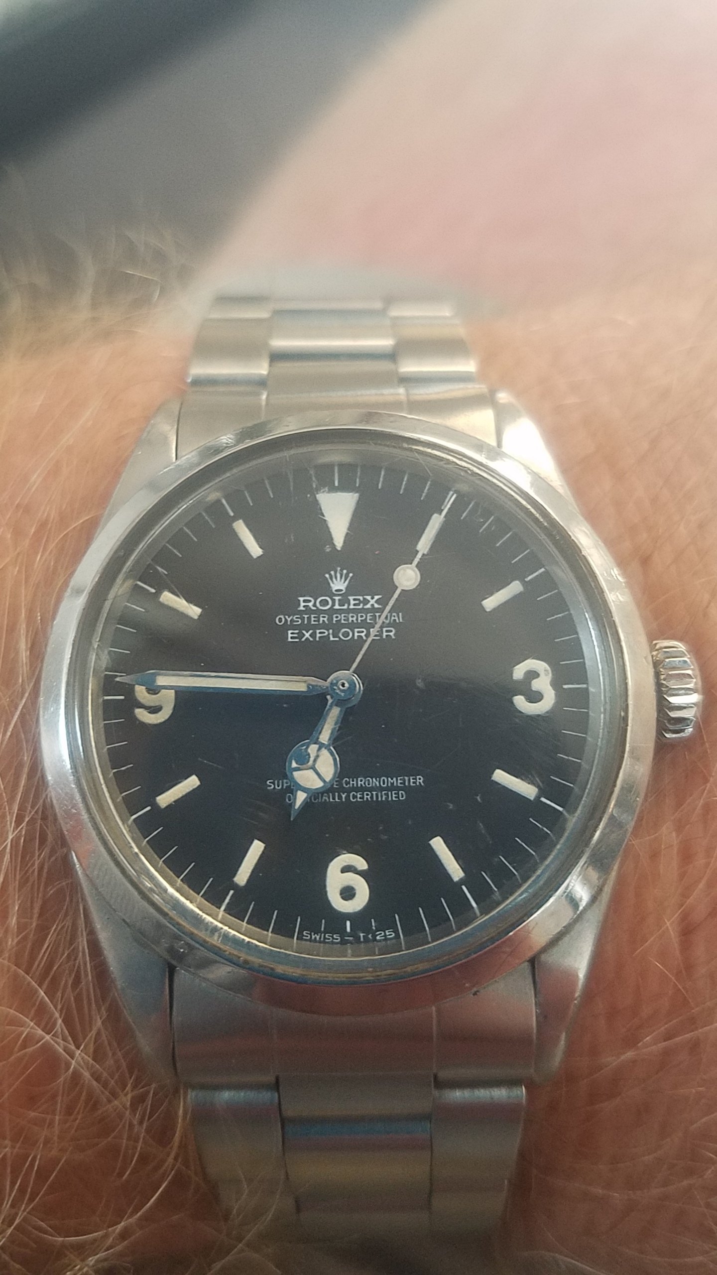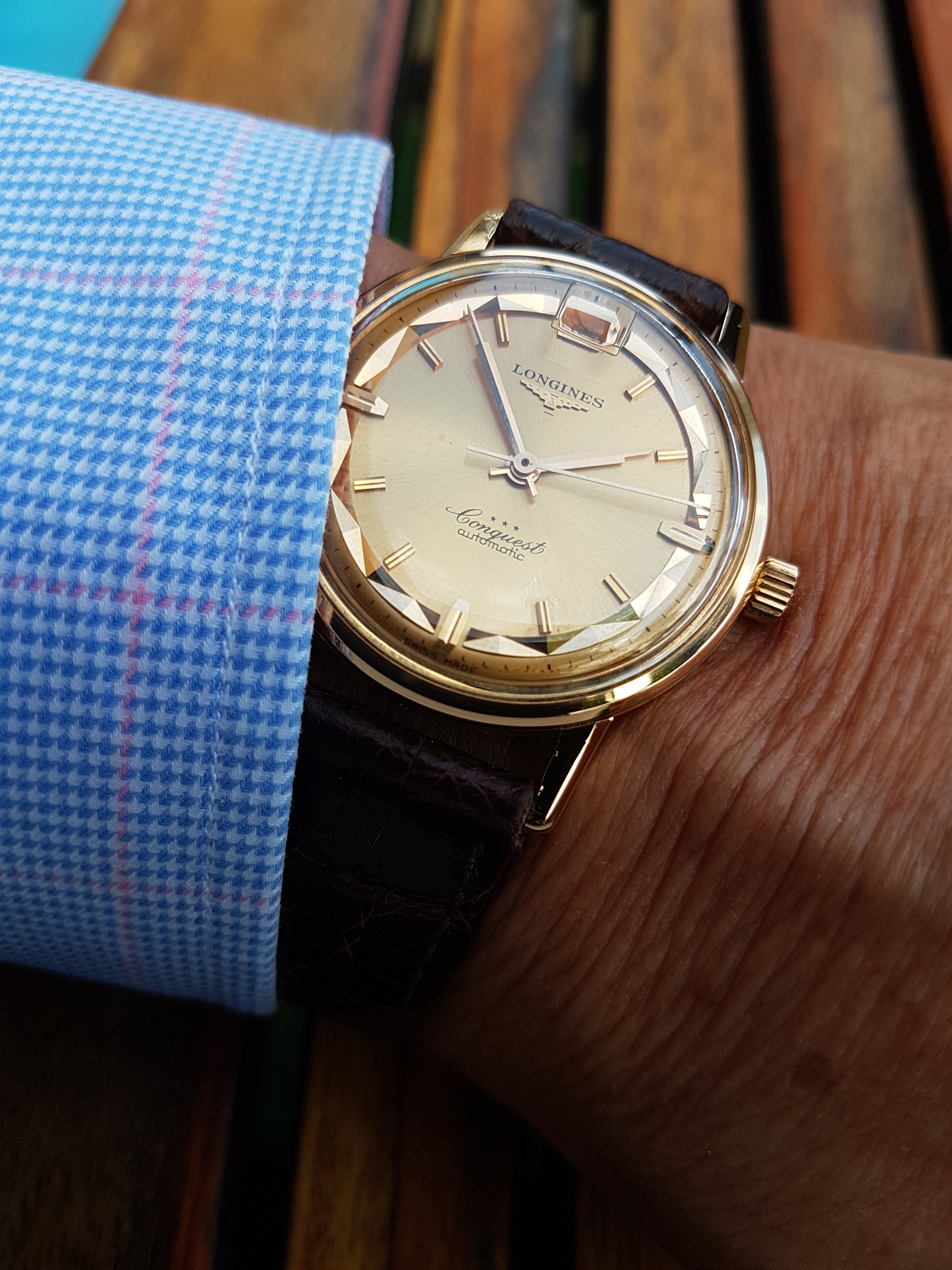 Four days away in the mountains where there was no internet or cell phone service, and I come back to 300 postings on the WRUW forum. Still wearing my modern Hamilton Kahki manual winder. But I know which one I will switch to, tomorrow. My caliber 355 Omega Seamaster date at 6:00 has been reposing in my vault for too long. The date is on the 26th, so no laborious re-setting will be necessary. Older picture of the Omega.