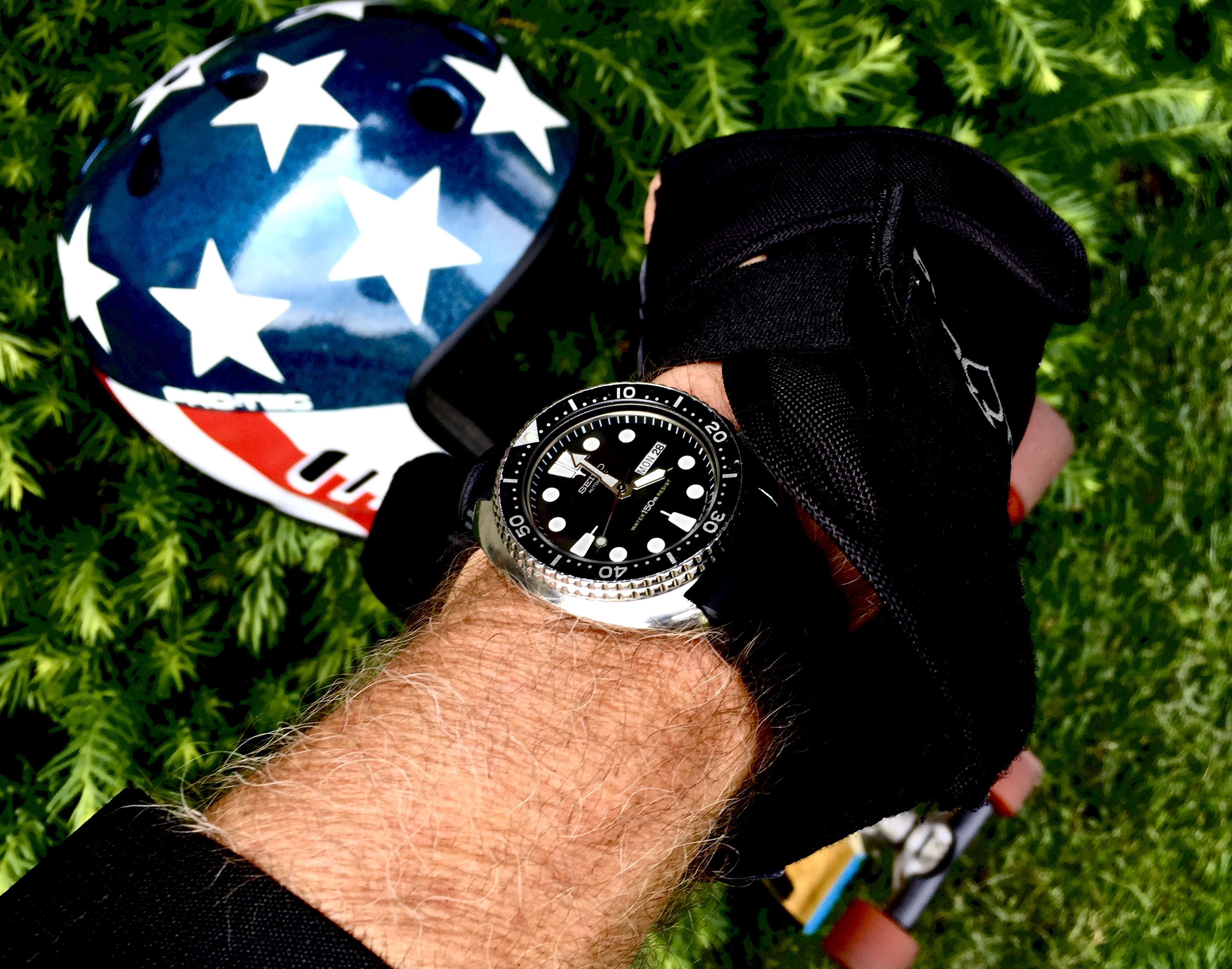 Wishing all a safe Memorial Day. Honoring and remembering our fallen brothers and sisters today. Wearing my beloved Seiko 6309-7049 which I purchased new in 1987 during Navy primary pilot training...also wearing my new Pro-Tec “Captain America” skateboarding helmet...👍 👍 👍...