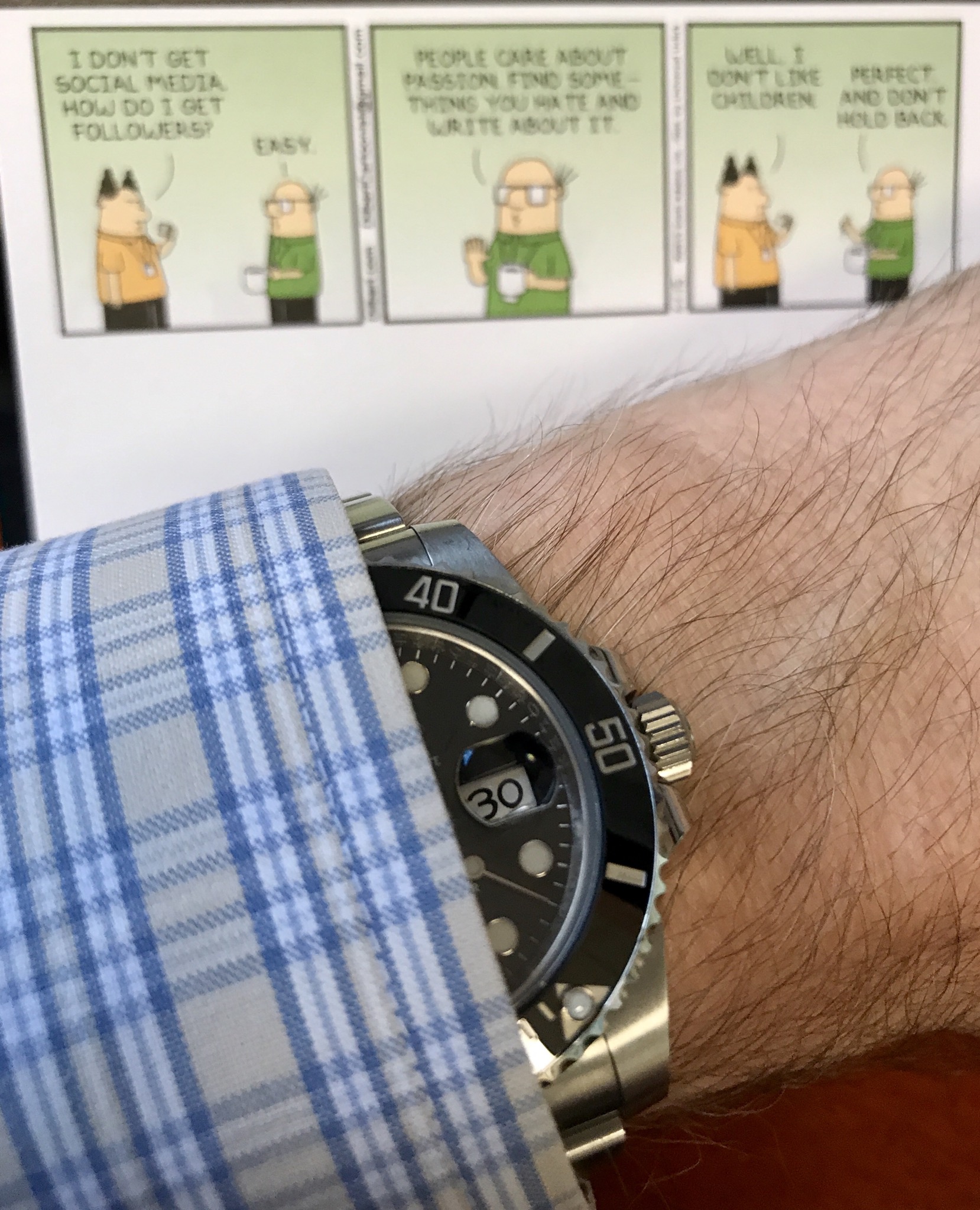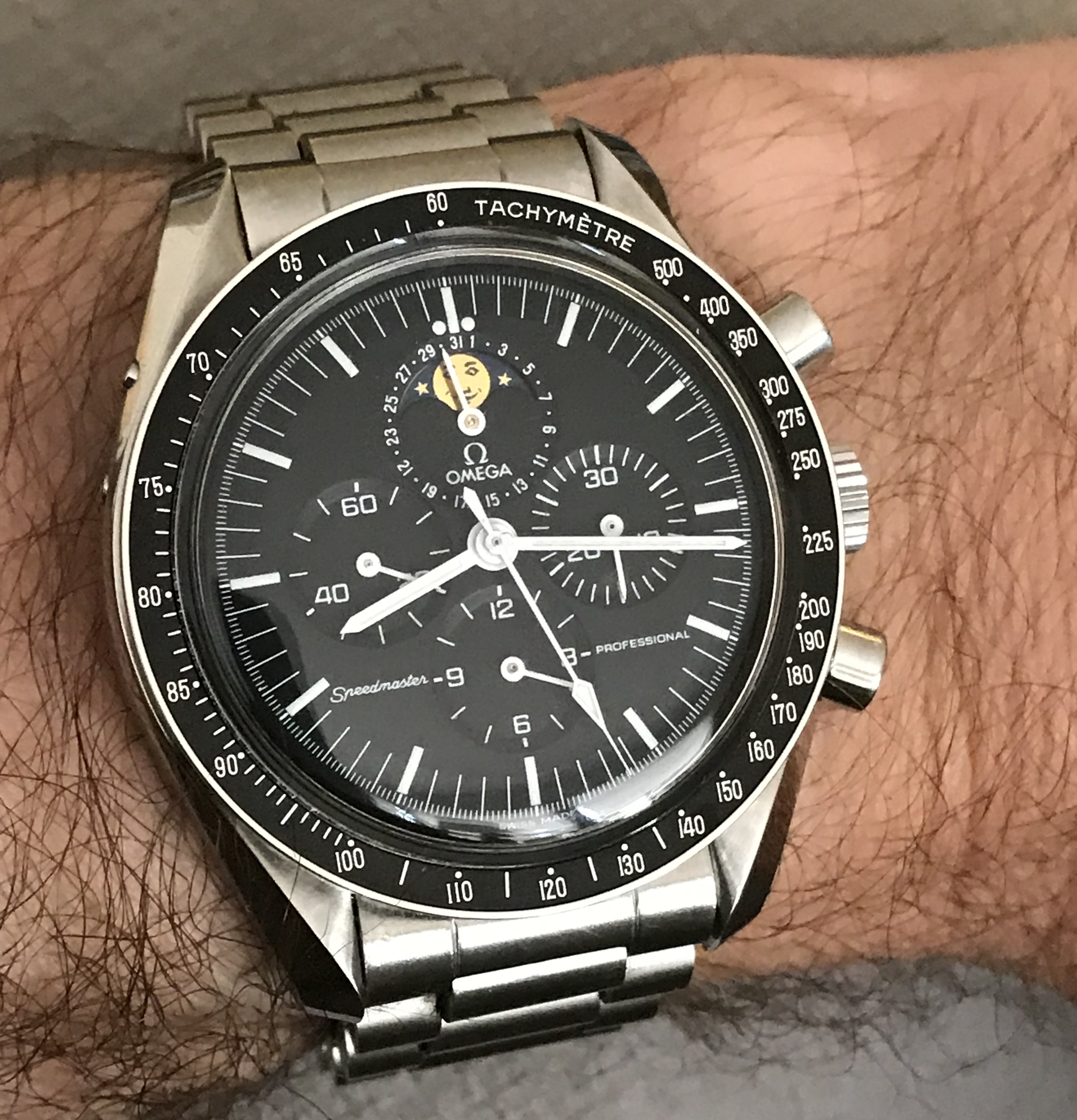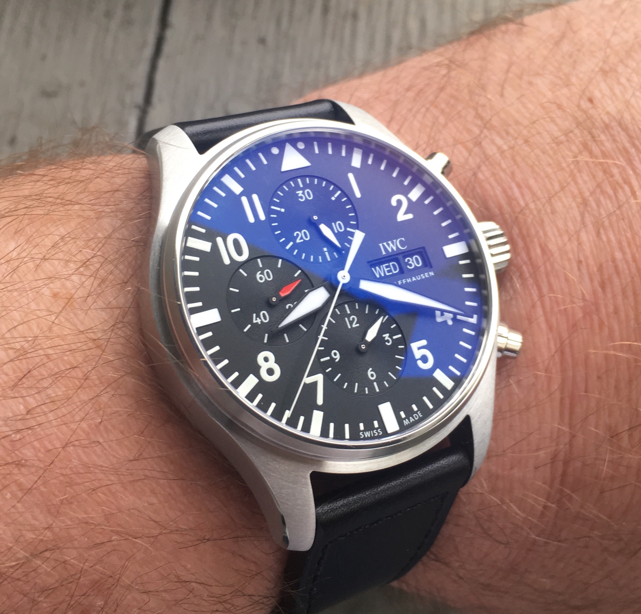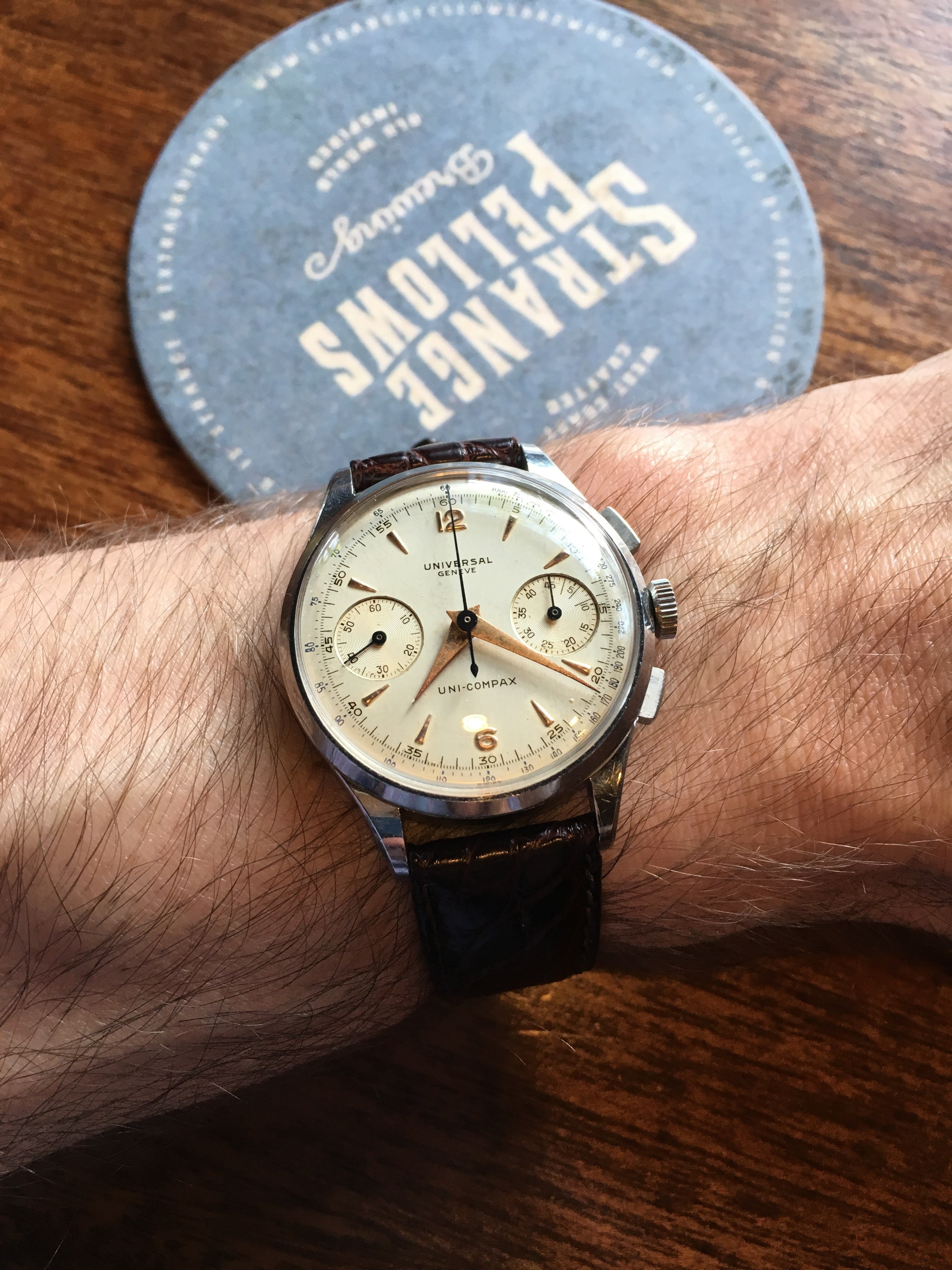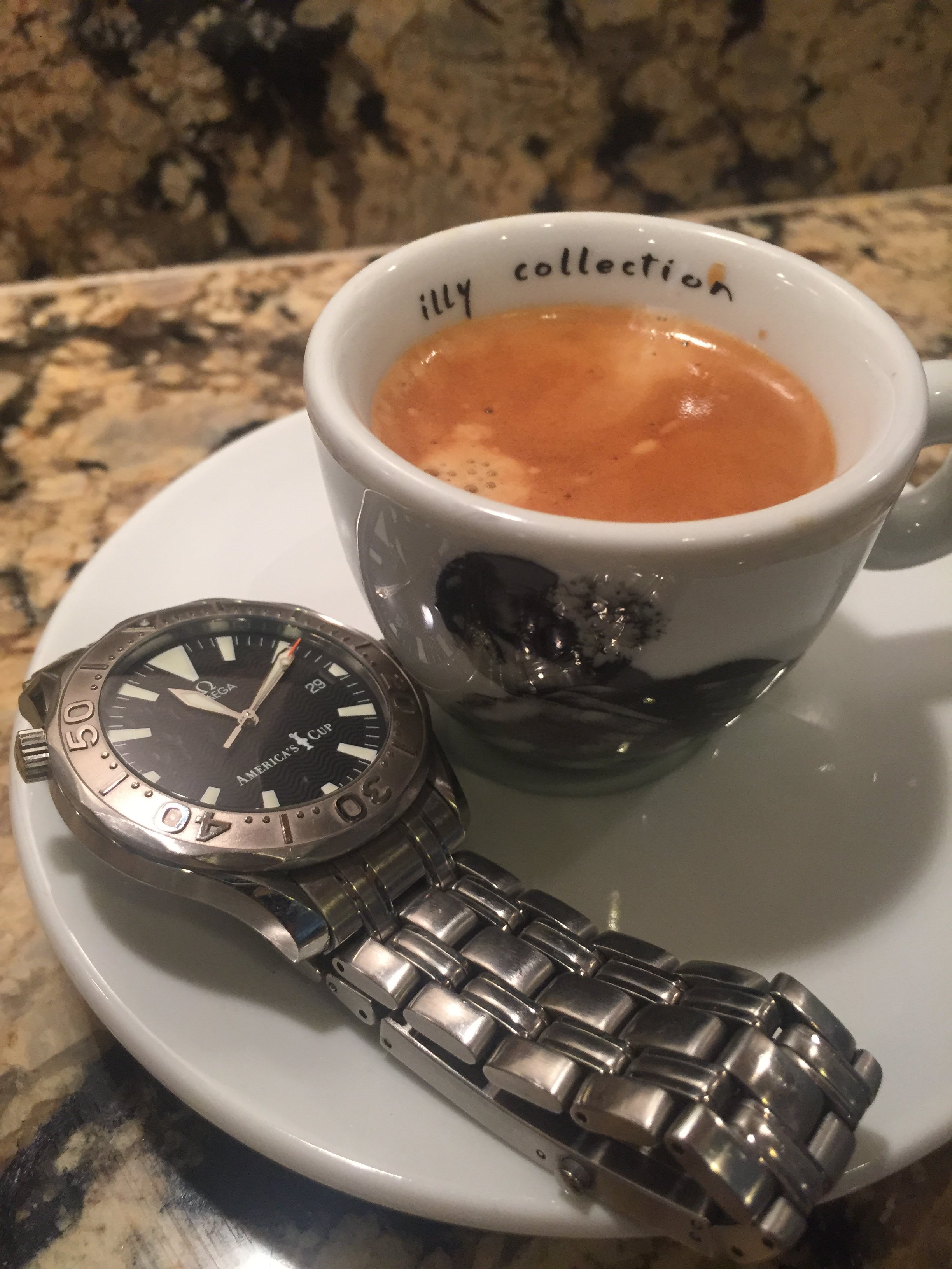 Unusually warm weather in Northern Europe today drove me into a watch shop just because of their air conditioning.....seemed right to buy a strap to my Omega. Simple clean and nice size