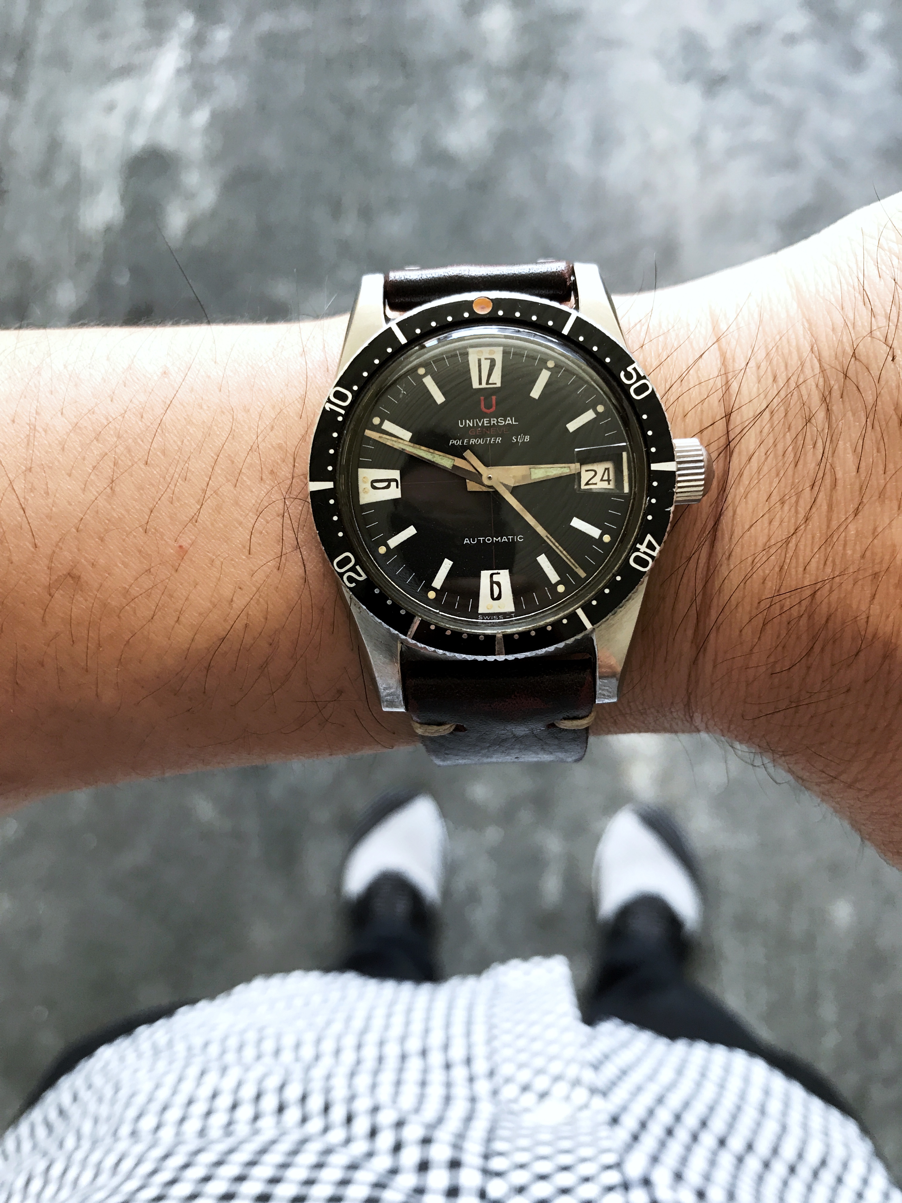 Finally, a proper width strap for my 21mm lugs! It began as a NATO but I surgically removed the underside strap part, turning it into a simple nylon strap.