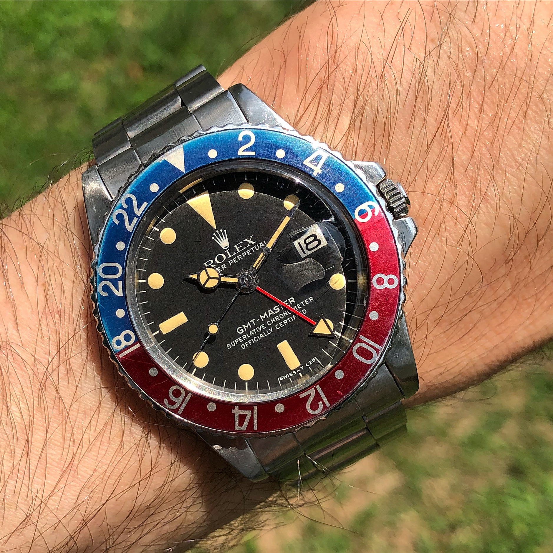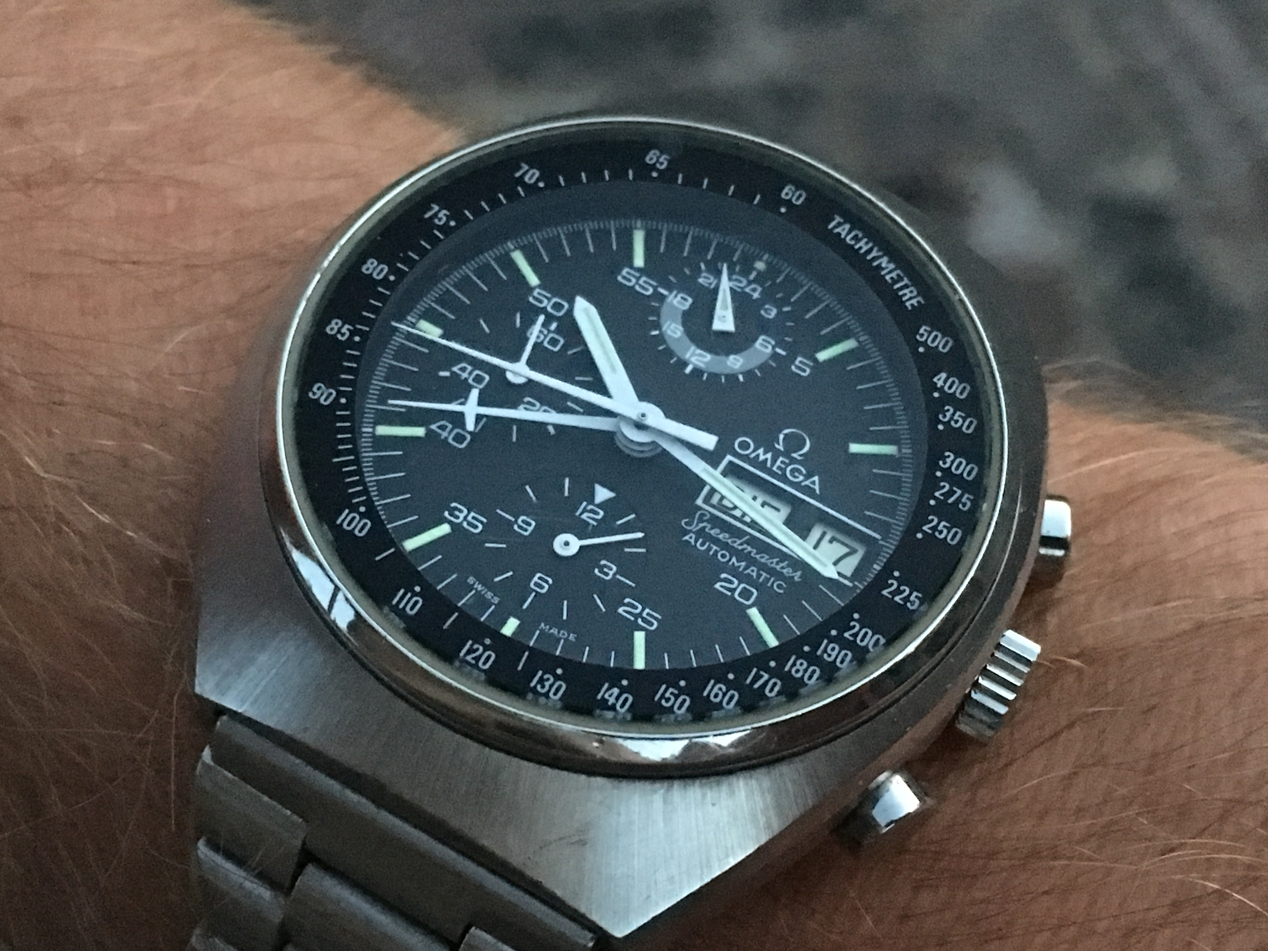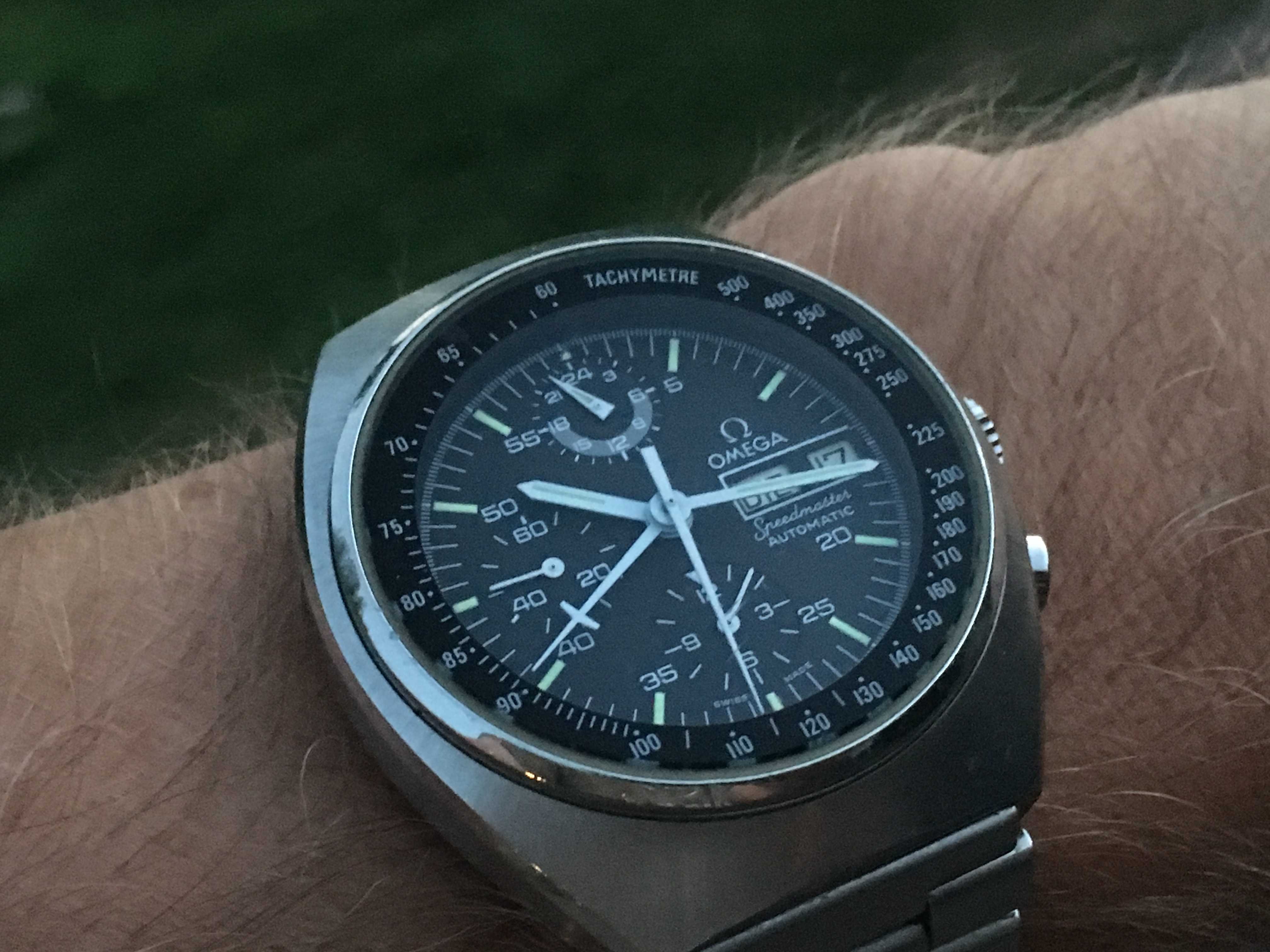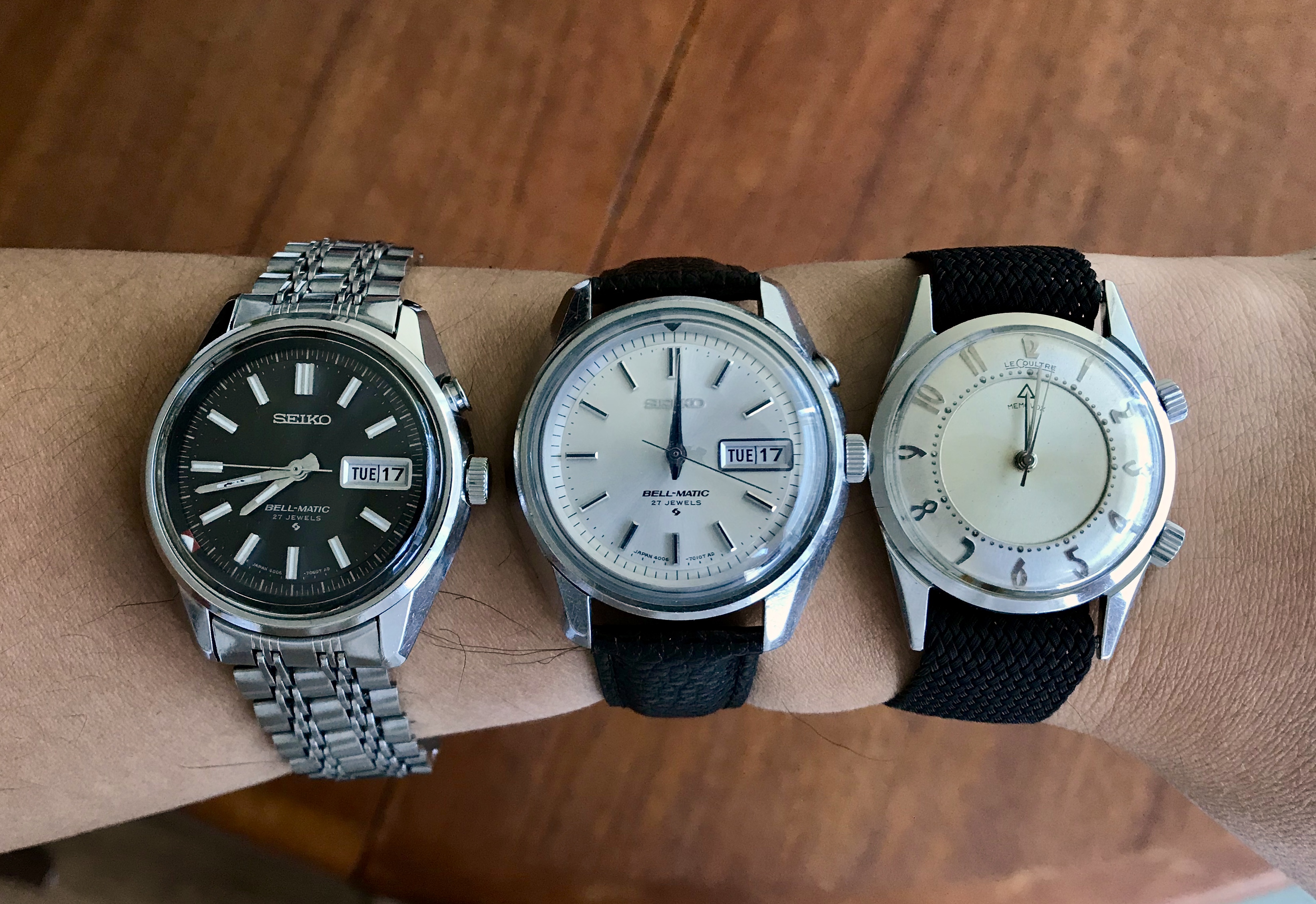 New arrival Memovox joins the alarm gang. Thinner than the Bellmatics, but is much louder and looks pretty robust to boot! Will be off to get serviced soon, and in the meantime I need to find a nice strap for it. Loving the case and dial so far: