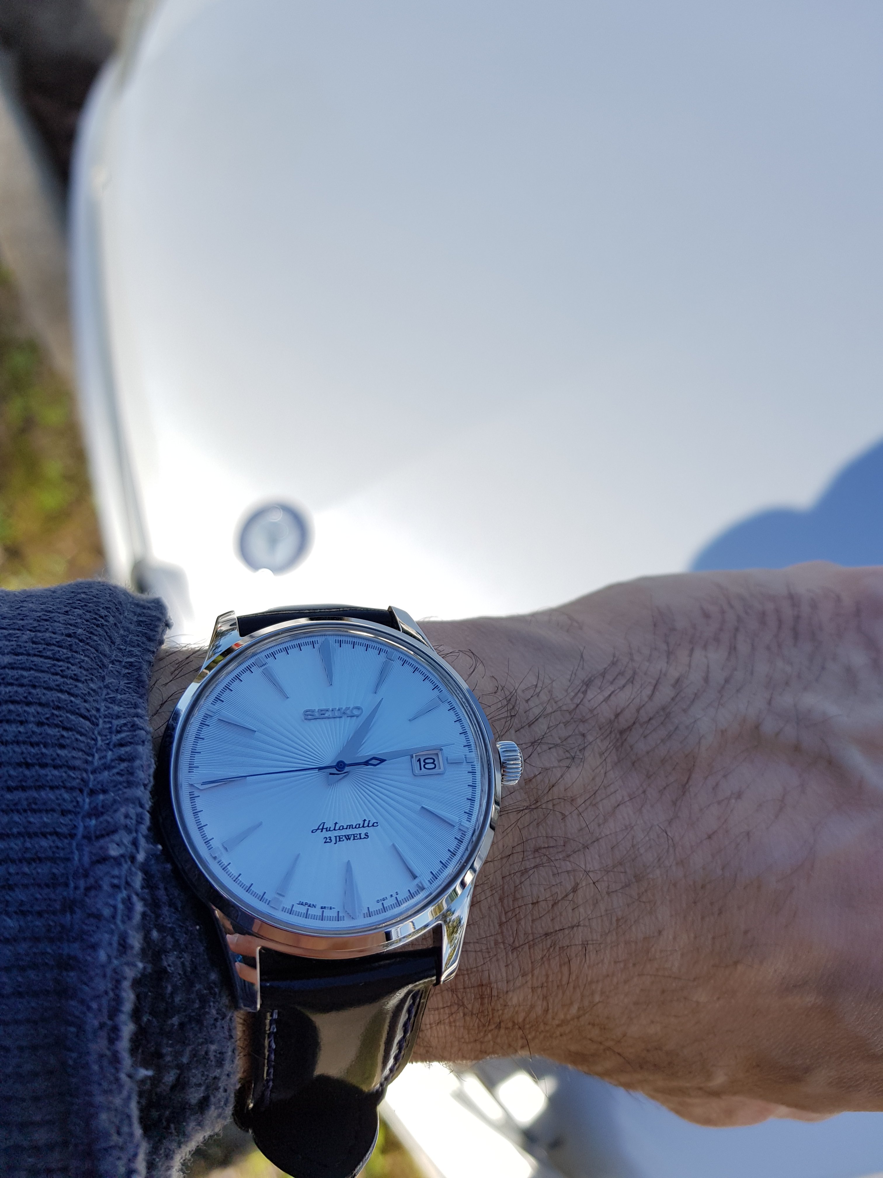 Posts 266 Likes 4,532 Slideit ·Jul 17, 2018 Another Seiko arrived today. Cocktail Time. Almost matches my car.