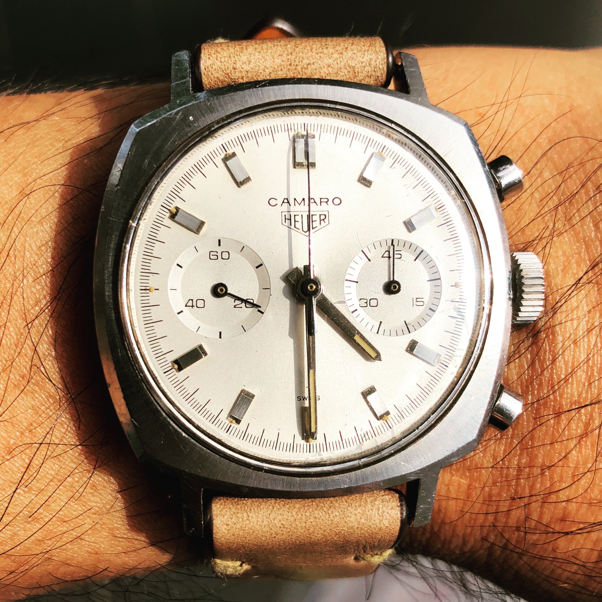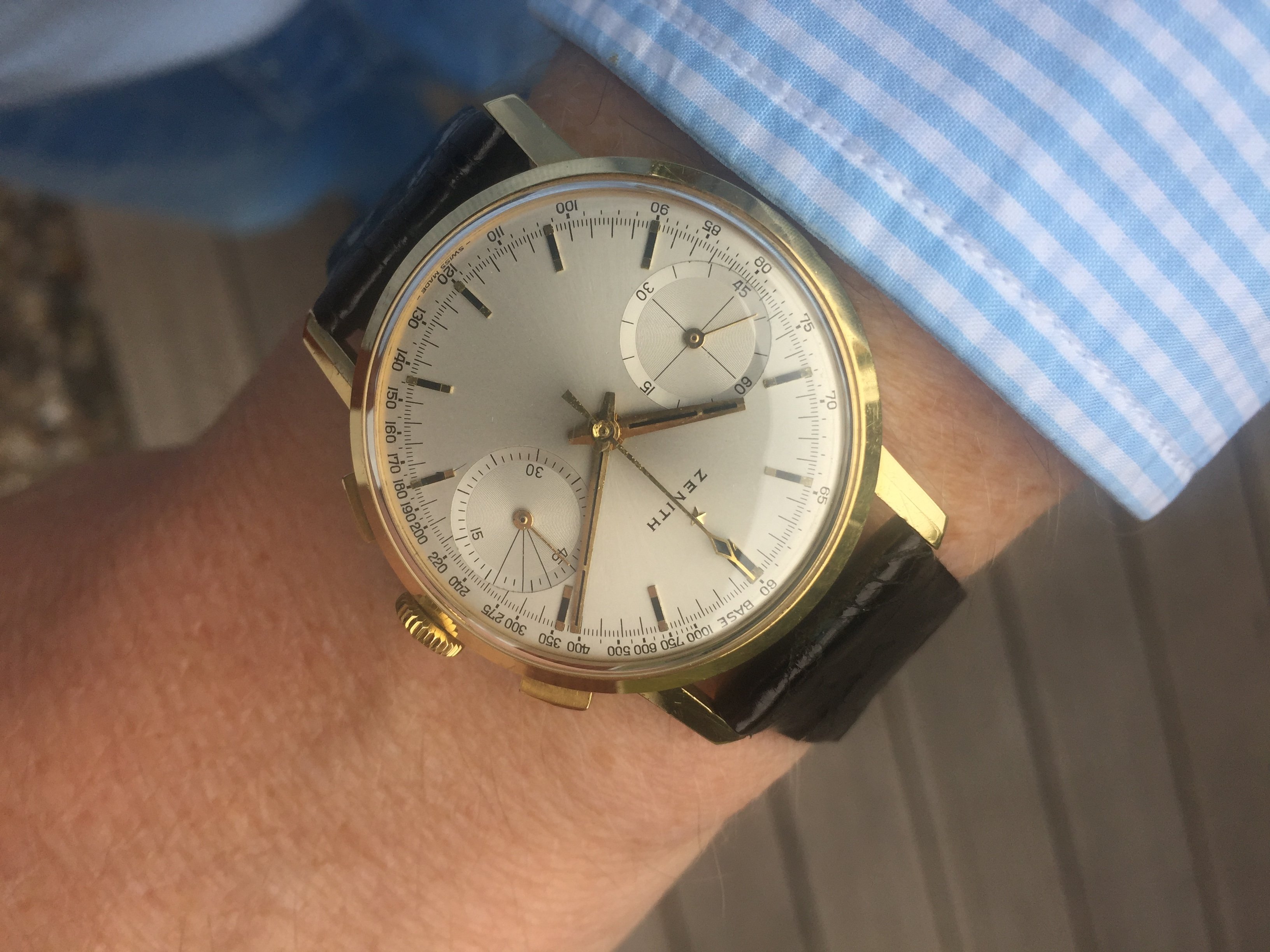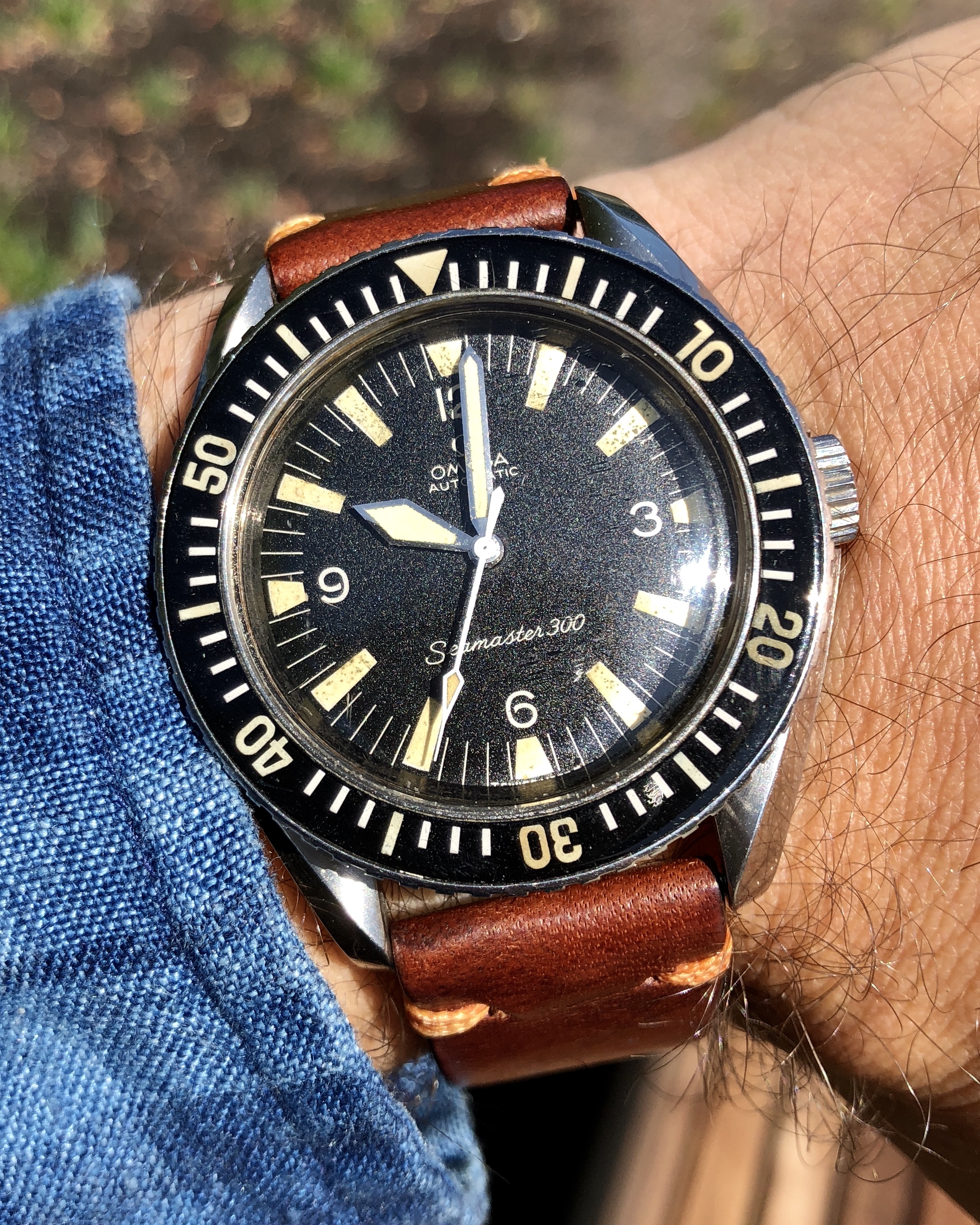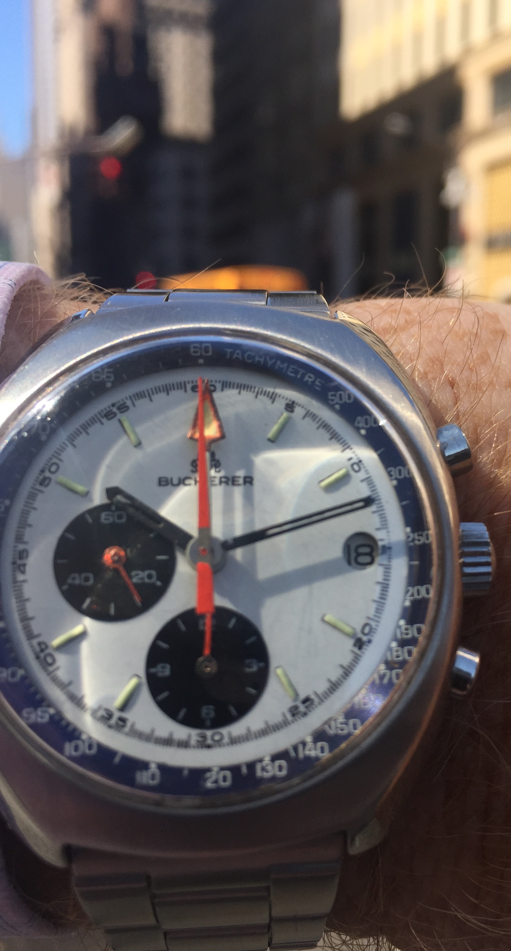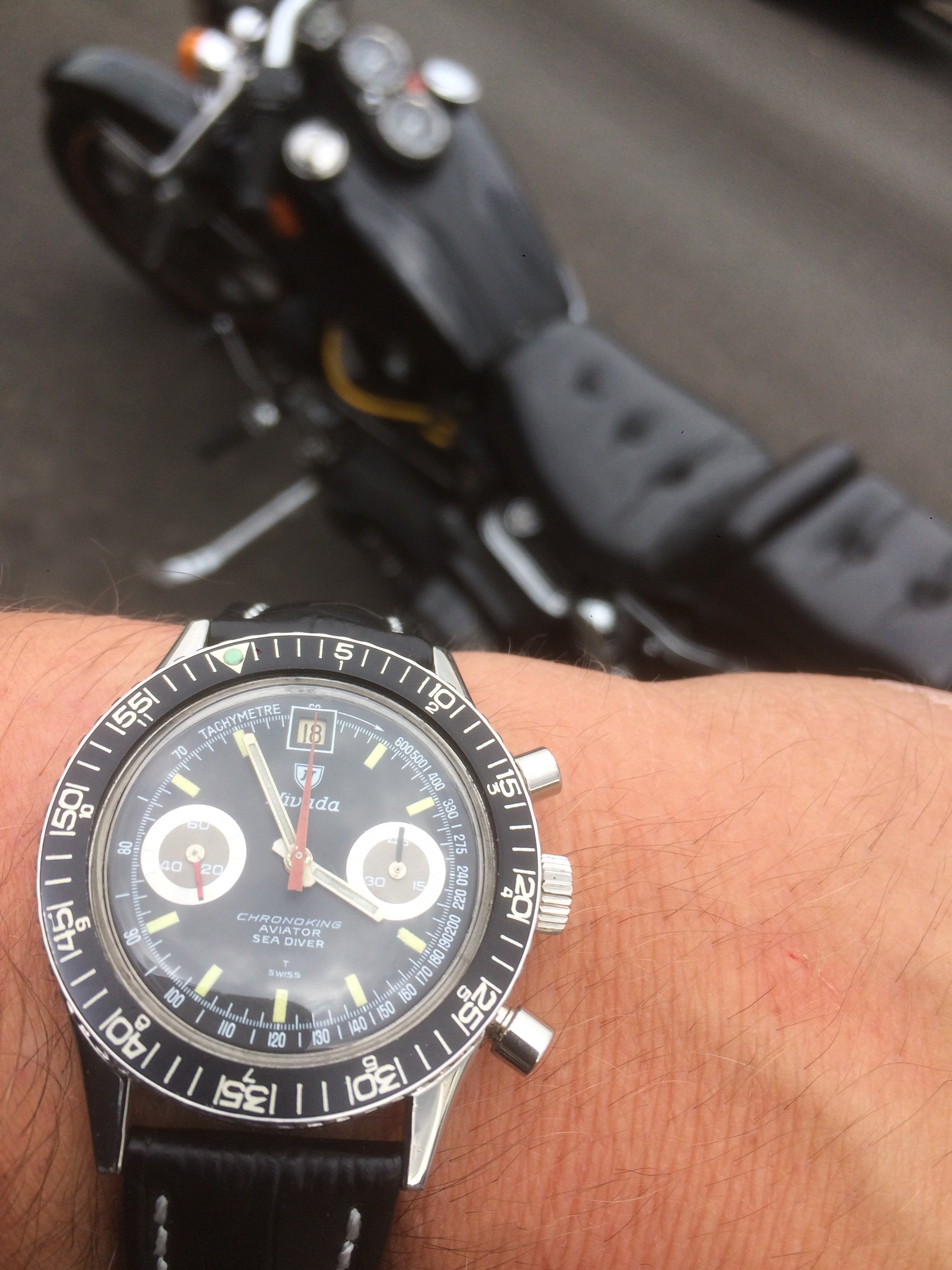 A surprisingly large and heavy watch. Sorta looks like a 176.007 C-case, but much bigger in real life. Here thrown in with a Moonwatch for reference (42, 43, and 38.5mm case widths):
