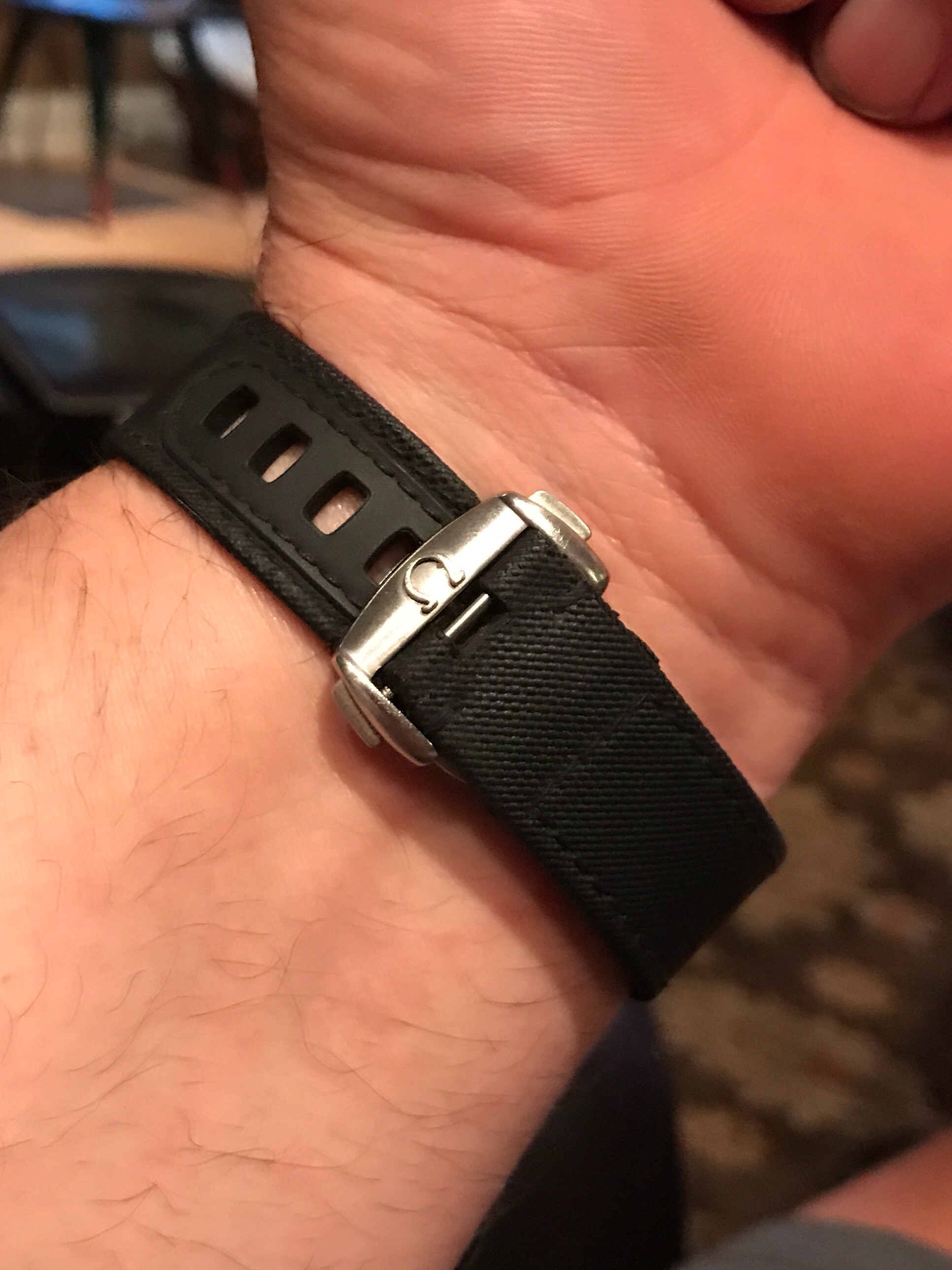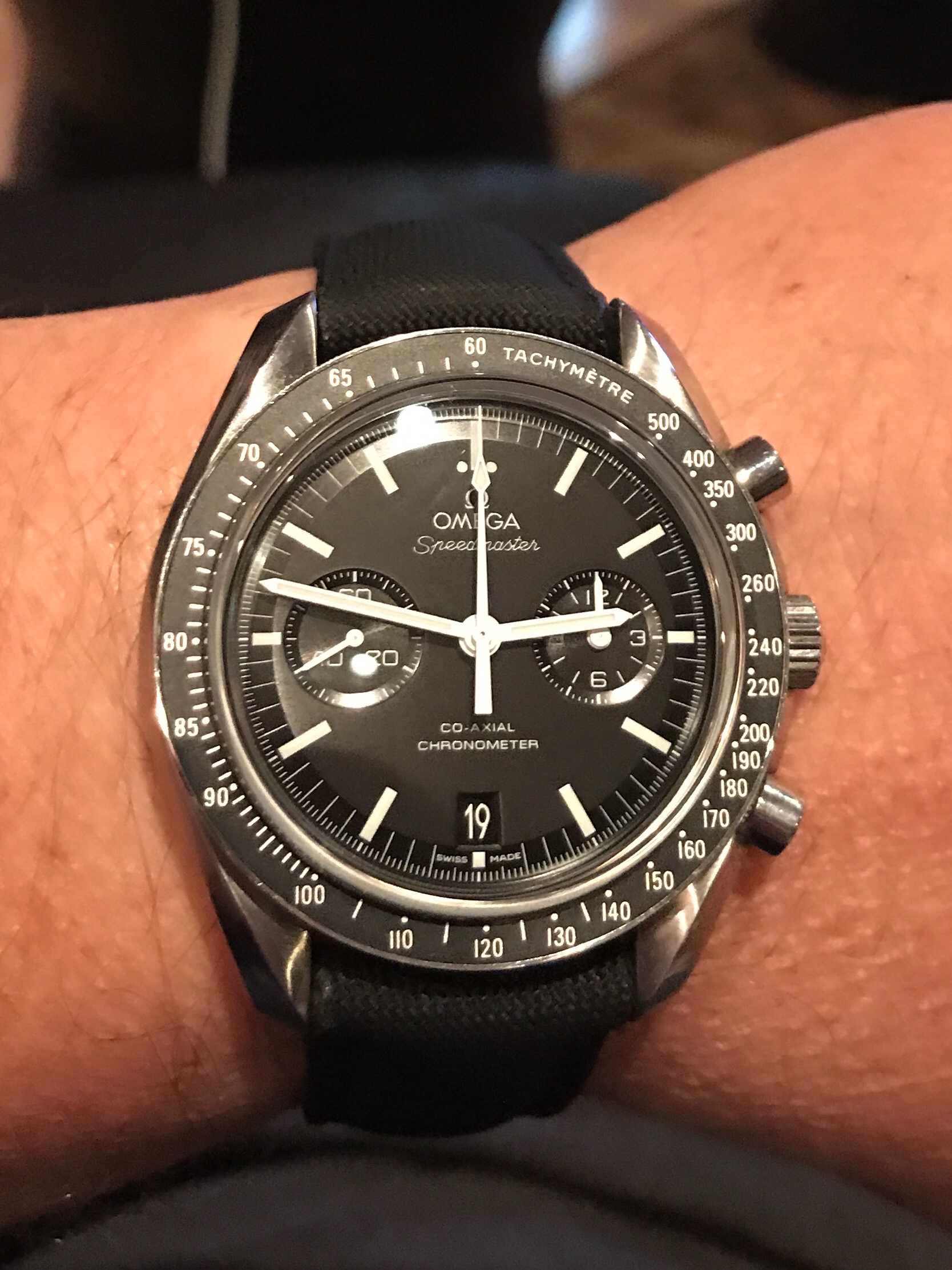 Back to the DSotM nylon two piece strap, with deployment clasp.I do love black straps on my Speedy.